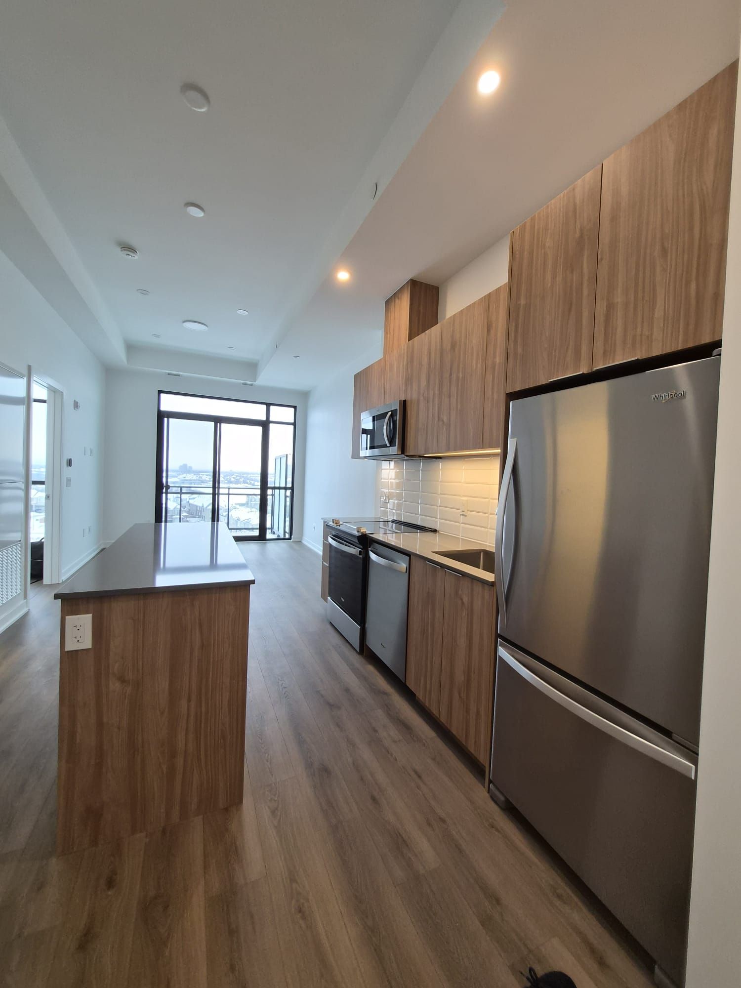 Your new home awaits you at the mile & creek phase 2 in the up and coming serene neighbourhood of milton. Open concept modern living designed and built by mattamy for people who love the comfort of a practical layout offering plenty of natural sunlight and stunning views of the protected green surrounding area. Situated at the top floor, this upgraded unit offers all the desirable features of an ideal home/work environment and is free of any noise related issues from up above. The bright kitchen, with upgraded backsplash, under-the-counter lights and pot lights boasts practicality and comfort with the breakfast island that can be used for a quick online meeting. Quartz countertops, aided with shining sanitaryware and all stainless-steel brand-new appliances enhance the appeal and provide a nice retreat after a long day. The living room provides access to a decent sized balcony that offers fresh air when needed. The den, with upgraded barn door, offers an option to be used as a home office. The upgraded bathroom offers carefully-designed glass doors and standing shower. You will enjoy the feel of a nice up and coming community with latest connectivity, round-the-clock concierge, visitor parking, shopping, schools, trails, highways, public transportation, and much more.