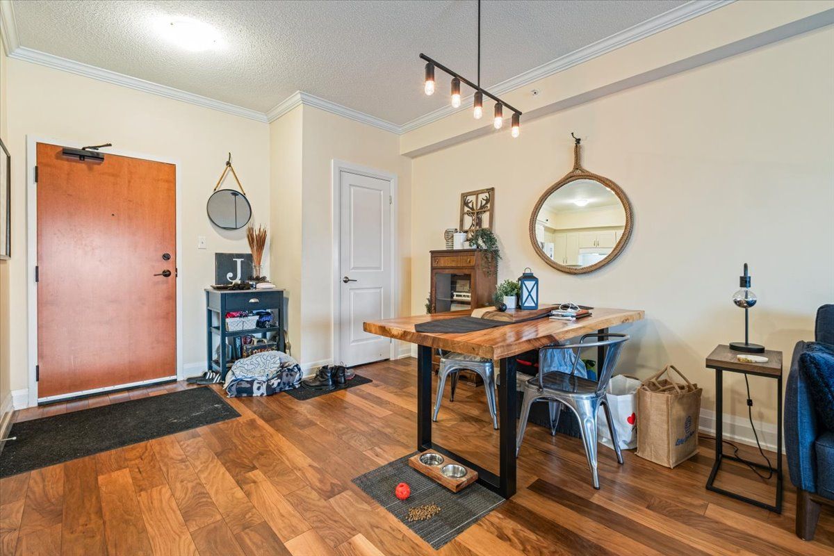 Welcome to this spacious, bright, and beautifully maintained 1-bedroom, 1 bathroom condo at the highly desirable yonge station community in south barrie. Upgraded throughout with an open-concept layout. The kitchen features tile backsplash, white appliance package, quartz counters, pot drawers, and an undermount sink, seamlessly overlooks the generous living area and separate dining area - perfect for entertaining. California shutters package throughout, engineered laminate flooring, upgraded lighting, crown moulding, custom doors to laundry area and bedroom. $30,000 in upgrades. The large primary bedroom offers a comfortable retreat. Spacious bathroom provides for a custom walk-in shower, nice sized vanity, upgraded toilet, laundry and storage. Convenient location just steps to the go station, making commuting a breeze, and close to excellent schools, shopping, parks, and everyday amenities. Enjoy your private balcony, barbecue's are permitted, large enough for comfortable patio furniture set, pet friendly building, underground parking, and a dedicated locker for extra storage. Common exercise facility/gym exclusive to the residents. Lots of visitor parking, quiet, friendly complex with secure entry and elevator. Quick access to highway 400, barrie's lovely waterfront and just minutes to innisfil, and friday harbour resort. An excellent opportunity for first-time buyers, downsizers, or investors.