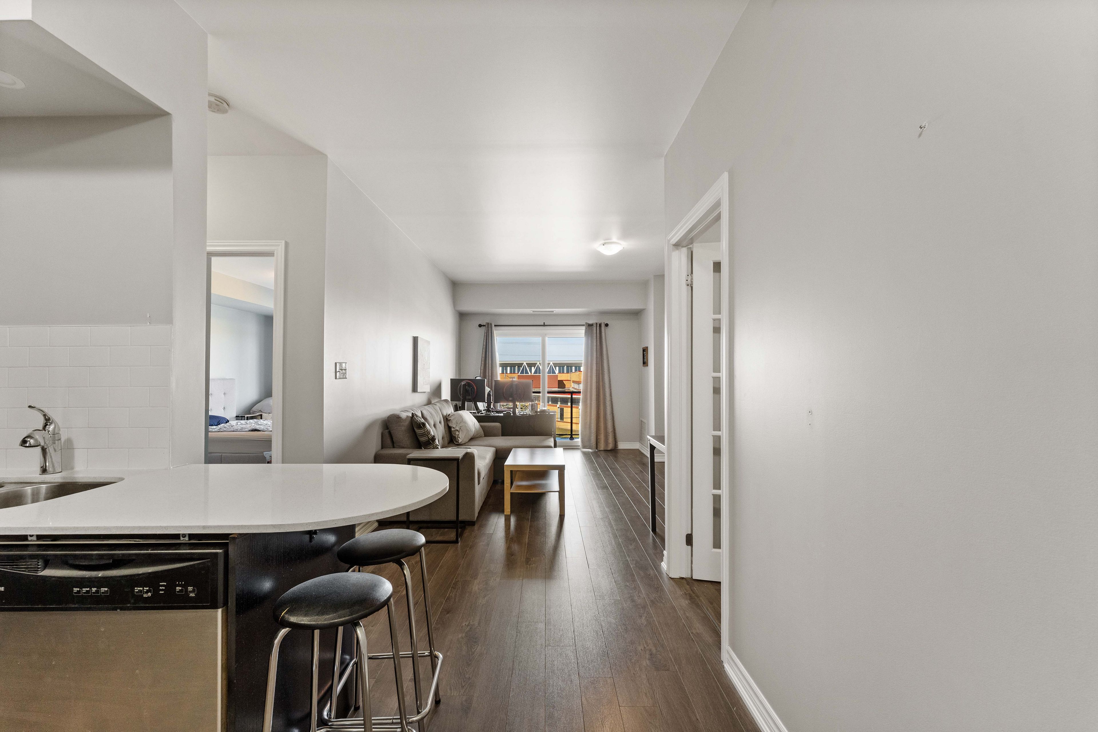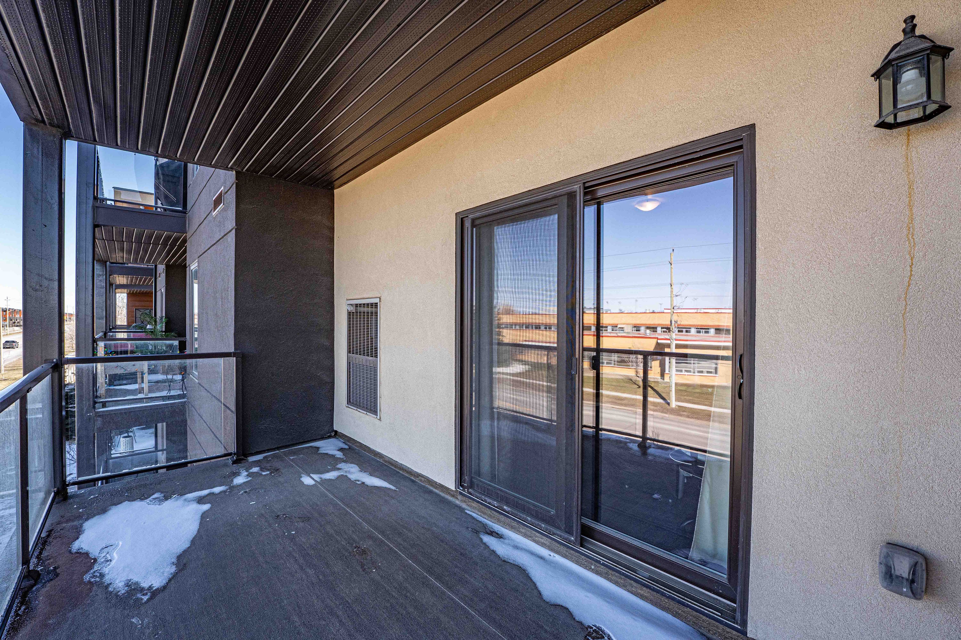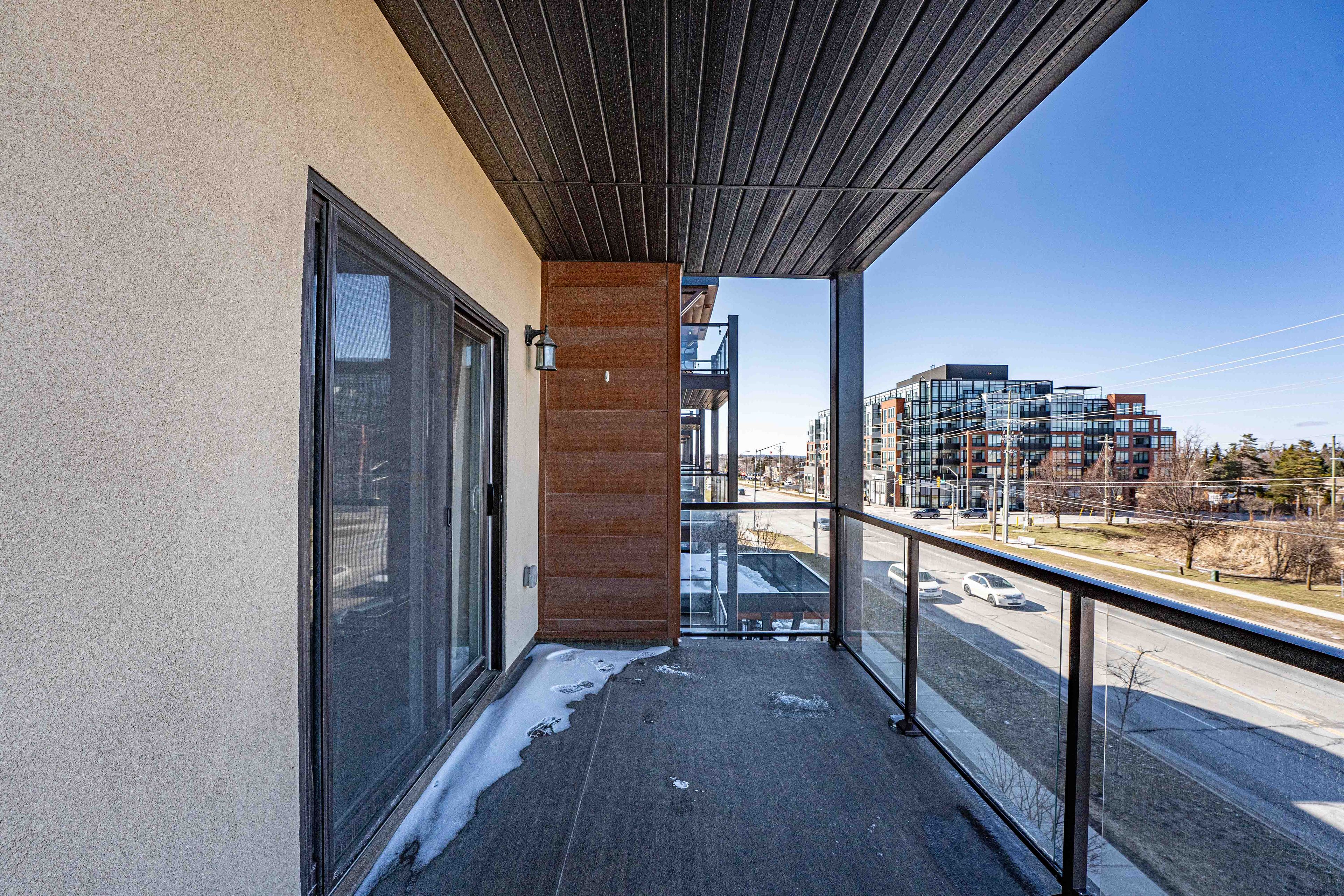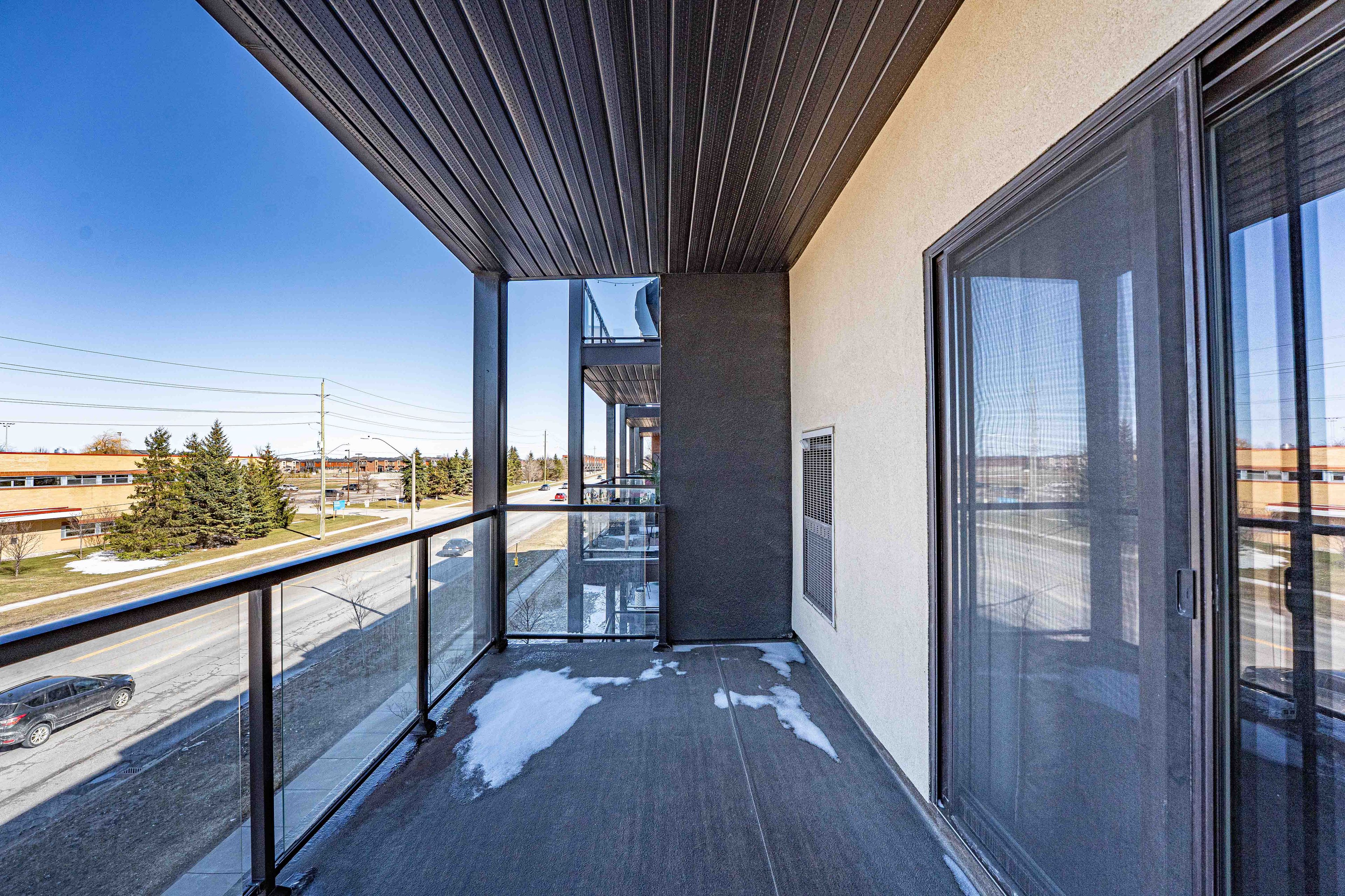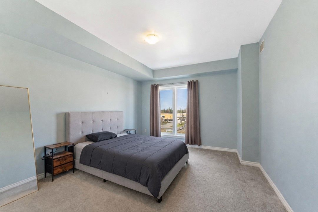 Welcome to suite 307-780 yonge st, a beautifully maintained third-floor residence in barrie's sought-after yonge station community that offers the perfect blend of modern style and commuter convenience. This bright and airy one bedroom plus den suite features soaring nine-foot ceilings and an open-concept layout highlighted by a contemporary kitchen with quartz countertops and a breakfast bar that overlooks a spacious living area. Step out through the walkout to a massive covered 13. 9 x 6. 10 foot balcony ideal for outdoor entertaining and year-round bbqs while the oversized primary bedroom comfortably accommodates a king-sized bed and the versatile den provides an excellent space for a home office or guest quarters. Perfectly suited for a turn-key lifestyle, this impeccably clean smoke-free and pet-free home includes in-suite laundry, one underground parking space, a storage locker, and exclusive access to a renovated private gym. Situated just steps from the south barrie go station and minutes from highway 400, this prime location is within walking distance of local schools, parks, and shopping centers.
