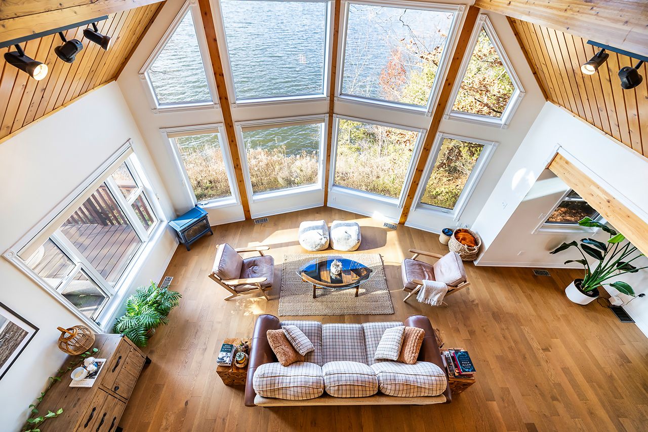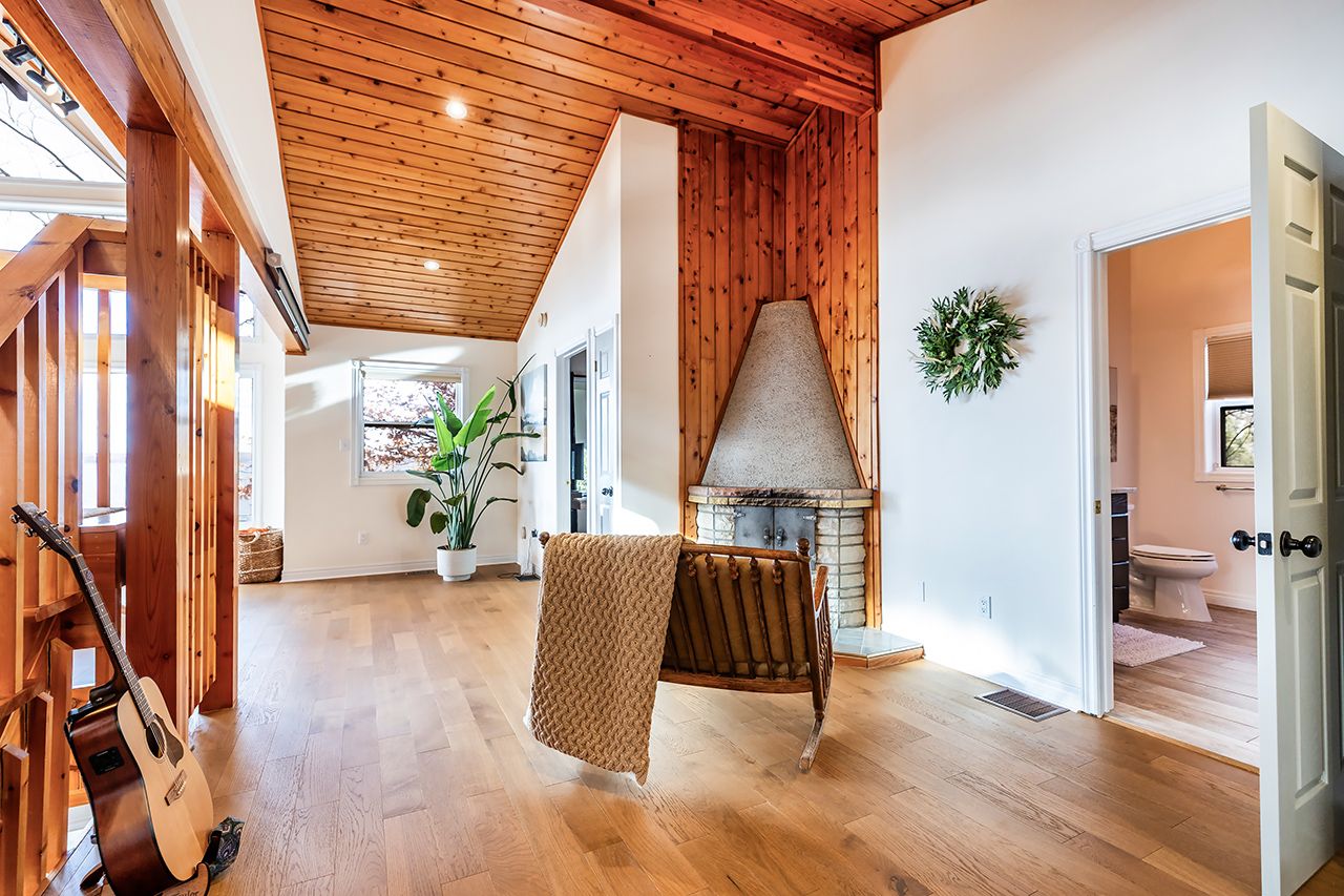 • Open concept main floor with vaulted ceilings and hardwood floors.
