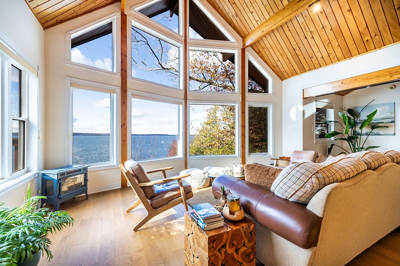 Subtype DetachedIndoor Features Guest Accommodations, SaunaOutdoor Features Deck, Fishing, PrivacyAmenities Waterfront, Clear View, Cul de Sac/Dead End, School Bus RouteOwnership FreeholdViews Clear, Lake, Panoramic, SkylineWaterfront DirectBasement Finished with Walk-OutFoundation ConcreteHeating / Cooling Forced AirHeating Fuel PropaneSewer Septic