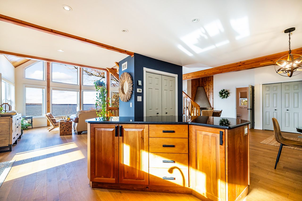 Offering exceptional quality and privacy with 387ft of frontage on the south shores of rice lake. This linwood built home rests on a secluded 1. 4 acre lot on a dead end road. The clean shoreline offers excellent swimming and unobstructed views of natural skyline & sunsets. The impeccably kept home offers 4 bedrooms & 3 washrooms and is filled with natural light, built with consideration offering clear views of the lake from every vantage point. Open concept main floorplan with vaulted ceilings and hardwood floors, eat-in kitchen with centre island & stone counter. 2nd floor loft bedroom with ensuite bath & w/i closet. Main floor bedroom, full bath, laundry & custom fireplace. The lower level is completed with 2 bedrooms, 3pc bath & sauna and a walkout to greenspace. Outdoors you'll find a spacious storage shed and a bunkie for guests in the summer time. New dock w easy lift for winter storage. Lakeside firepit. Tons of parking. Truly a resort style property that must be seen to be fully appreciated!