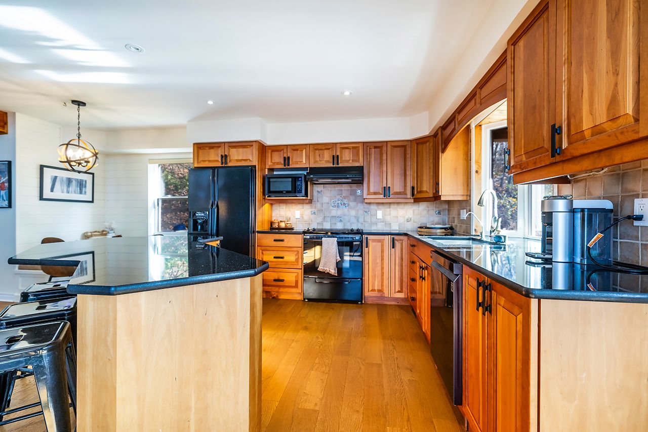 • Lower level has 2 bedrooms, a sauna, and walkout to greenspace.