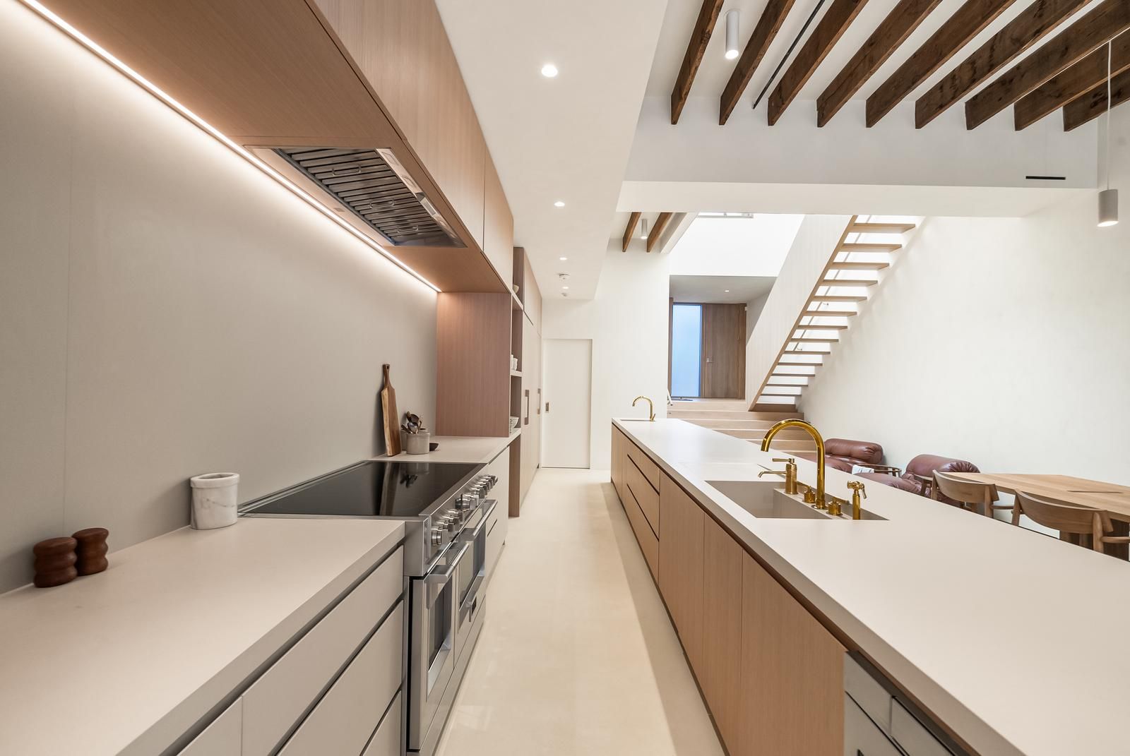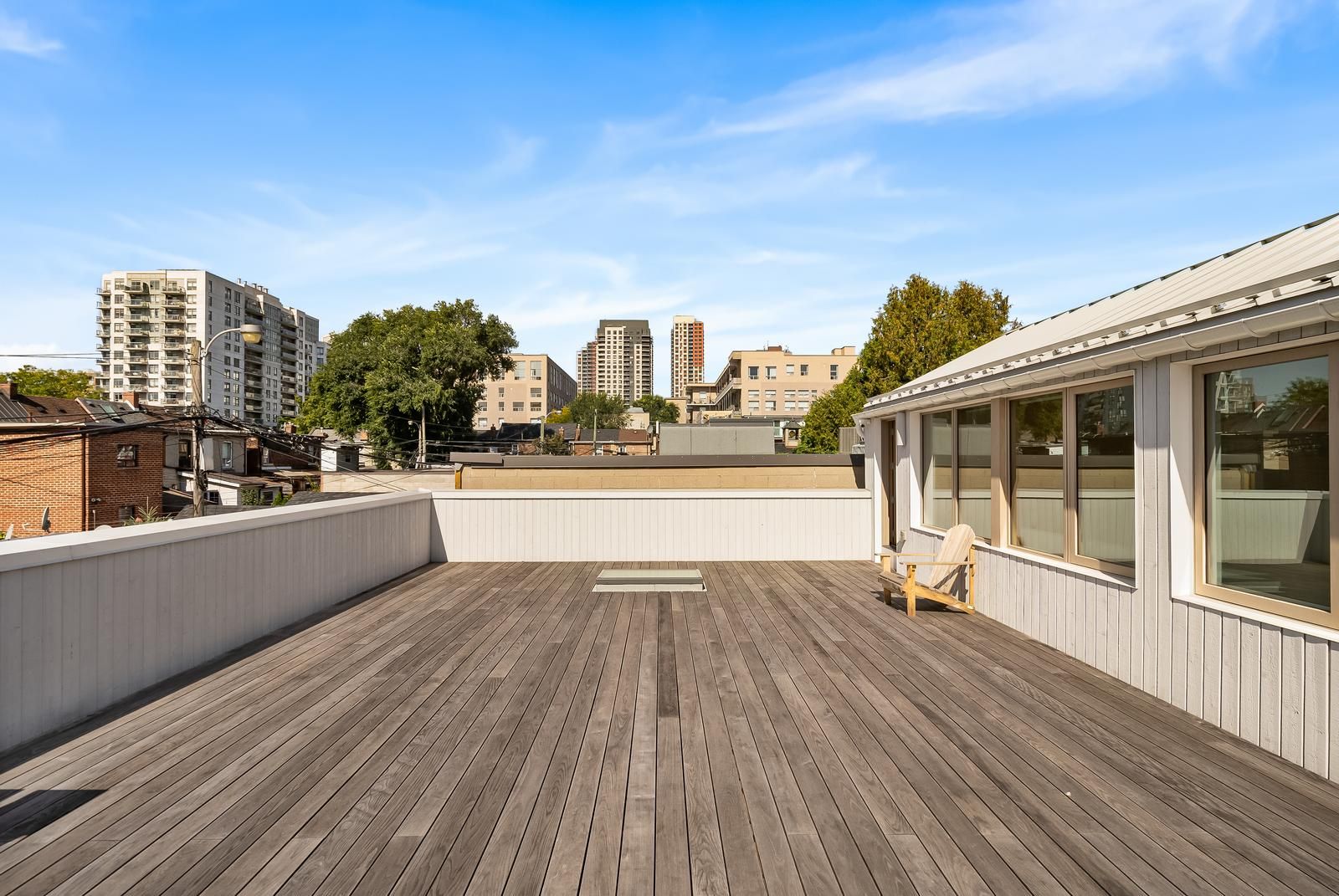 Welcome to the north residence at 722 lansdowne, a fully furnished executive mid-term rental located in toronto's vibrant junction neighbourhood. Designed by studioac, one of canada's most celebrated architecture firms, this luxurious 2 bed, 2 bath home is a perfect balance of heritage, innovation, serenity and refined opulence. The interior features a monochromatic palette of limewash painted walls, micro-cement floors, and solid white oak millwork. The main floor opens to a double height atrium and a monumental dining, kitchen and living space. Original exposed rafters and brickwork nod to the building's history, while curated stone surfaces bring elegant modern craftsmanship to every detail. A centre courtyard and expansive rooftop terrace provide this home with a connection to nature and light. The huge primary suite has a spa like en suite with a walk out to a signature japanese maple courtyard. Fully furnished with a king bed in the primary, queen bed in the second bedroom, sectional couch, dining table, dining chairs and accent furniture. All appliances, equipped kitchen, gym equipment, built in office, gas bbq & secure interior parking.