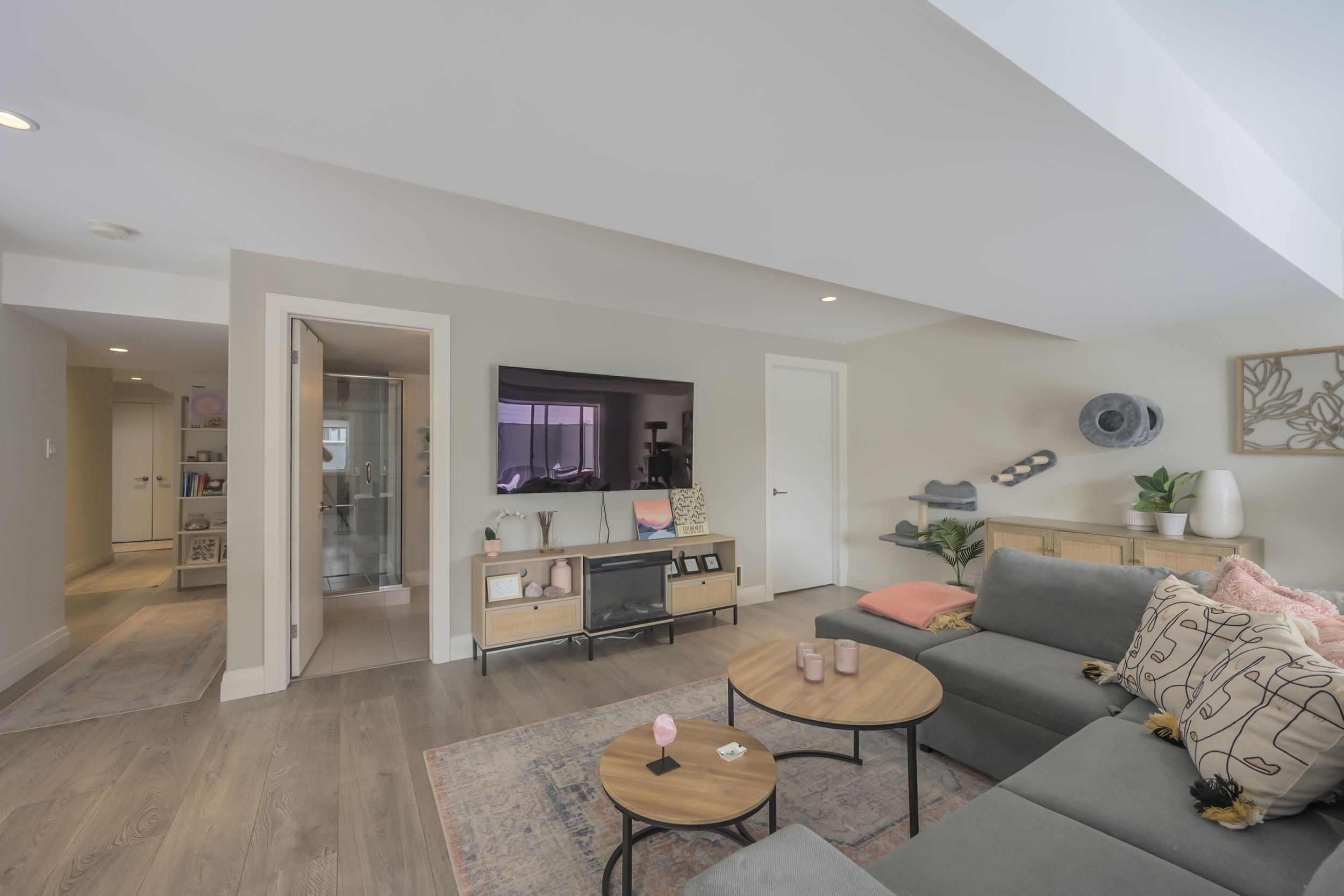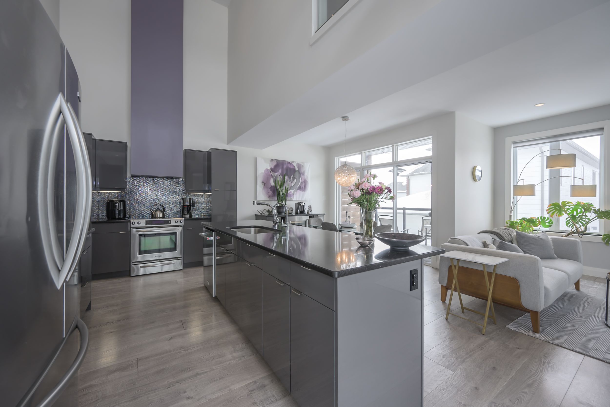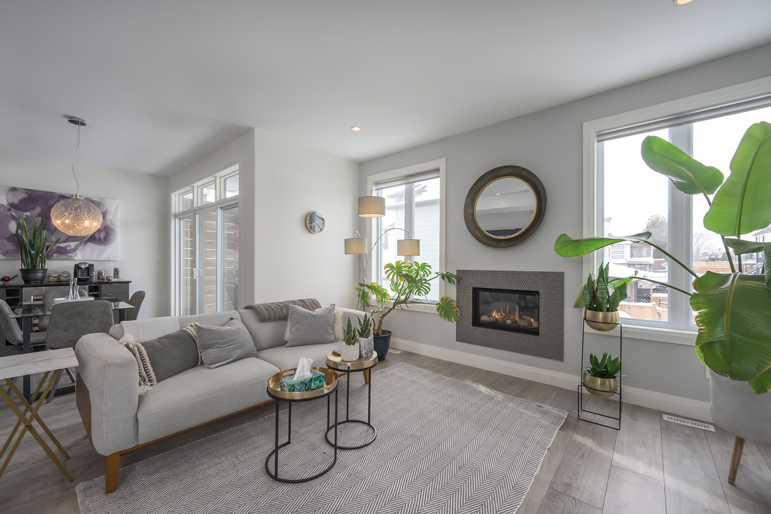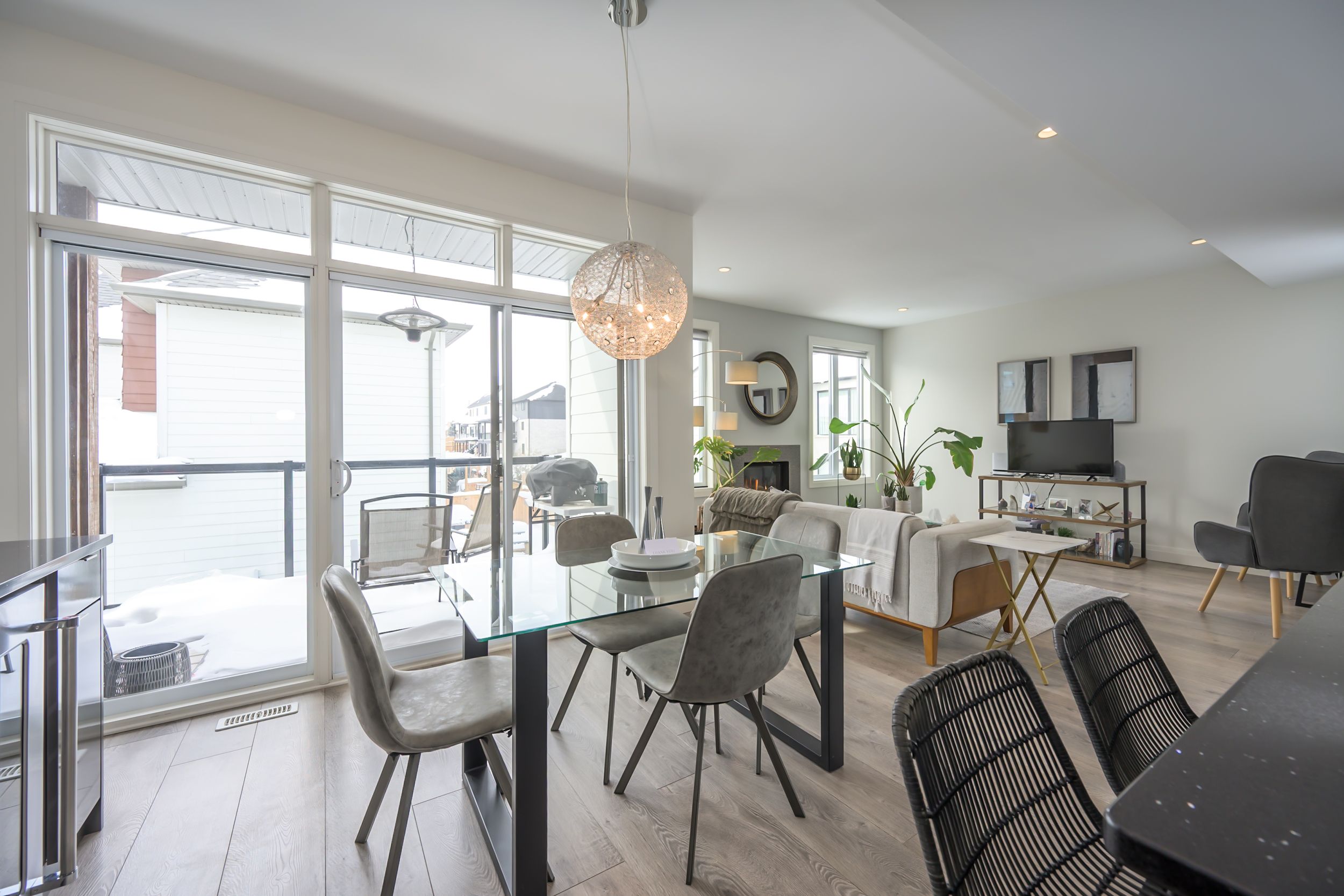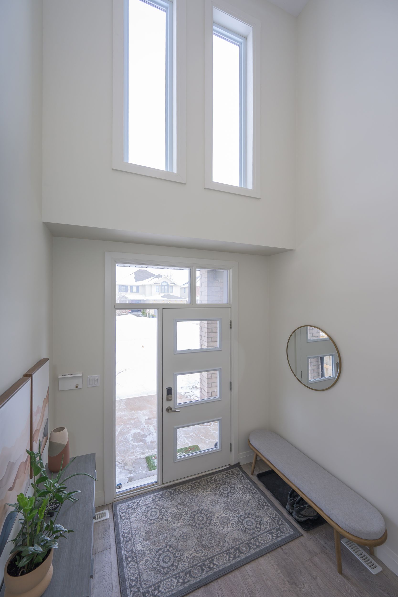 Sleek and modern 2-storey located in prestigious byron. The open-concept main floor offers an ideal layout for both entertaining and everyday living. The spacious kitchen features impressive 2-storey ceilings, a large island, and seamless flow into the dining and living areas, complete with a stylish wine bar. Two sets of sliding doors lead to covered balconies with glass railings, creating excellent indoor-outdoor living spaces. The living room showcases large west-facing windows and a cozy fireplace with updated tile surround. Additional main floor updates include custom window coverings (2025), dishwasher (2021), and a stone countertop in the powder room. The main floor laundry and mudroom combination offers custom built-in cabinetry, along with a new washer and dryer (2023). The innovative dual-washer machine allows for simultaneous, separate loads. The spacious primary bedroom features a walk-in closet and beautifully updated ensuite with quartz countertop, tile surround shower, tile flooring, and in-floor heating. Two additional generously sized bedrooms share a jack and jill bathroom. The thoughtfully redesigned walk-out lower level includes two additional finished rooms, a rec room, and a 3-piece bathroom. Further updates include concrete patio, fully fenced with composite privacy fencing and gate, a/c (2024), furnace motor, google nest, garage door opener with remotes and app capability. This vacant land condo has a monthly fee of $285, which covers snow removal for the driveway, steps, and porch, as well as maintenance of the private road.