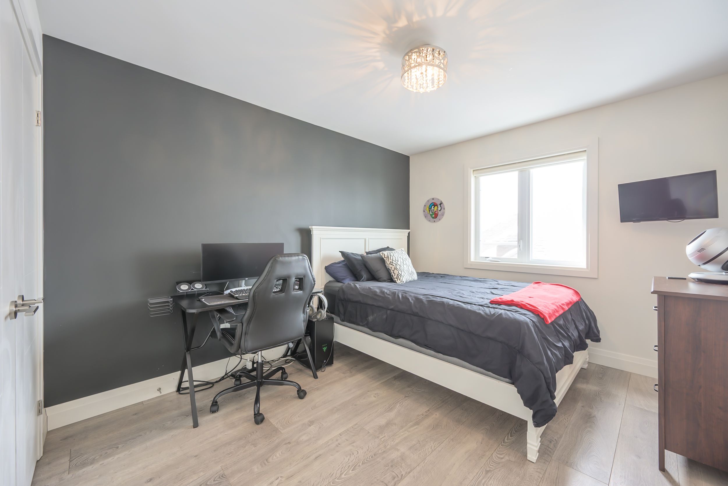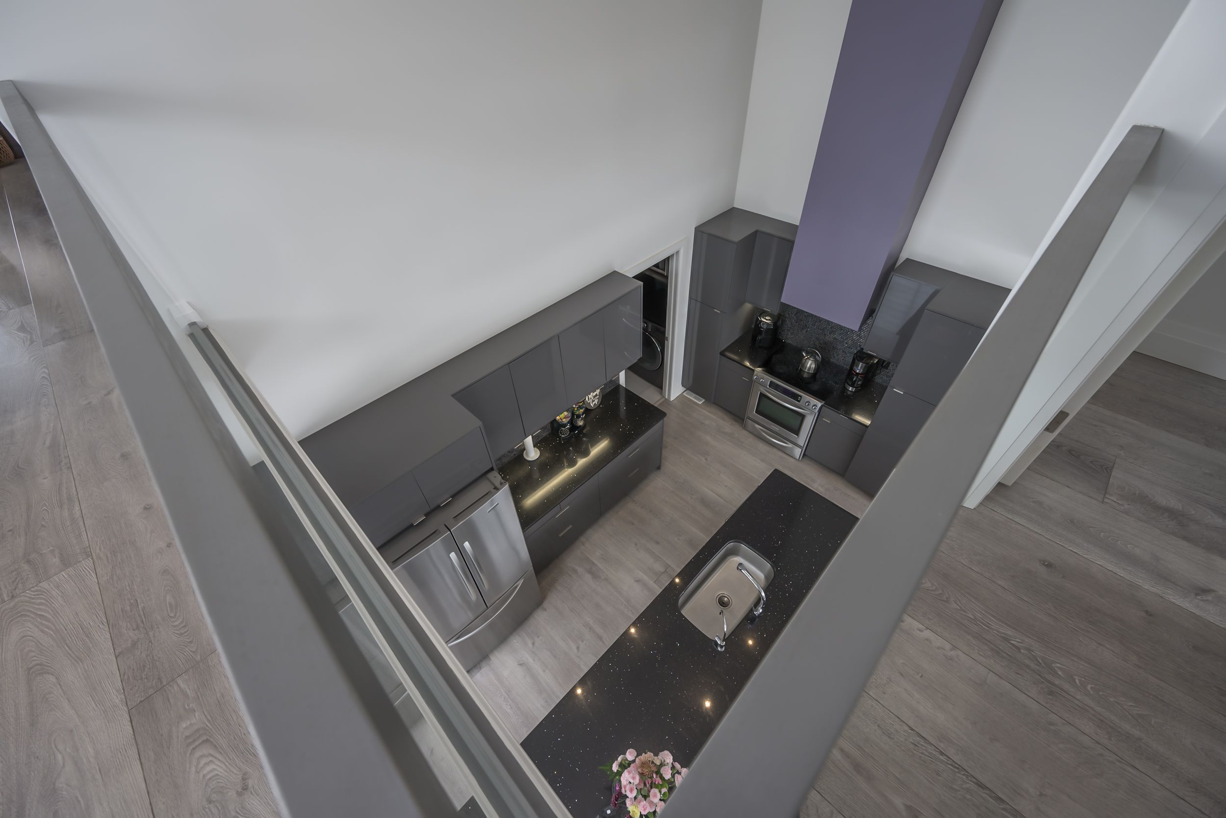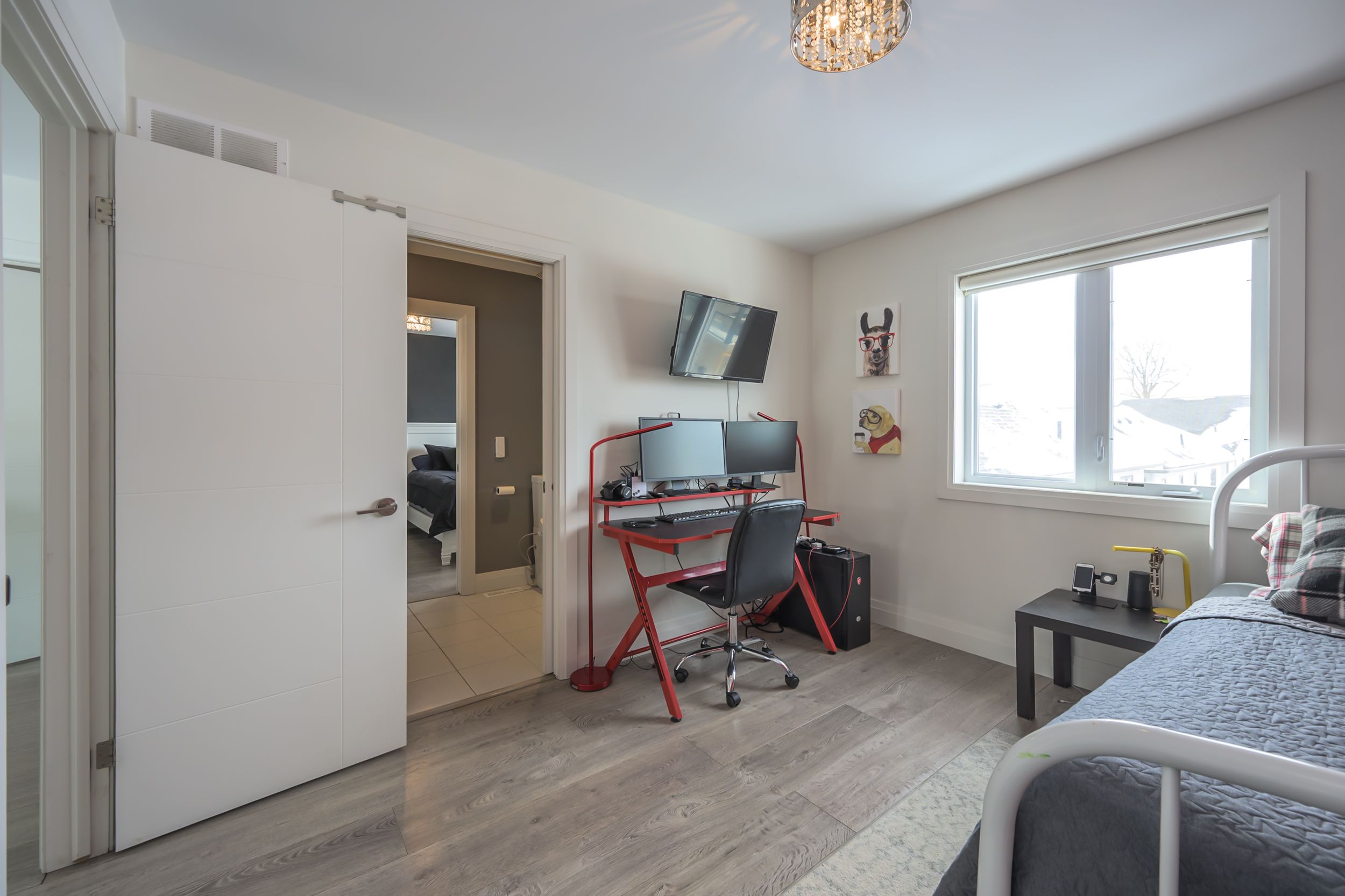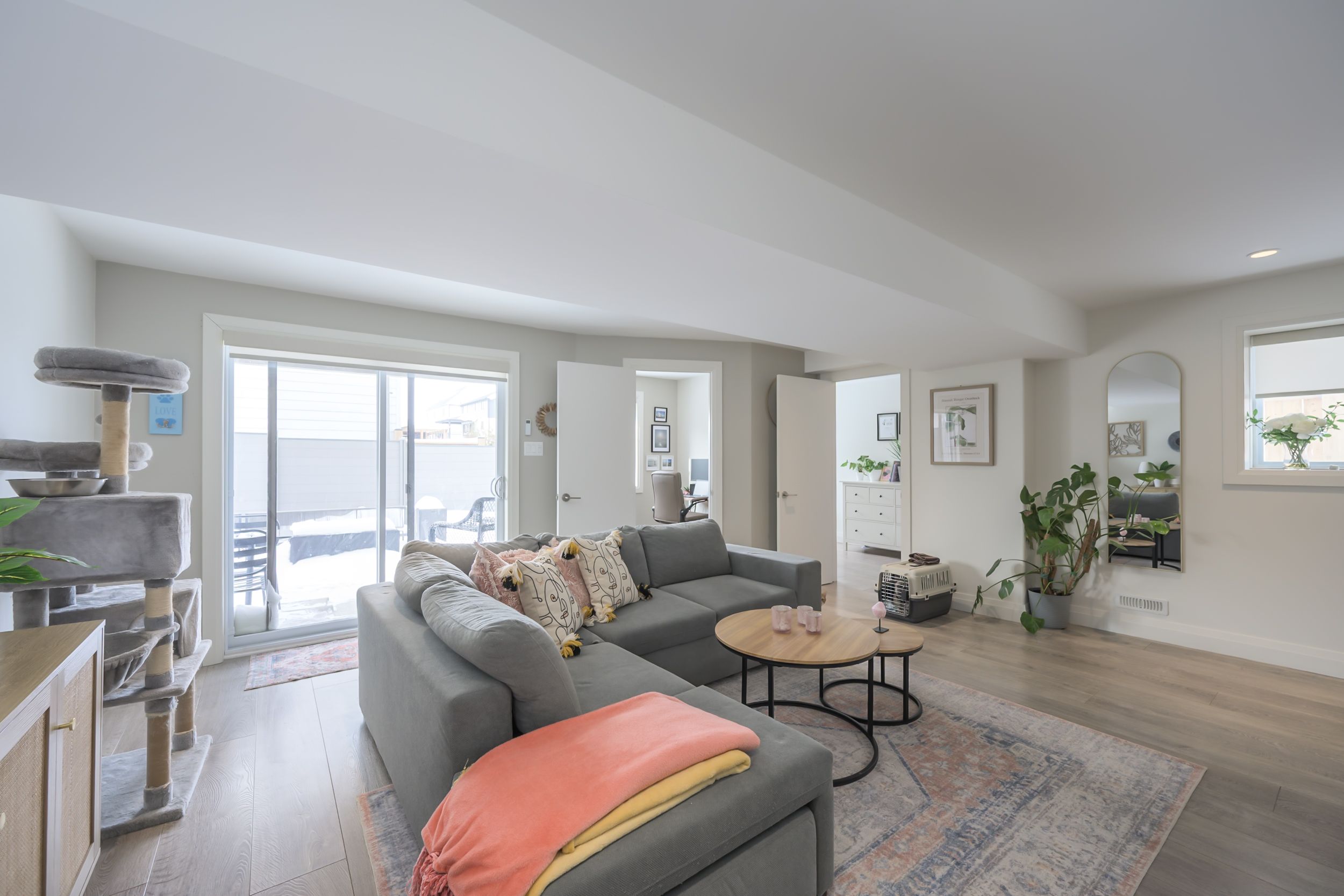 Sleek and modern 2-storey located in prestigious byron. The open-concept main floor offers an ideal layout for both entertaining and everyday living. The spacious kitchen features impressive 2-storey ceilings, a large island, and seamless flow into the dining and living areas, complete with a stylish wine bar. Two sets of sliding doors lead to covered balconies with glass railings, creating excellent indoor-outdoor living spaces. The living room showcases large west-facing windows and a cozy fireplace with updated tile surround. Additional main floor updates include custom window coverings (2025), dishwasher (2021), and a stone countertop in the powder room. The main floor laundry and mudroom combination offers custom built-in cabinetry, along with a new washer and dryer (2023). The innovative dual-washer machine allows for simultaneous, separate loads. The spacious primary bedroom features a walk-in closet and beautifully updated ensuite with quartz countertop, tile surround shower, tile flooring, and in-floor heating. Two additional generously sized bedrooms share a jack and jill bathroom. The thoughtfully redesigned walk-out lower level includes two additional finished rooms, a rec room, and a 3-piece bathroom. Further updates include concrete patio, fully fenced with composite privacy fencing and gate, a/c (2024), furnace motor, google nest, garage door opener with remotes and app capability. This vacant land condo has a monthly fee of $285, which covers snow removal for the driveway, steps, and porch, as well as maintenance of the private road.