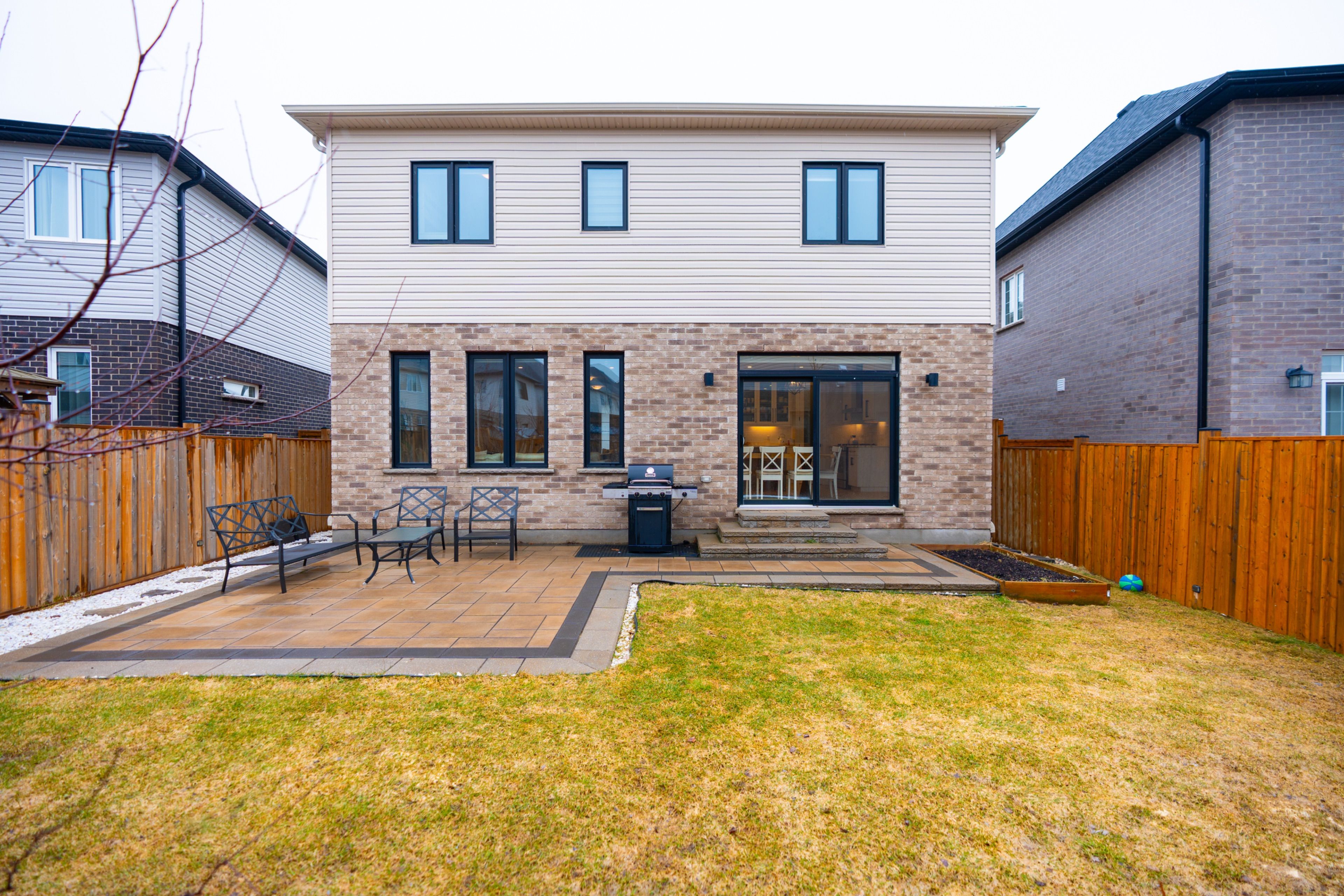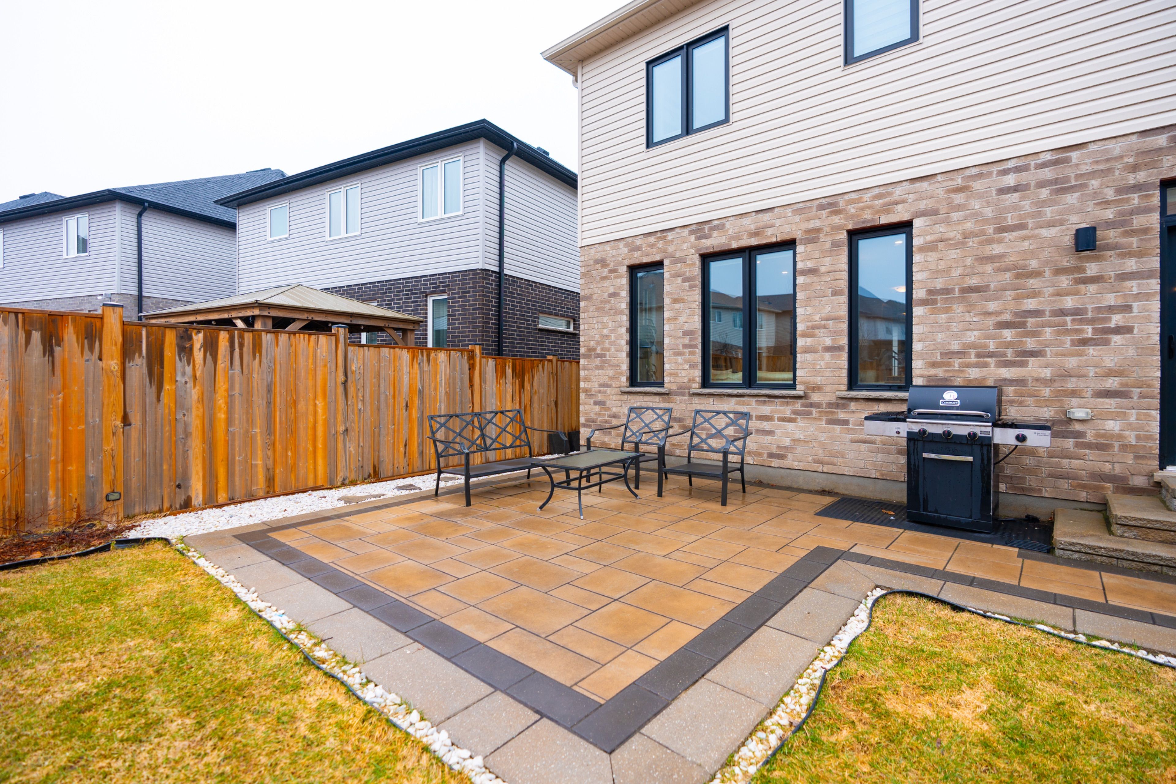 • Landscaped backyard with a patio, perfect for outdoor gatherings and relaxation.