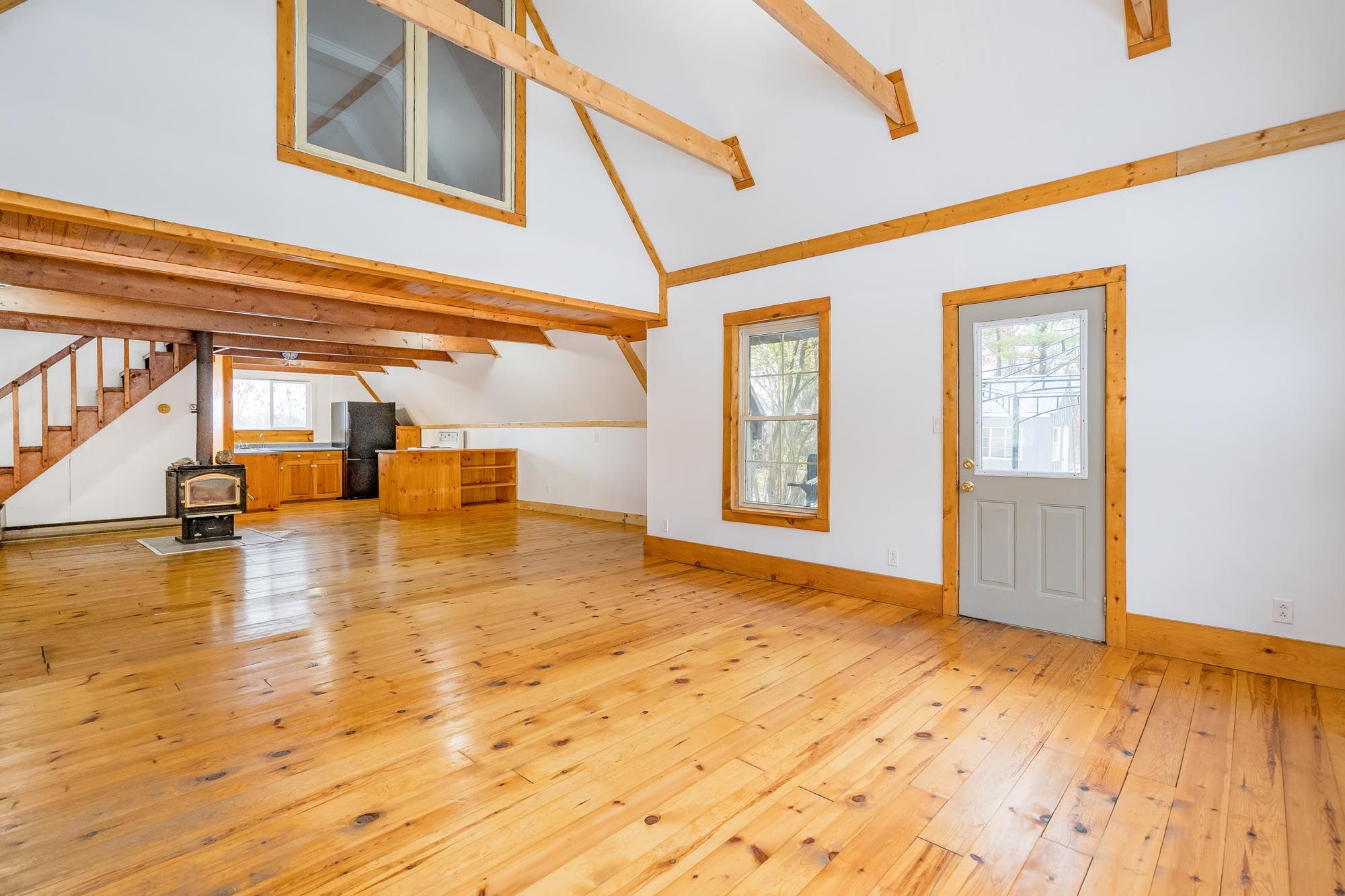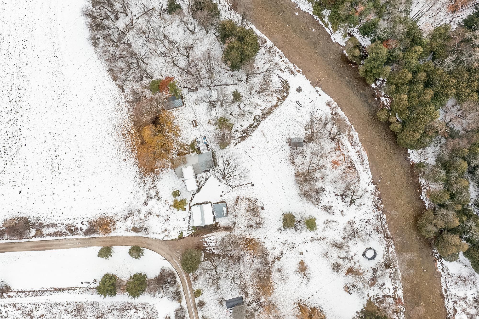 Top 5 reasons you will love this home: 1) tucked along the serene mad river, this property invites you to slow down and reconnect with nature, offering a private retreat where you can fish from your backyard, listen to the gentle flow of water, and unwind in a tranquil setting surrounded by mature trees on a quiet country road 2) the main three bedroom, one bathroom cottage exudes rustic charm with exposed wood beams, vaulted ceilings, and sun-filled windows that bring the outdoors in, mixing cozy comfort and natural warmth for year-round living or weekend getaways 3) the detached studio, complete with electric baseboard heating and a wood-burning fireplace, offers endless versatility as an art studio, guest suite, or peaceful home office, a perfect extension of the main home's inviting character 4) a detached garage provides a full workshop at the front and a powered bunkie at the back, ideal for hosting guests or pursuing hobbies, while a nearby wood shed keeps firewood close at hand for cozy evenings 5) surrounded by trees and featuring a large vegetable garden with direct river access, this property is a haven for nature lovers, offering unmatched privacy just minutes from the charming village of creemore with its boutique shops, cafés, and welcoming community atmosphere. 1,539 above grade sq. Ft. *please note some images have been virtually staged to show the potential of the home.