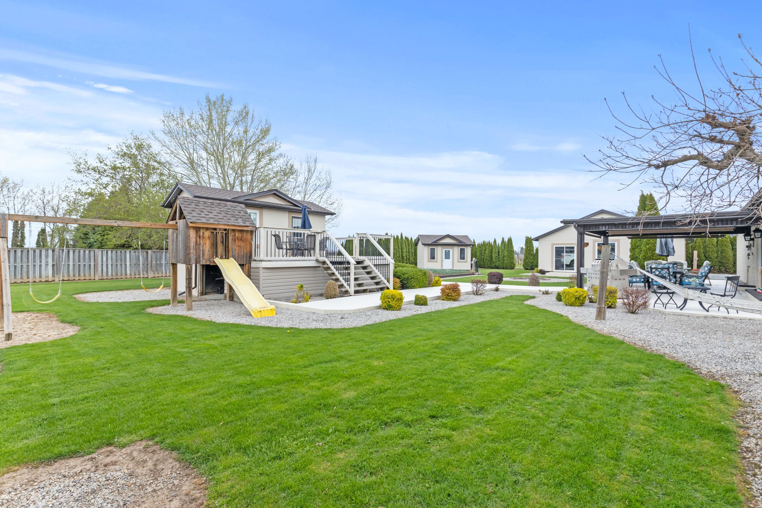 Picturesque opportunity in the heart of niagara-on-the-lake's wine country! Surrounded by beautiful vineyards and peaceful countryside, this 3,700 sq ft two-storey home sits on a full one-acre lot and offers the space, privacy, and lifestyle you have been looking for. The home features 4 bedrooms and 2. 5 bathrooms with a spacious layout designed for everyday living and easy entertaining. Large principal rooms, multiple living areas, and a generous kitchen create a comfortable flow that's perfect for family life or hosting friends. There's plenty of parking and an oversized garage, giving you lots of room for vehicles, hobbies, or equipment. Outside, the property really shines with mature landscaping, productive vegetable gardens, and several outbuildings that could work well as a workshop, studio, hobby space, or extra storage.