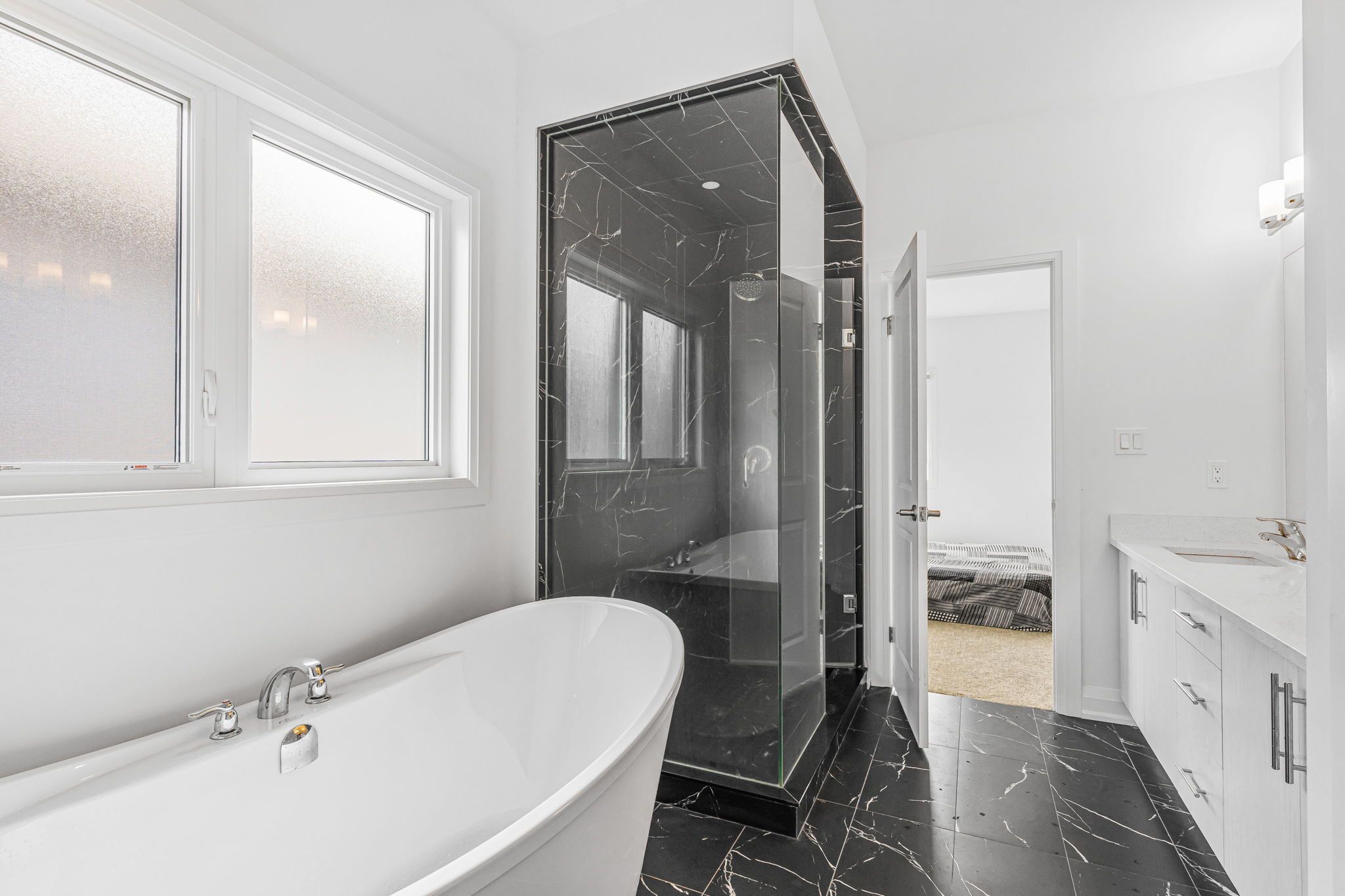 Welcome to 7249 parkside road! This stunning modern home combines elegance, thoughtful design, and superior craftsmanship. Offering over 2,600 sq. Ft. Of living space with 4 bedrooms and 4 bathrooms, it delivers the perfect blend of comfort and style. The main floor features soaring 9-ft ceilings and an open-concept layout ideal for both everyday living and elevated entertaining. At the heart of the home lies a chef's dream kitchen, complete with expensive quartz countertops, stainless steel appliances, soft-close cabinetry, and an oversized pantry. The living and dining areas flow seamlessly to the backyard, perfect for outdoor relaxation. A statement oak staircase enhances the home's airy feel and leads to the upper level, also with 9-ft ceilings, creating a bright and open atmosphere throughout. Every detail has been thoughtfully curated. The primary suite is a true retreat, boasting an impressive walk-in closet and a spa-inspired 5-piece ensuite featuring quartz countertops, double sinks, a freestanding soaker tub, and a large glass shower. The second and third bedrooms share a stylish 4-piece bath, while the fourth bedroom enjoys its own private 3-piece ensuite. The unfinished lower level offers a separate entrance, tall ceilings, oversized windows, and a bathroom rough-in, providing the flexibility to create your ideal additional living space, whether a recreation room, gym, or in-law suite. Beyond the home itself, the location offers an enviable lifestyle. Families will appreciate being close to excellent schools, parks, and shopping, including costco, while food and wine lovers can explore the area's award-winning wineries and restaurants. For leisure and recreation, nearby golf courses and scenic walking trails make it easy to stay active and connected to nature. This is truly a must-see home. Book your private showing today!
