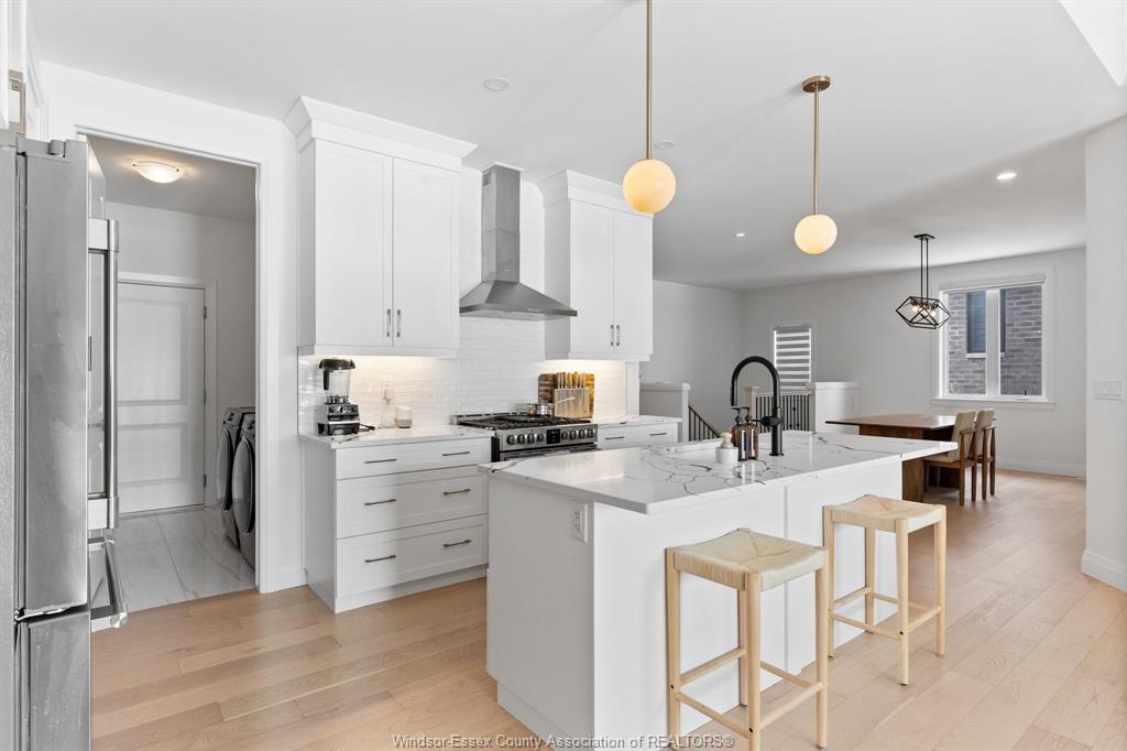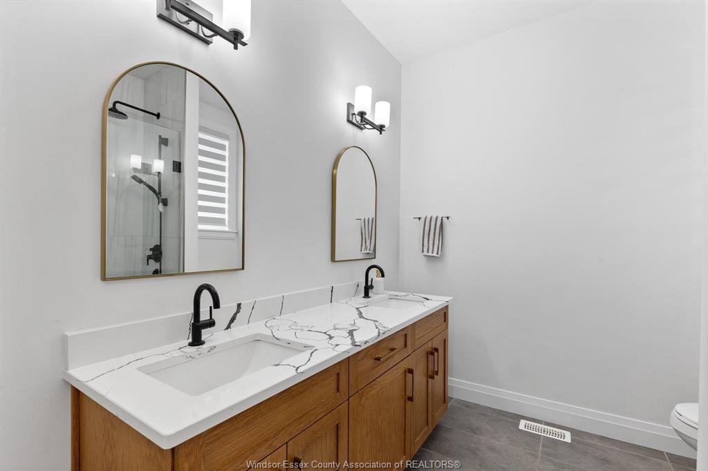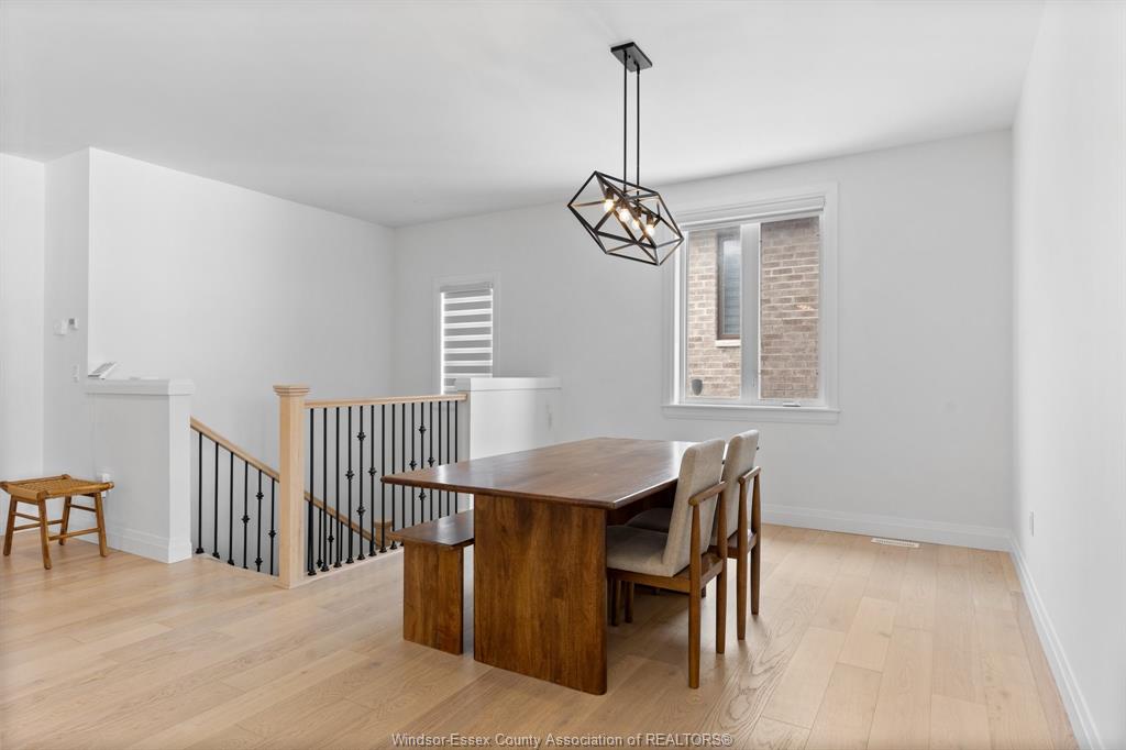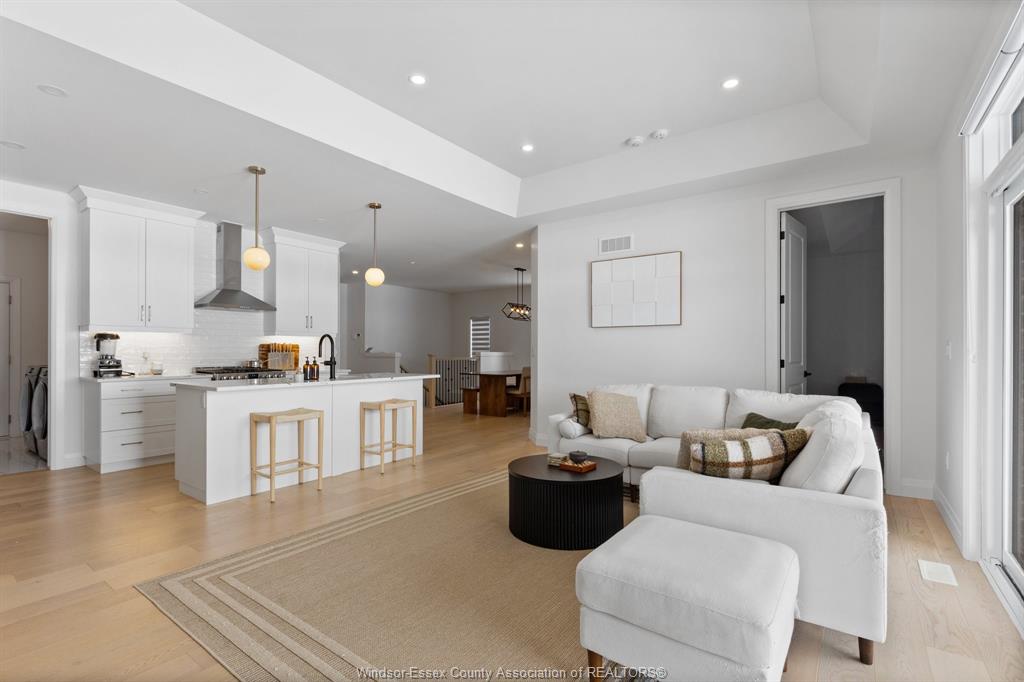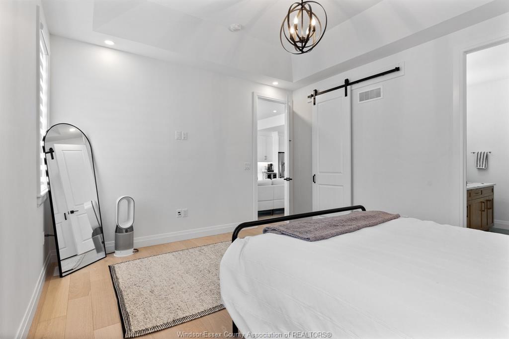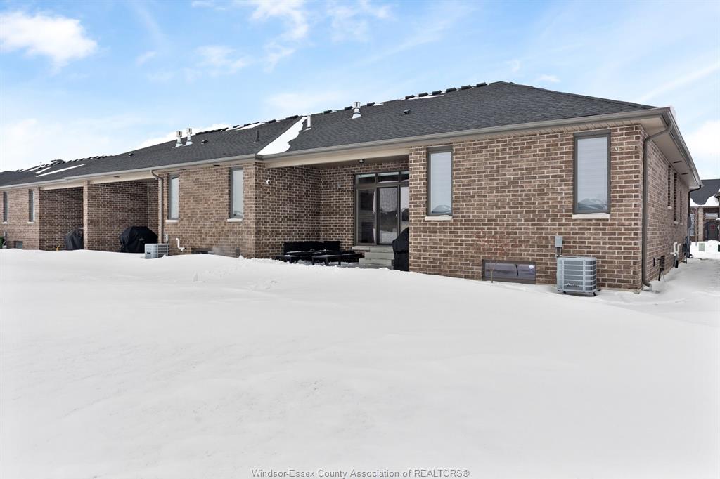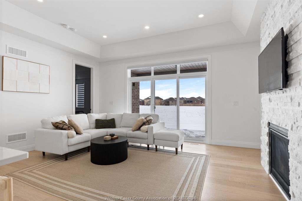 Introducing this fantastic opportunity to move into one of lakeshores finest ranch's available, nearly 1500 sq ft, complete with full brick & stone in the lakeshore new centre estates project. Stunning open concept design & 9ft ceilings throughout with dining, family room, and large designer kitchen with stainless steel appliances, flowing seamlessly together. Family room with 10 ft ceiling & sliding glass doors leads to a large covered patio area. Large main floor primary is featured with a 10 ft tray ceiling design, large walk-in closet with barn doors, & a stunning 4-piece ensuite. Main floor also features another bedroom as well as a 3-piece bath with a unique soaker tub. Potential to finish the basement & add another 2 bedrooms and a full bath. Modern design & finishes throughout. Concrete driveway & sod completed. No association fees! Great opportunity for a newer home in lakeshore!