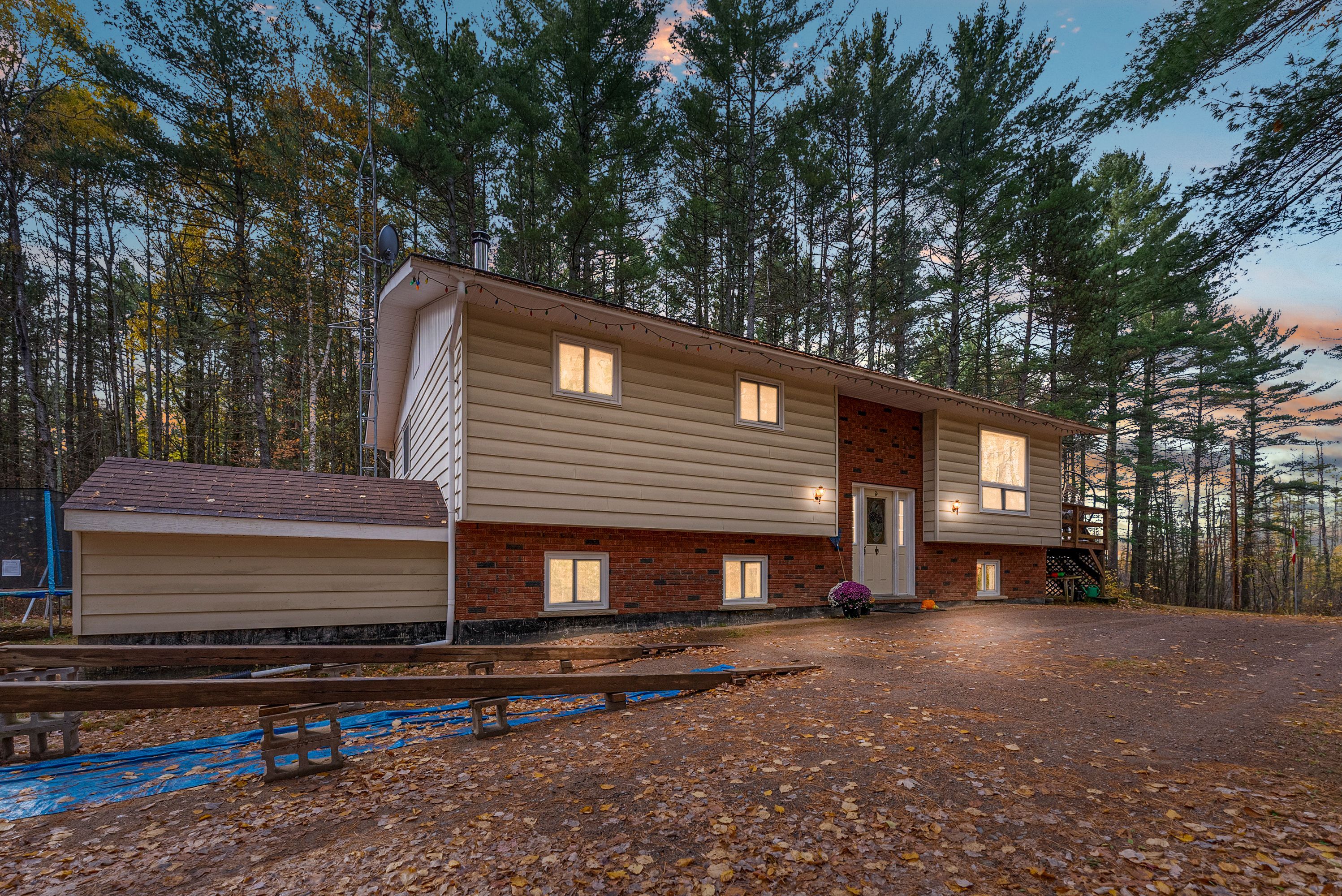 Rare find! This bungalow is located on 58-acre lot just in the outskirts of pembroke and offers the best of both worlds - total peace and privacy, and under 20 minutes to groceries and shopping in pembroke and just over 25 minutes to garrison petawawa. The acreage is low-maintenance, mostly covered in beautiful red pine forest, with generous open green space ideal for outbuildings and gardens. It's the perfect home for anyone wanting to escape the city noise. A great spot for hunting or exploring, with stunning trails throughout and frequent deer sightings right on the property. A beautiful pond with a charming bridge - perfect for nature lovers and outdoor enthusiasts alike. The home itself has been lovingly cared for by its long-term original owners. Inside, you'll find three bedrooms, a spacious open kitchen with plenty of counter space, a dedicated dining area, and a large family room. From the kitchen, step out to a large front patio - a great place to enjoy your morning coffee and take in the peaceful surroundings. The updated 4-piece bathroom features a large corner tub and a beautiful tile shower. The fully finished lower level offers a cozy rec room anchored by a warm fireplace - ideal for relaxing after a day outdoors. There is a 4th bedroom roughed in currently used as storage, and space for an additional bathroom if desired. If you've been dreaming of country living without giving up convenience, this property truly delivers! 48 hour irrevocable on all offers.