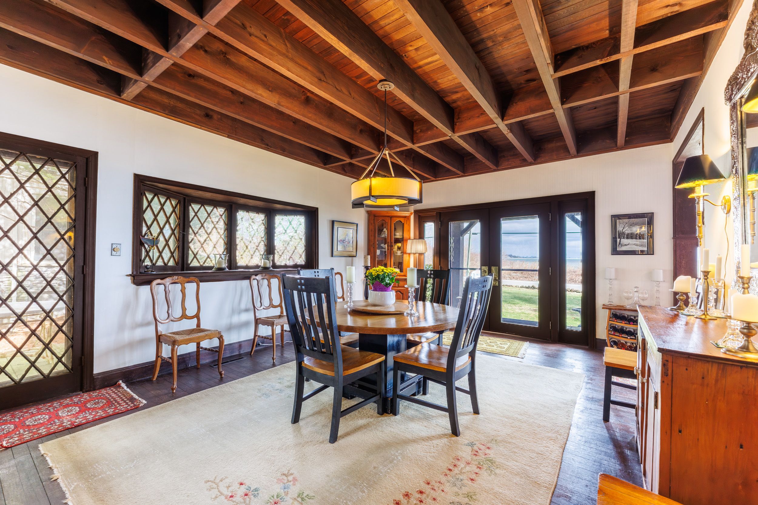 Set on nearly three acres along the prestigious point abino shoreline, 725 point abino rd south is a rare waterfront estate offering history, privacy, and beautiful views of lake erie. Owned by just three families since the home was built in 1900, this unique property features 103 feet of frontage and over 1,200 feet of depth stretching back into mature forest, creating a peaceful retreat surrounded by nature. The 4-bedroom, 3-bathroom cedar shake home blends timeless character with thoughtful updates. Light-filled living spaces and classic architectural details create a warm, welcoming atmosphere. The updated living room features a gas fireplace and views toward the lake, while the renovated kitchen includes a large centre island with seating for five and connects to a convenient servery / butler's pantry with sink and storage. Designed for both entertaining and everyday living, the home offers several gathering spaces including a family room with wood-burning fireplace and bay window overlooking the water, and a formal dining room with lake views and elegant double doors opening to the front yard and gardens. Hardwood floors and open-beamed ceilings add warmth and character throughout. Upstairs, four spacious bedrooms include two with lake erie views and fireplaces, while the primary suite features generous closet space and a walk-in dressing area. Outdoors, the property offers mature trees, expansive lawns and perennial gardens with irrigation, a circular driveway, and a flagstone patio and firepit area, both overlooking the lake. Deeded beach access allows you to enjoy the shoreline just steps away. A detached two-car garage with a 2-bedroom apartment above provides flexible space for guests or extended family. Located minutes from crystal beach, ridgeway, boat clubs, golf courses, and the historic point abino lighthouse, this exceptional property offers a rare opportunity to own a piece of niagara's lakeside history.