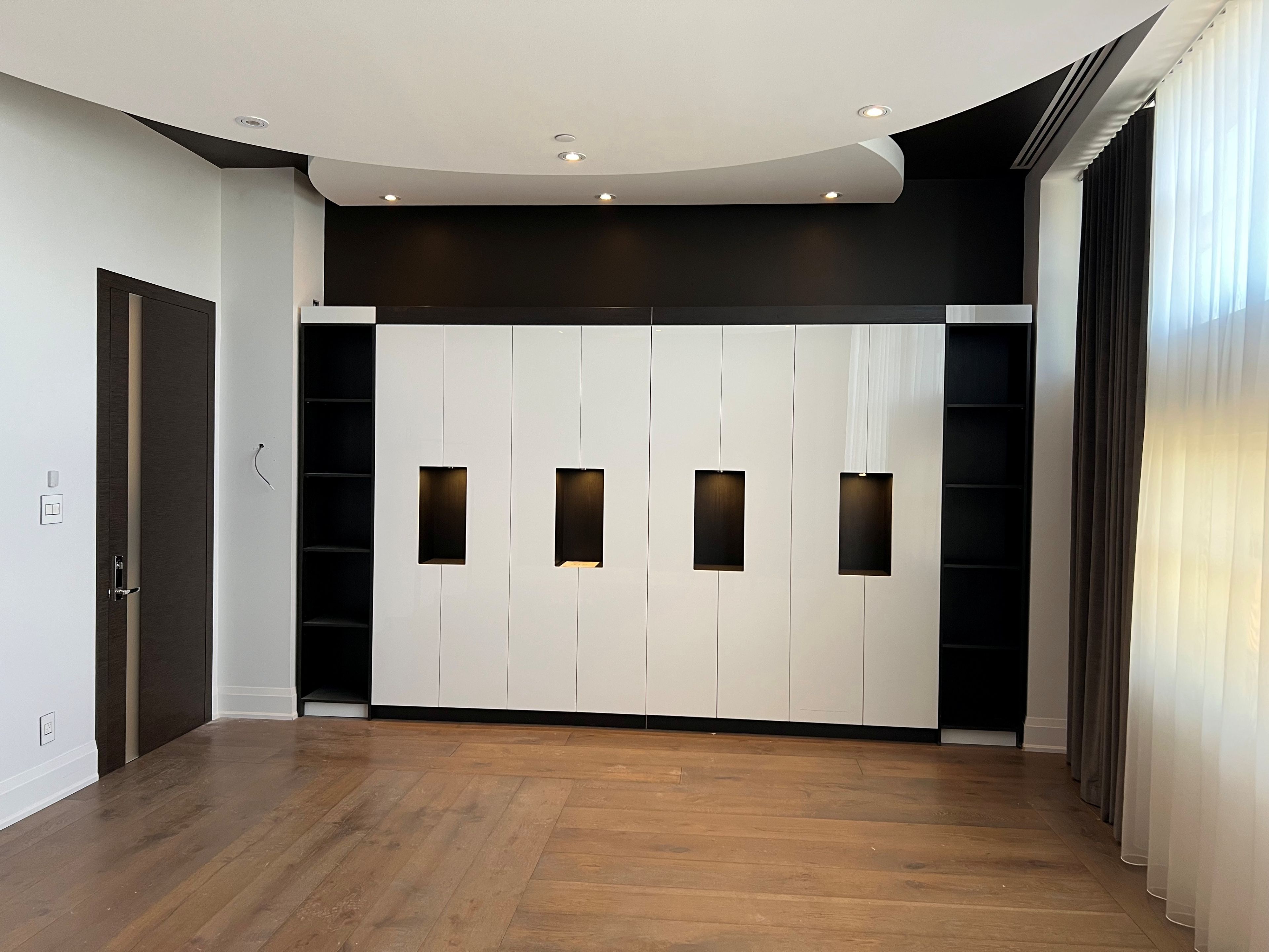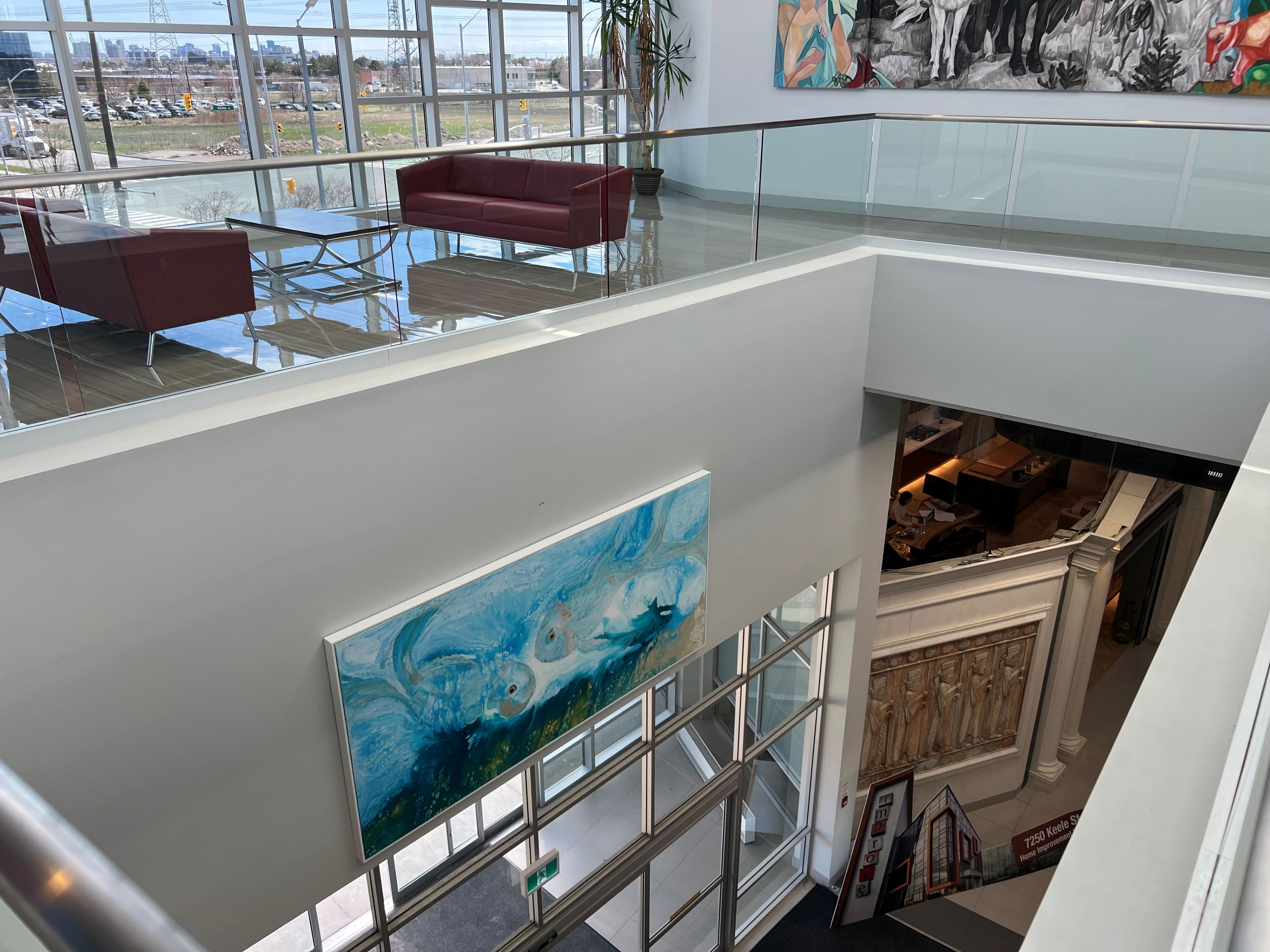 Premium 450 sq ft private office located within the highly sought-after improve centre at keele and highway 407. This secure office with 12' ceilings is one of only four private suites sharing a common entrance with coded security. Flooded with natural light, the ultra-modern space features designer cabinetry, elegant drapery, and premium lighting. Ideal for professional offices, design studios, or home renovation showrooms. Steps from highway 407, public transit, subway, retail, and restaurants. 24-hour building access with ample parking.