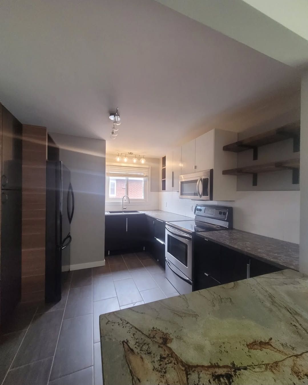 • Modern kitchens with updated countertops and seating space.