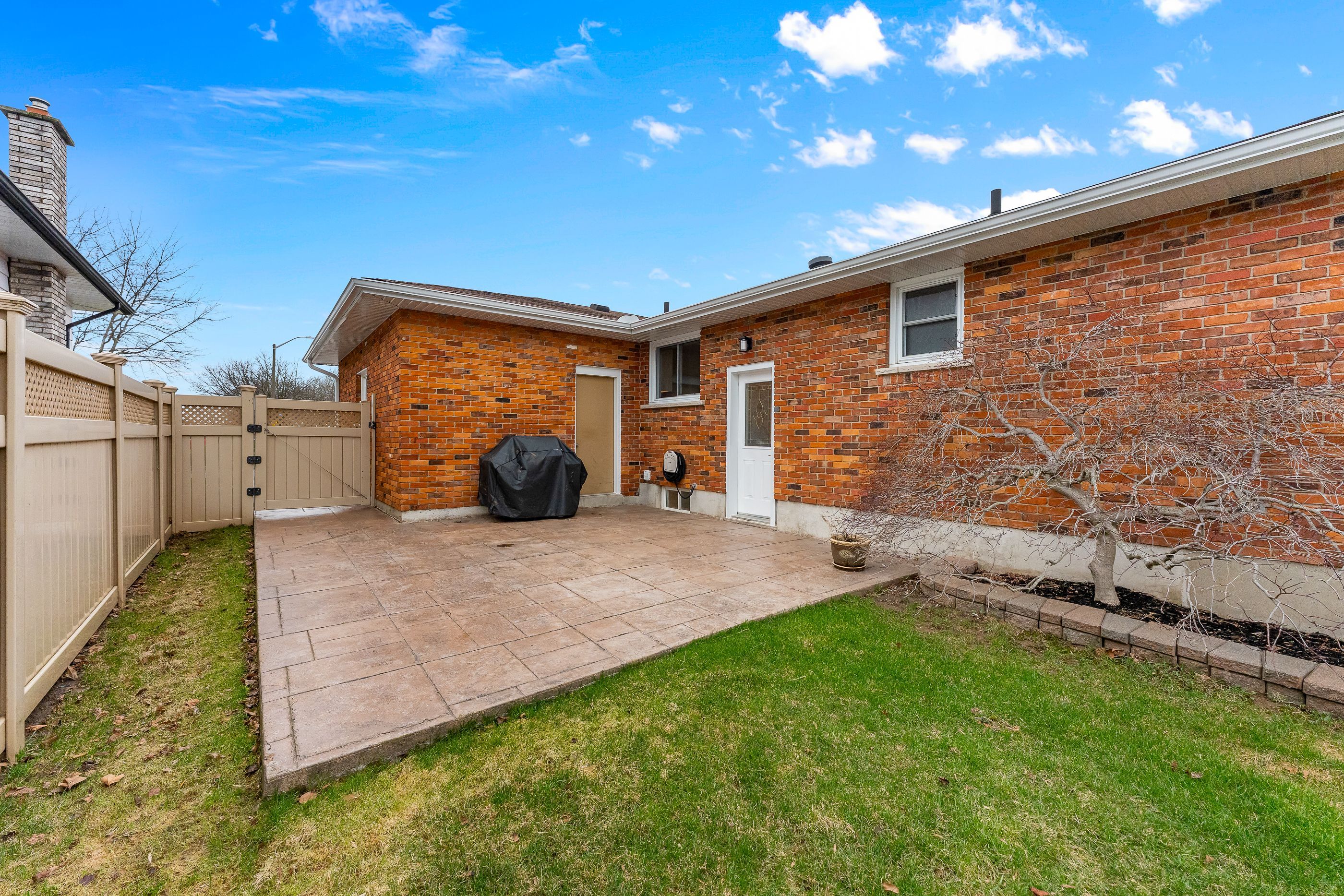 • Fenced backyard with private patio, great for relaxing or entertaining.