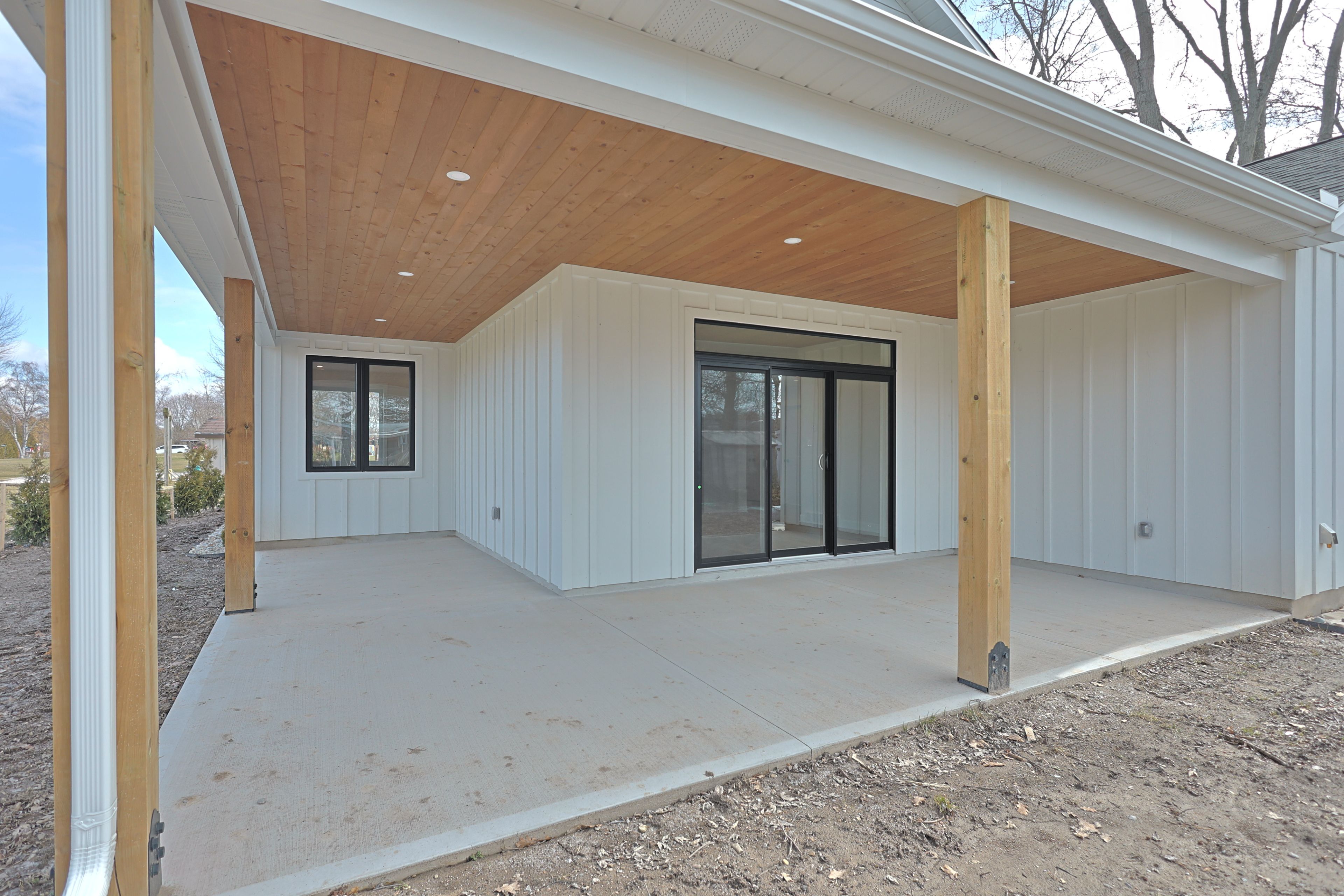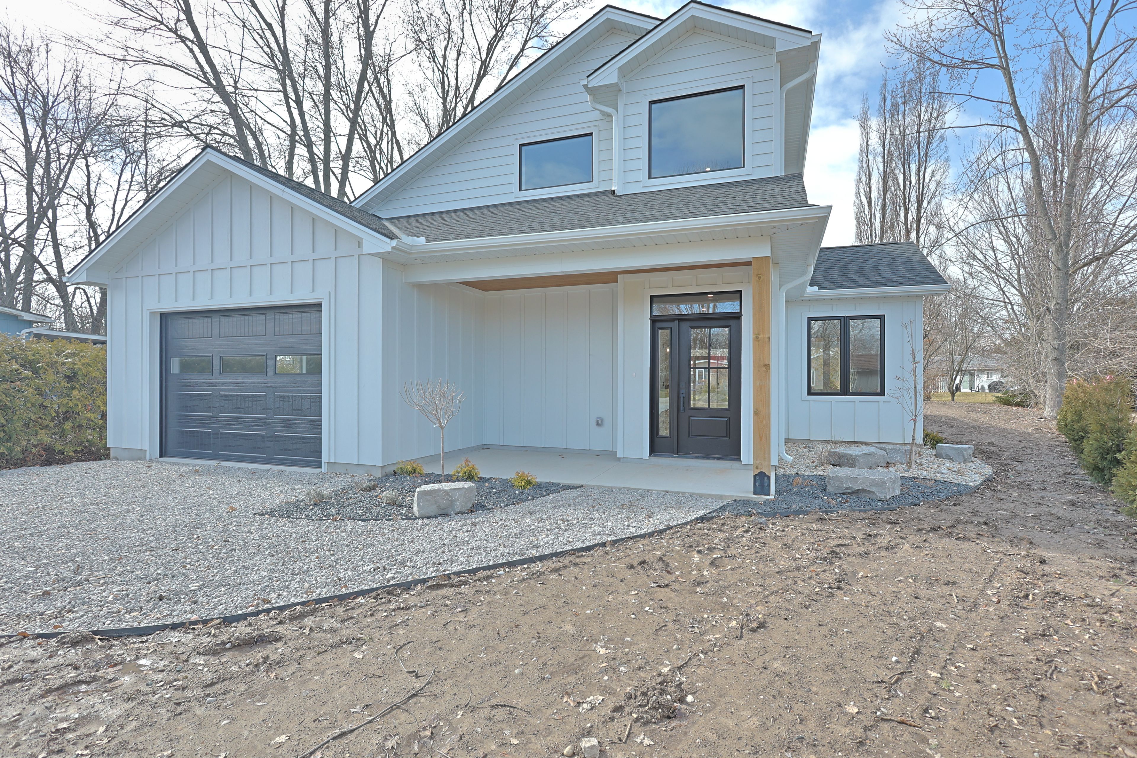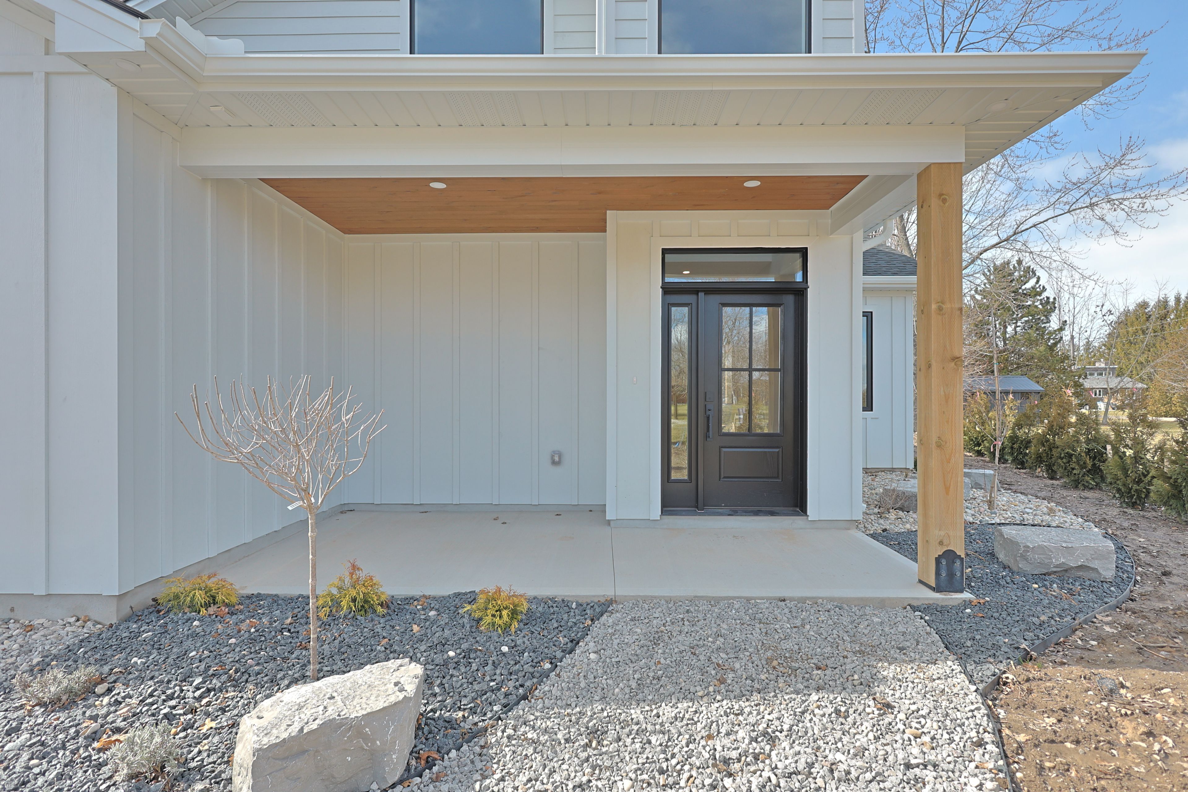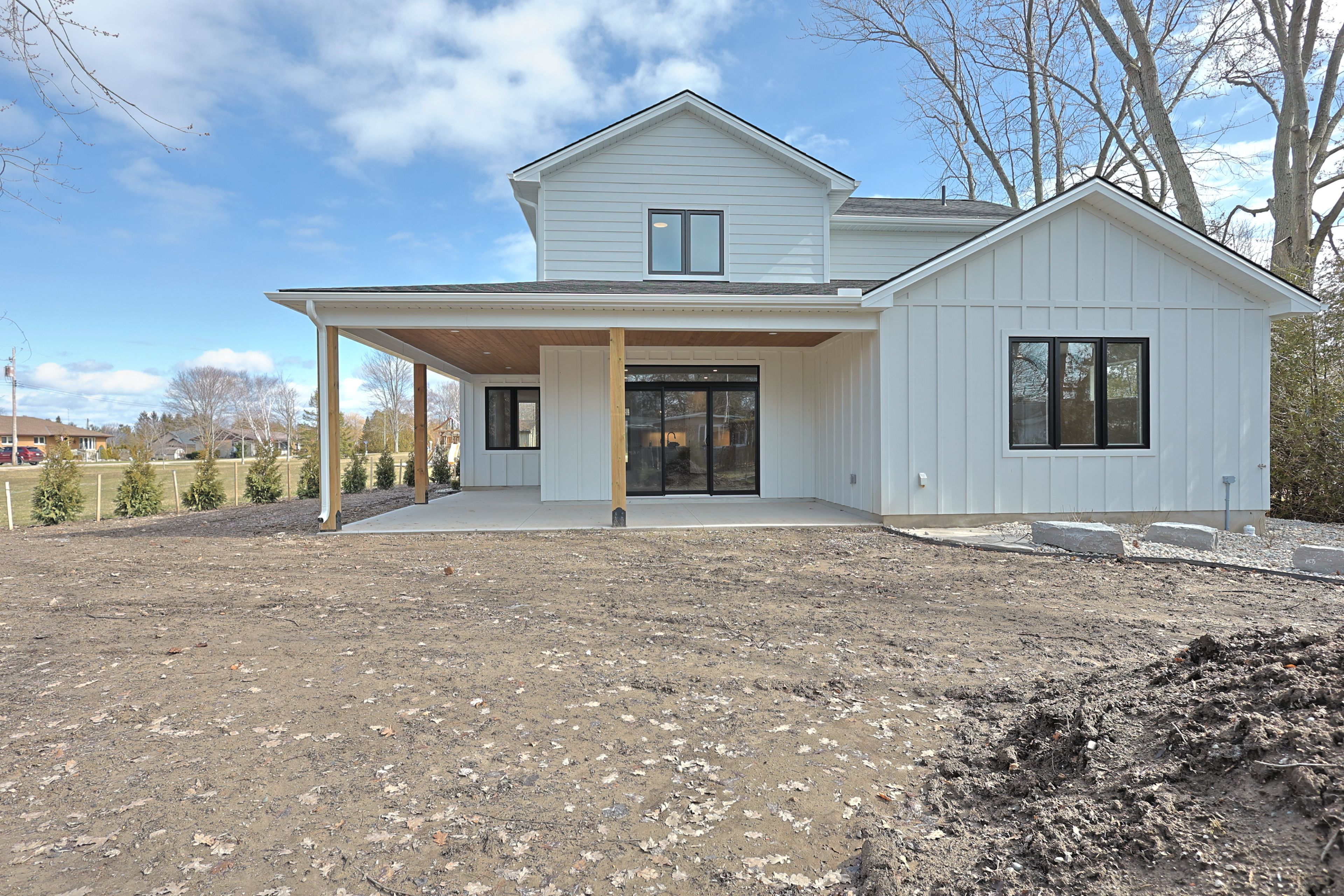 Are you searching for a lakeside property but nothing checks all the boxes? Take a look at this new build home by steeper construction. Just steps to the beach, new construction, tarion warranty, modern finishes, open concept design, covered front and back patio, low maintenance exterior and attached oversized garage. Located just north of grand bend at bayview subdivision this home is just steps to lake huron, the community playground and only 800 meters to the white squirrel golf course. The exterior features hardie board siding with a board and batten finish on the main level complimented with horizontal siding on the upper level. Covered front entry with sitting area and a gravel walkway with landscaped gardens welcomes you to the property. Inside, the main floor features an open concept design with pot lighting, luxury vinyl plank flooring and a floor plan flowing with natural light. Two level foyer provides an entrance area that feels spacious. The kitchen features custom maple cabinetry with quartz countertops, island with contrasting wood finish and corner pantry. Spacious eating areas allows lots of room for friends and family to gather. Living room includes a gas insert fireplace on a white ship lap feature wall with patio doors leading to the covered patio. Main floor primary bedroom suite with walk in closet and access to the main floor bathroom, complete with tile shower walls and quartz countertops. Mudroom off the garage entrance with built in cubbies for organized storage above the bench seating for convenience. Bonus main floor laundry in the utility room with forced air gas furnace, on demand hot water heater and central air. Additional living space on the second level with a large family room, two additional bedrooms for guests or the kids and a full bathroom. Enjoy the back yard space of the large lot, gas hookup so the bbq is always ready to go and entertaining on the large covered concrete patio complete with wood ceiling and pot lighting.