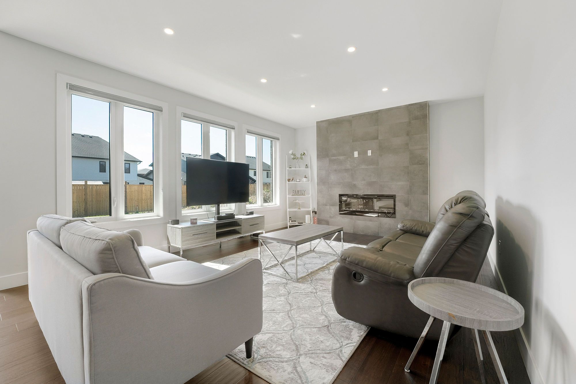 Welcome to the sought after silverleaf estates. The camden model built by luxurious birchwood. With more than 3000 sq ft of luxury living space. Sitting on a prime lot with a lot of potential for those outdoor lovers, hardwood flooring, beautiful lighting, granite countertops, kitchen backsplash with full set of stainless appliances. Open concept style, with modern looking accent wall in the bright living area with elegant fireplace and lots of windows. Home office in the main level. Upstairs features 4 large bedrooms each with an ensuite or jack and jill bathroom including a luxurious master retreat. Large master bedroom features huge walk-in closet and stunning ensuite with upgraded fixtures. Close to the highway and many amenities including, shopping, restaurants, community center, schools, parks and nature trails.