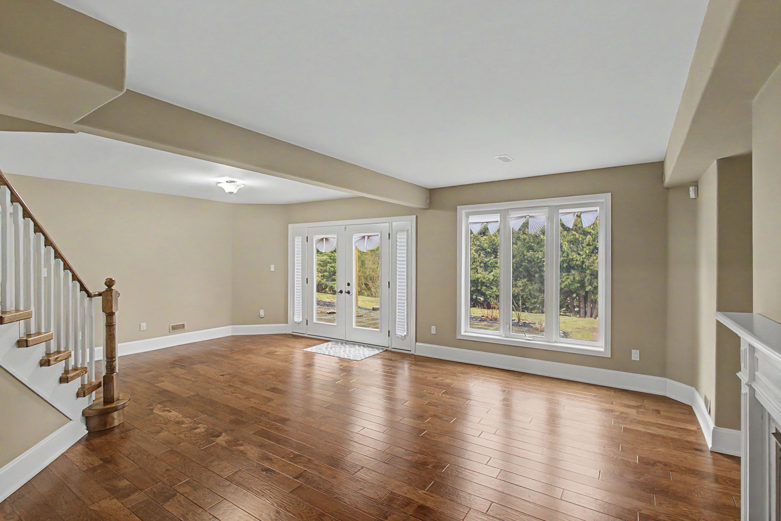 • Lower level includes two bedrooms, recreation room, and outdoor patio access.