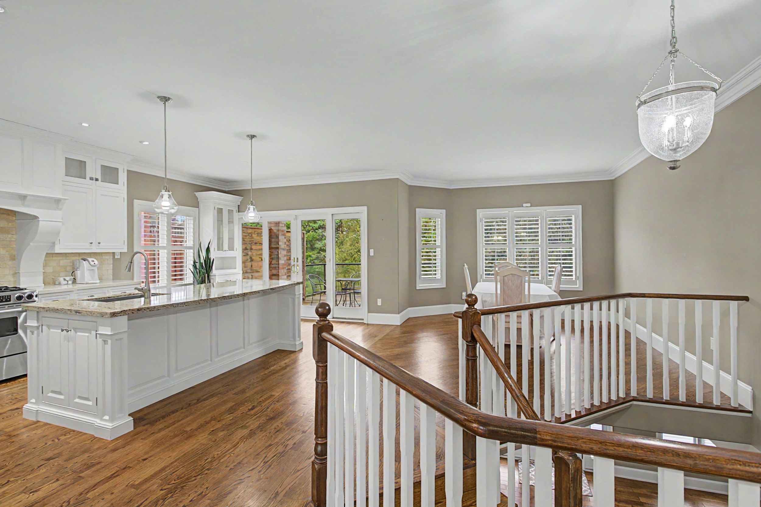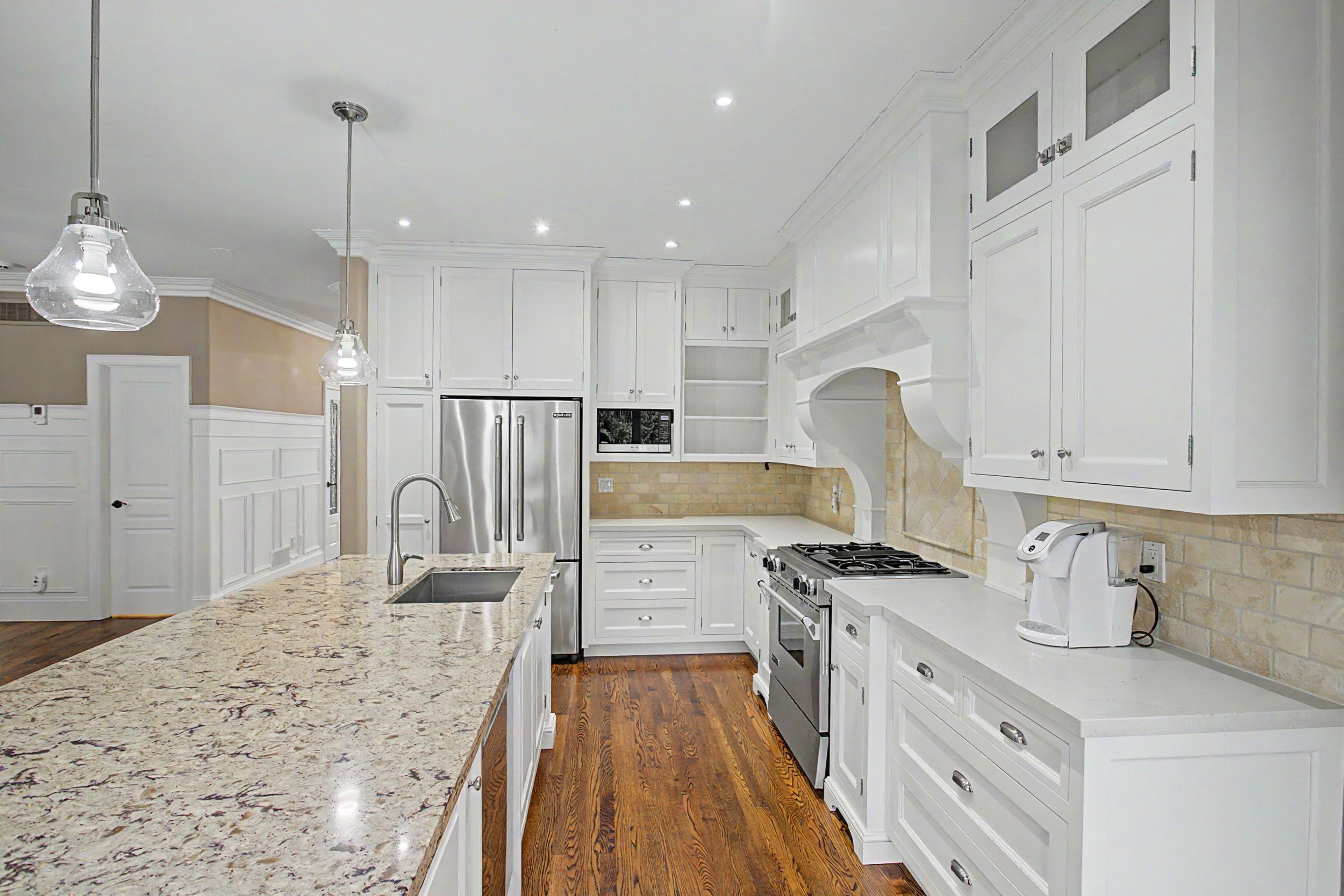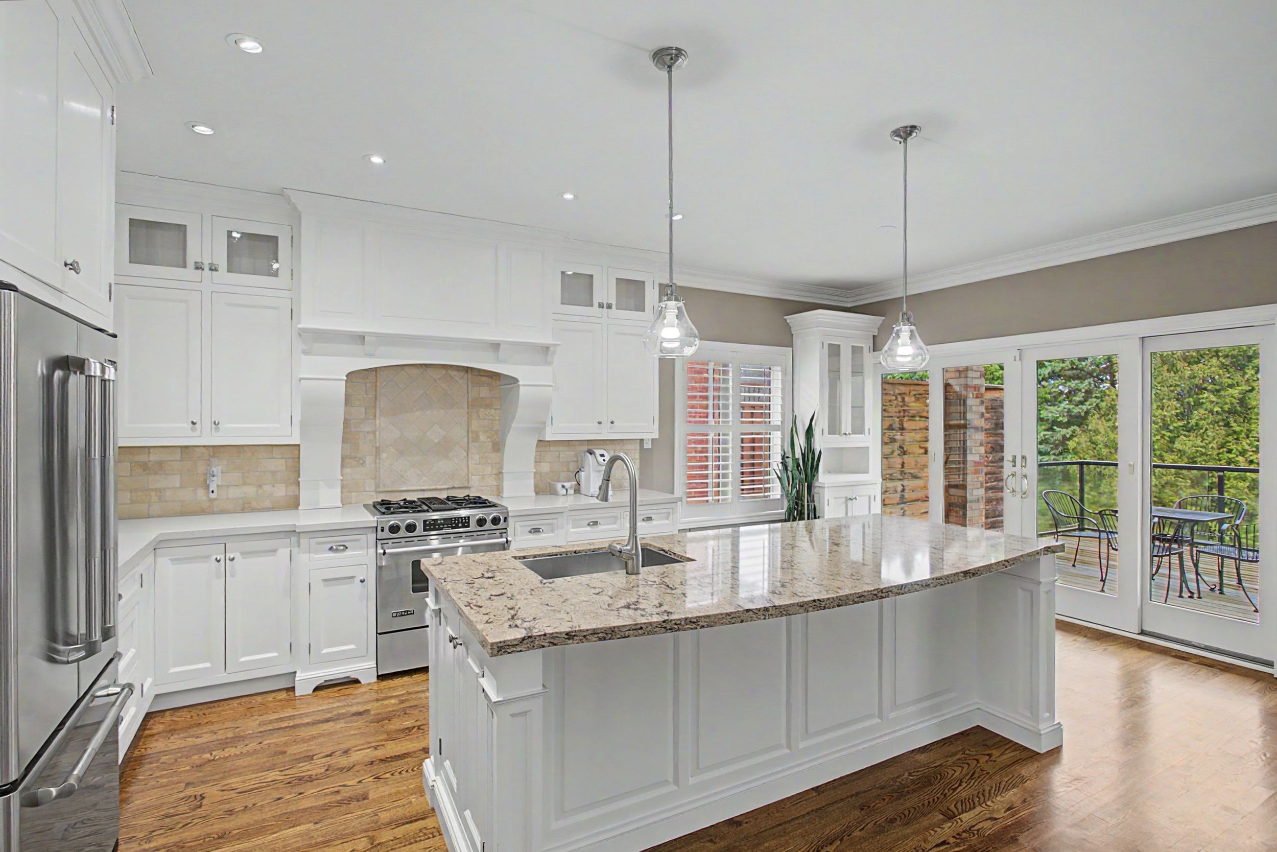 • Custom kitchen with high-end appliances and large center island.