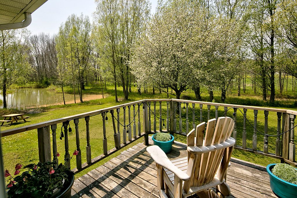 • Private retreat on 2.97 acres with a tranquil pond and two decks.
