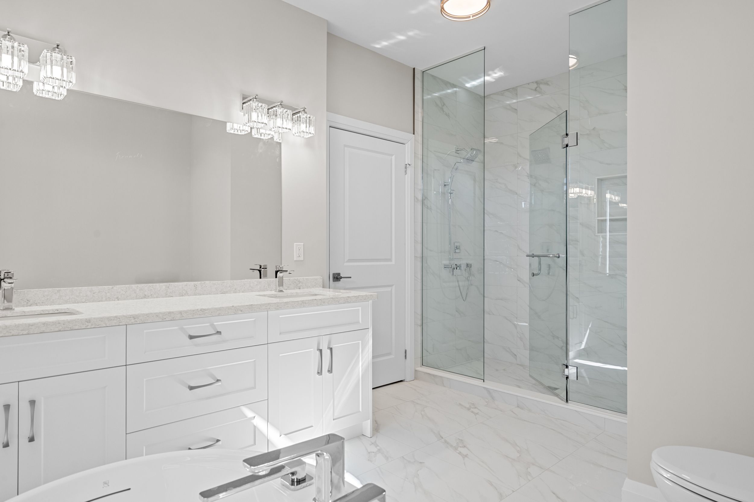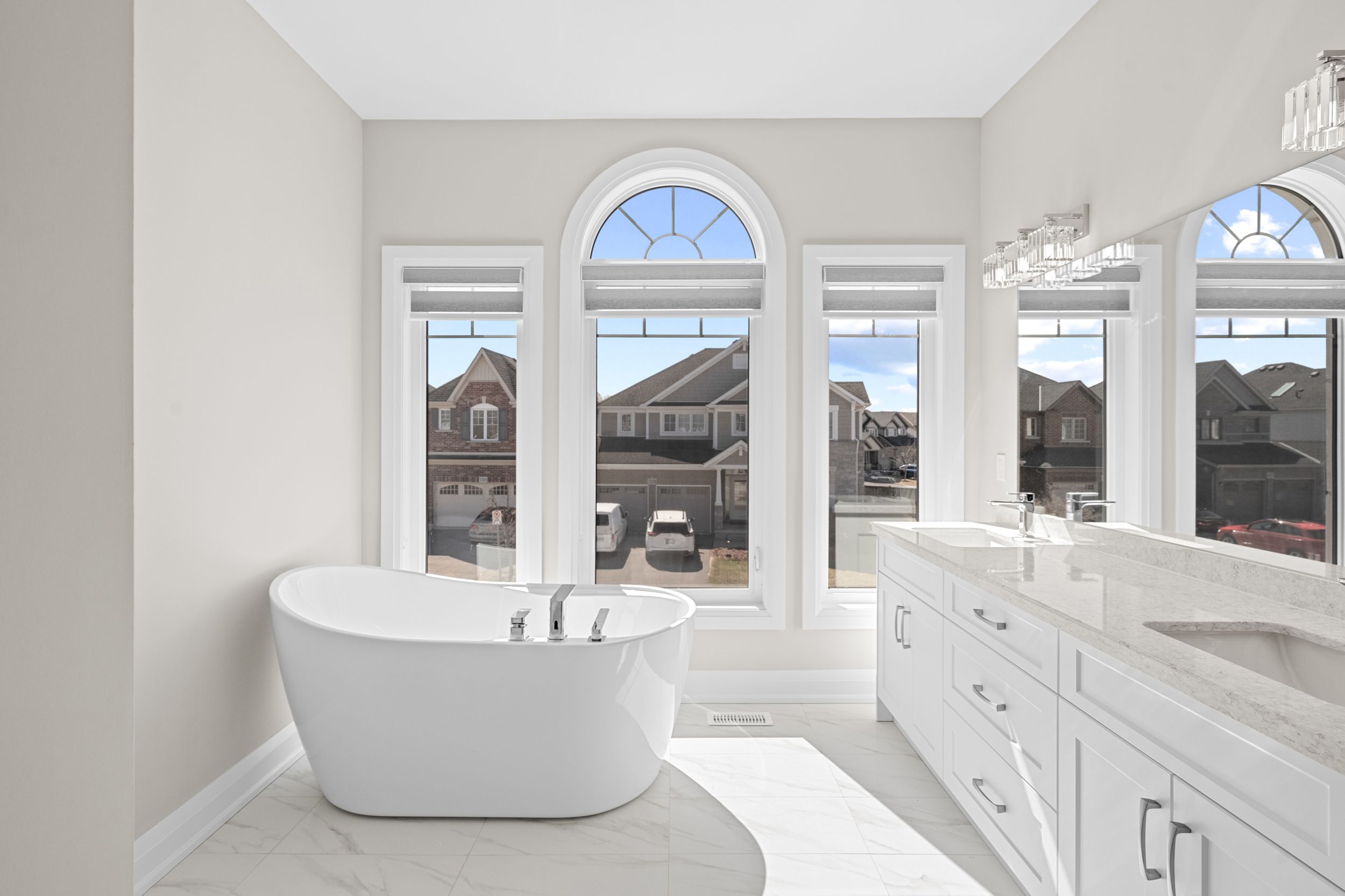 • High-end finishes include quartz counters, smooth ceilings, and premium flooring.