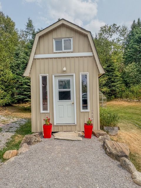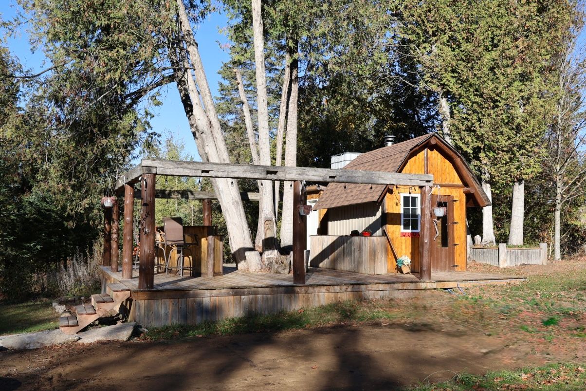 • Charming bunkie for guests or creative space, plus spacious garage for storage.
