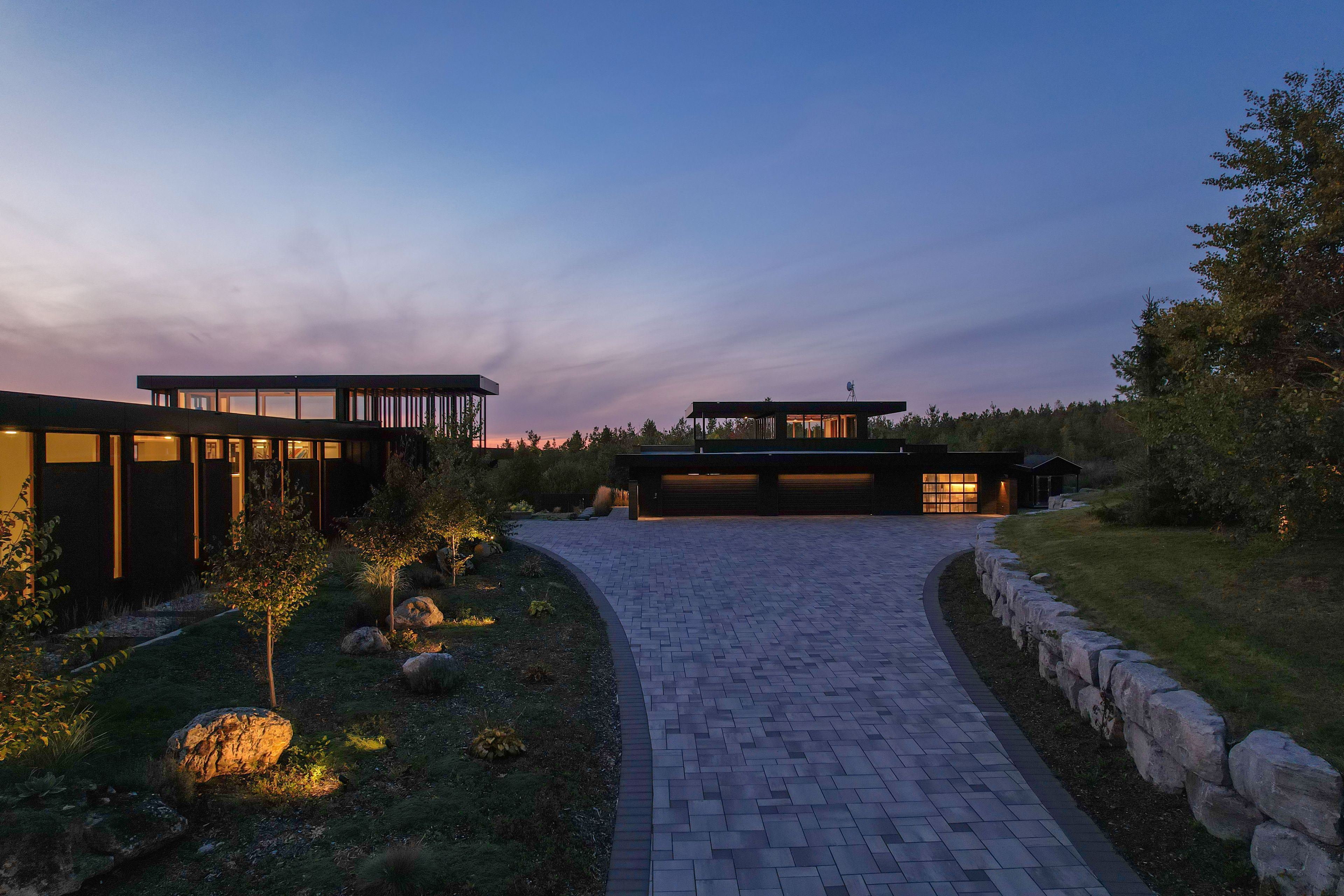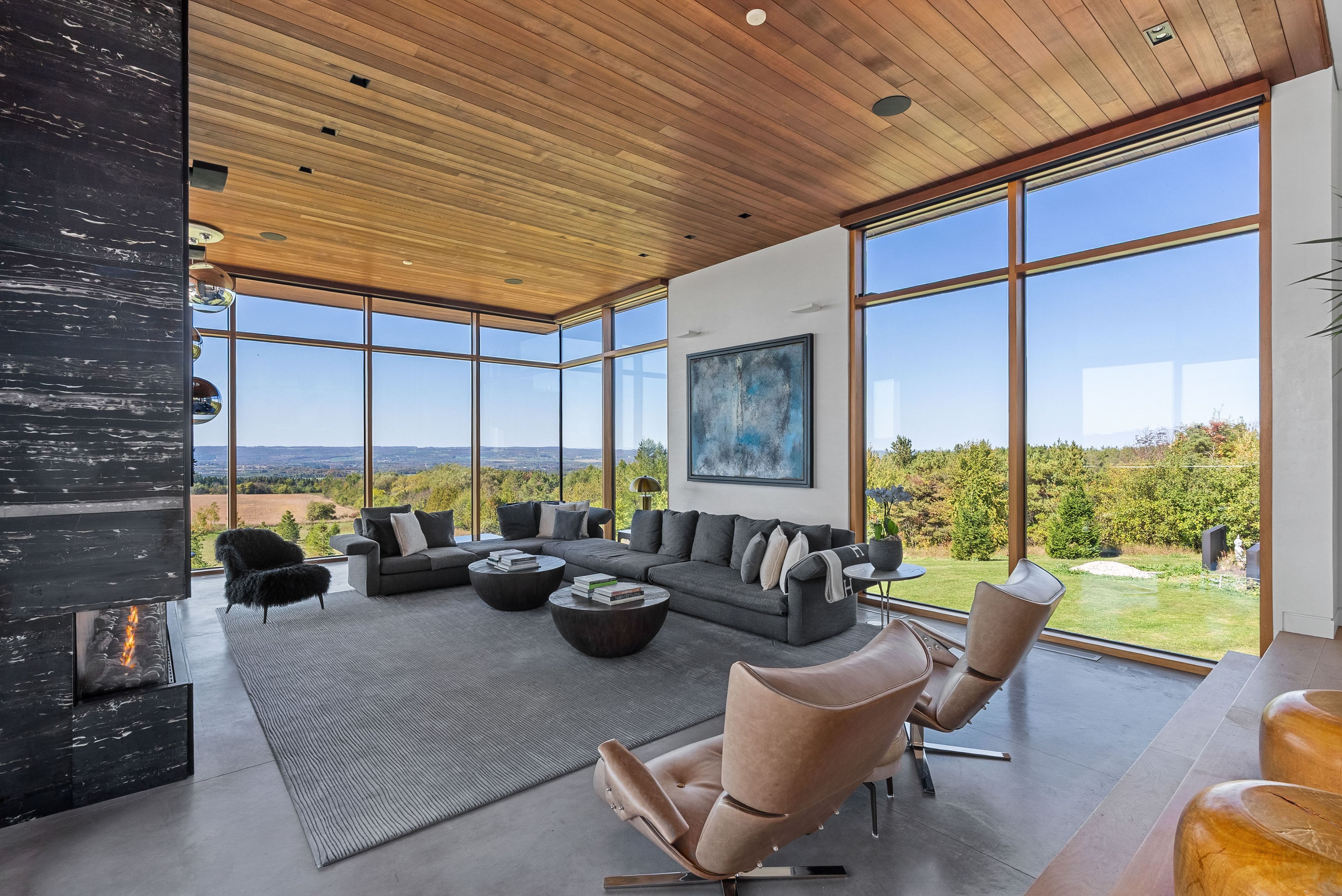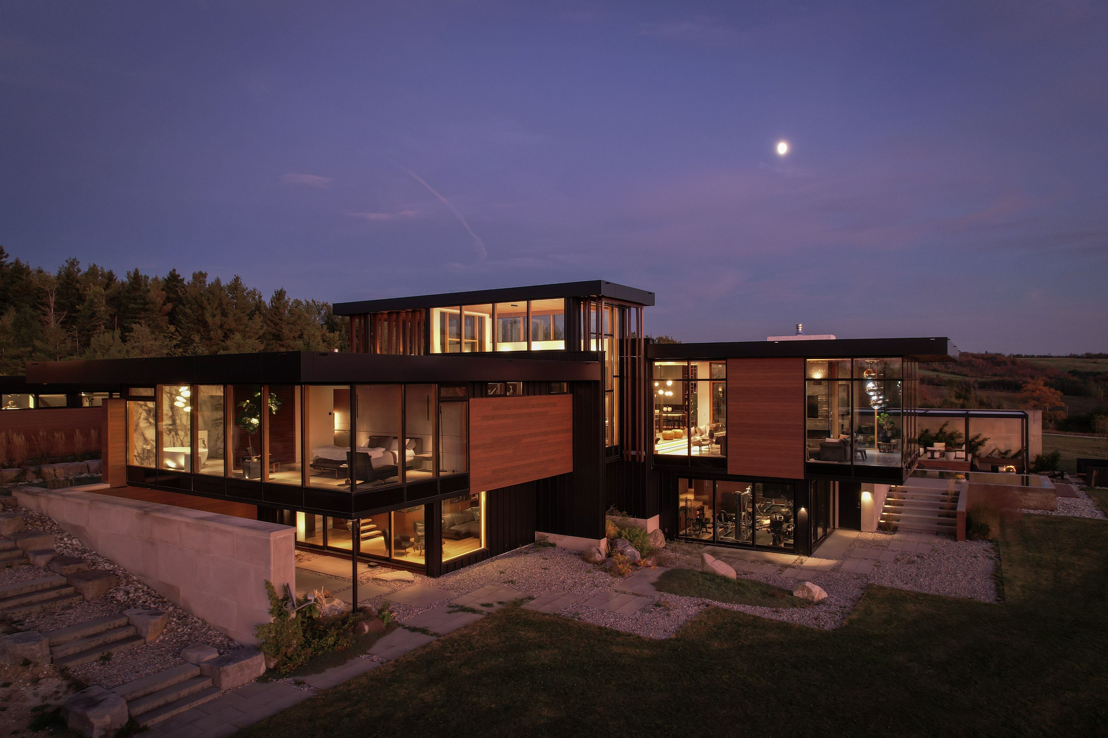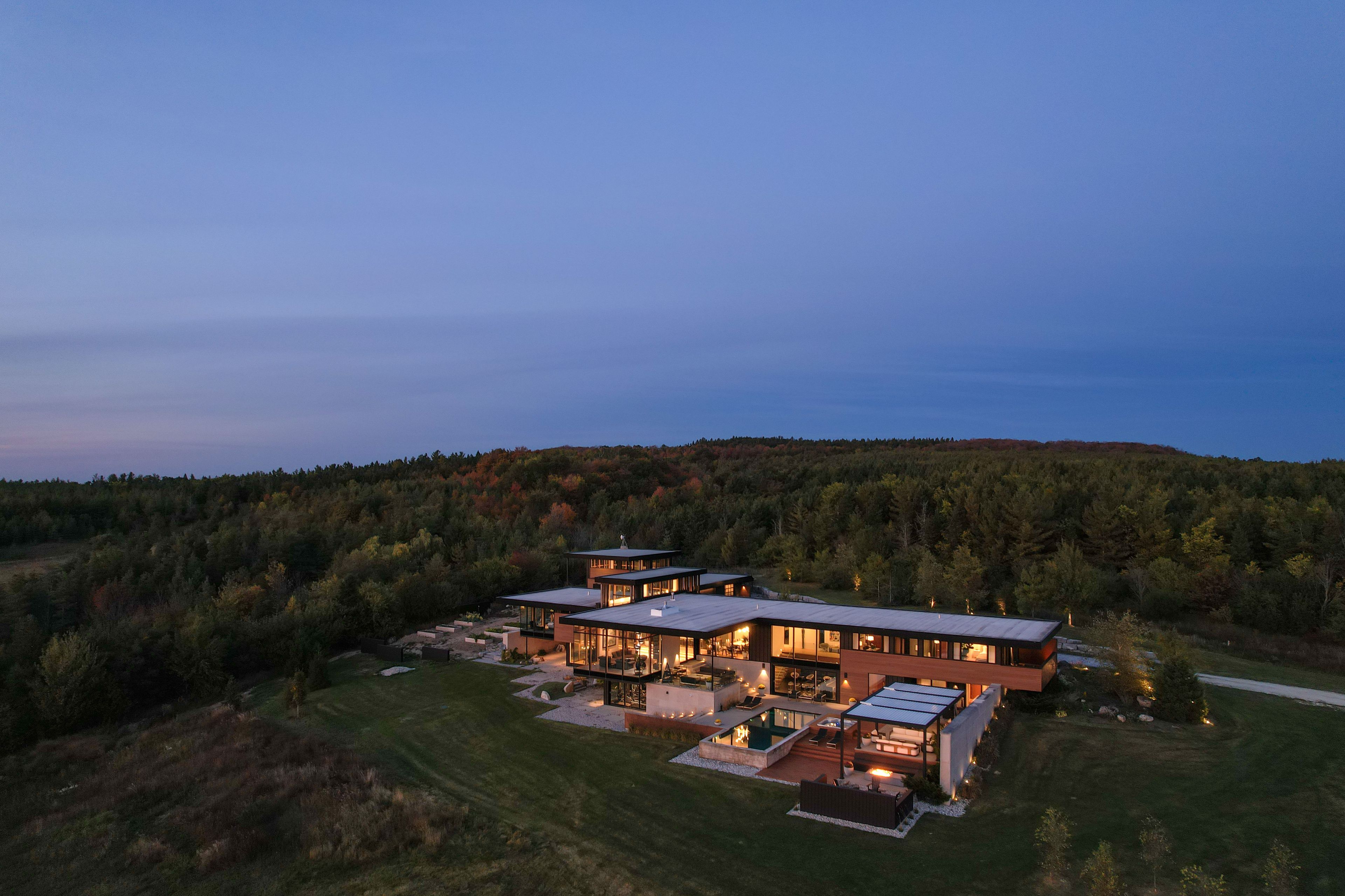 Majestically positioned upon eighty pristine acres within clarksburg's most distinguished countryside enclave, this frank lloyd wright-inspired architectural tour de force represents the pinnacle of luxury residential design. Approached through monitored gates and a winding driveway, this extraordinary five-bedroom, seven-bathroom estate exemplifies uncompromising craftsmanship, where the masterful fusion of corten steel, cedar, and metallic exterior elements creates a striking modern silhouette set against a magnificent natural backdrop, enhanced by dramatic landscape lighting that elevates the estate's grandeur through twilight hours. The palatial interior reveals soaring eighteen-foot ceilings and resplendent marble floors, culminating in an open-concept masterpiece with polished concrete flooring and 12. 5 ft. Floor-to-ceiling windows framing the serene landscape. The varenna poliform kitchen impresses with a 20. 5 ft. Island, sub-zero and wolf appliances, 11 ft. Ceilings, and bespoke walnut cabinetry that flows with architectural harmony throughout. The lavish two-storey primary suite offers polished plaster walls, custom walnut built-ins, a marble ensuite with chronotherapy rain shower, and a private retreat lounge. Additional bedrooms include terraces or balconies, with two guest suites offering luxurious ensuites-one serving as a secondary primary with service bar. Entertainment abounds with a professional theatre, custom gym, and stunning two-storey lounge bar overlooking a 22 ft. Infinity pool. A heated five-car garage and radiant flooring ensure year-round comfort. A separate two-storey guest house includes a full kitchen, loft bedroom, and soaring ceilings. A pristine barn provides premium equestrian facilities. Landscaped grounds feature a fire pit, hot tub, and pergola, all enhanced by elegant lighting. With loree forest nearby and a generac generator, this estate blends architectural brilliance with modern sophistication.