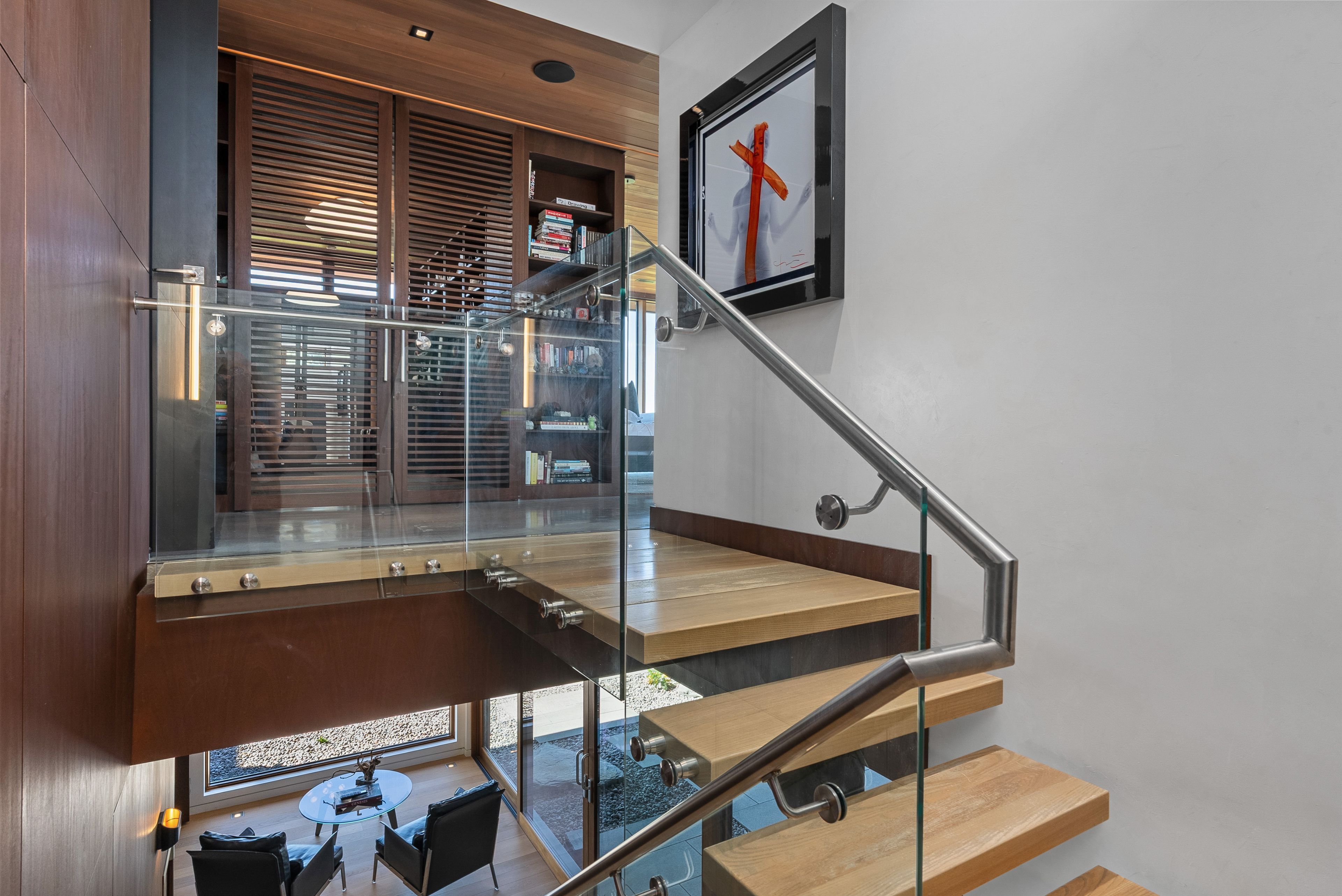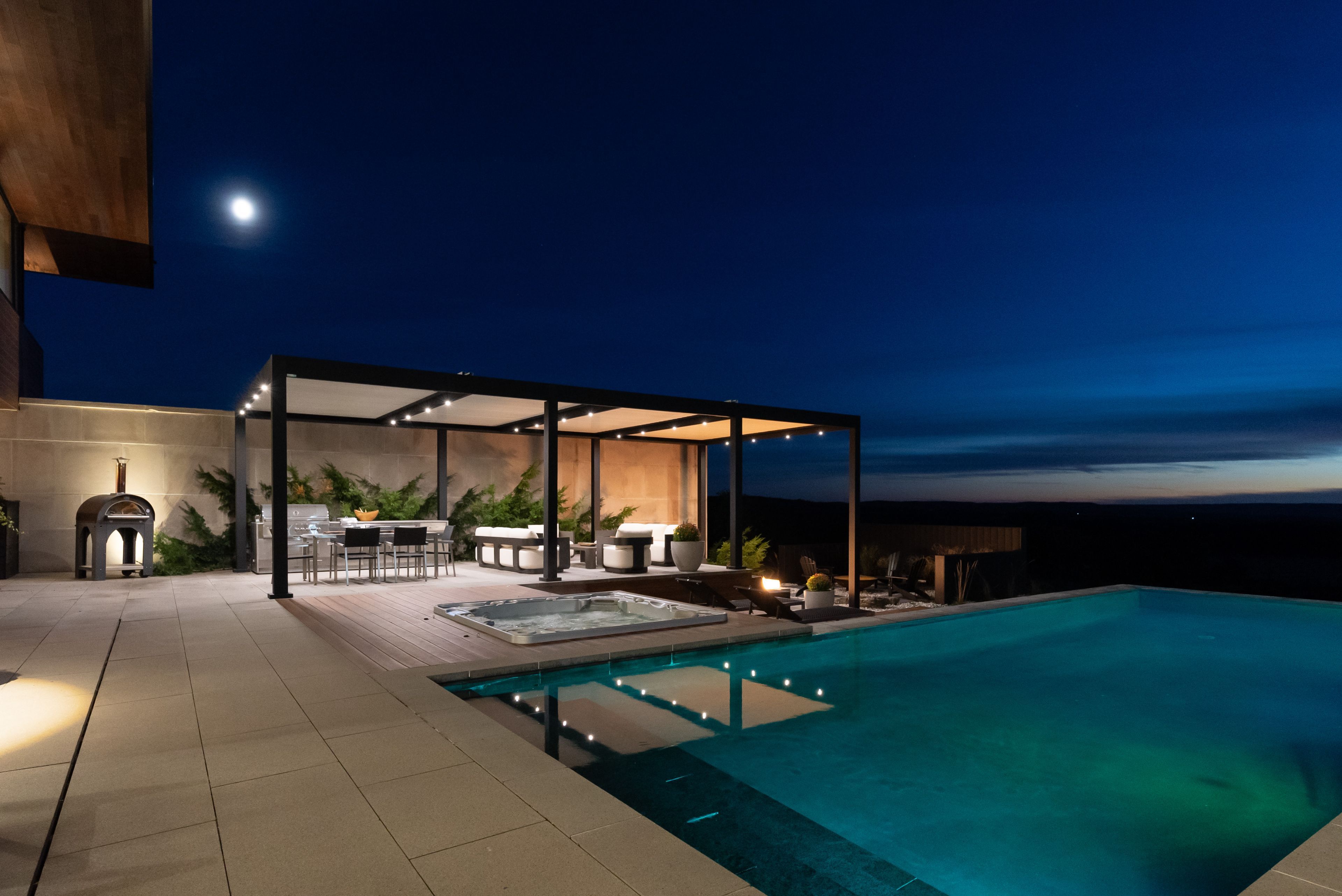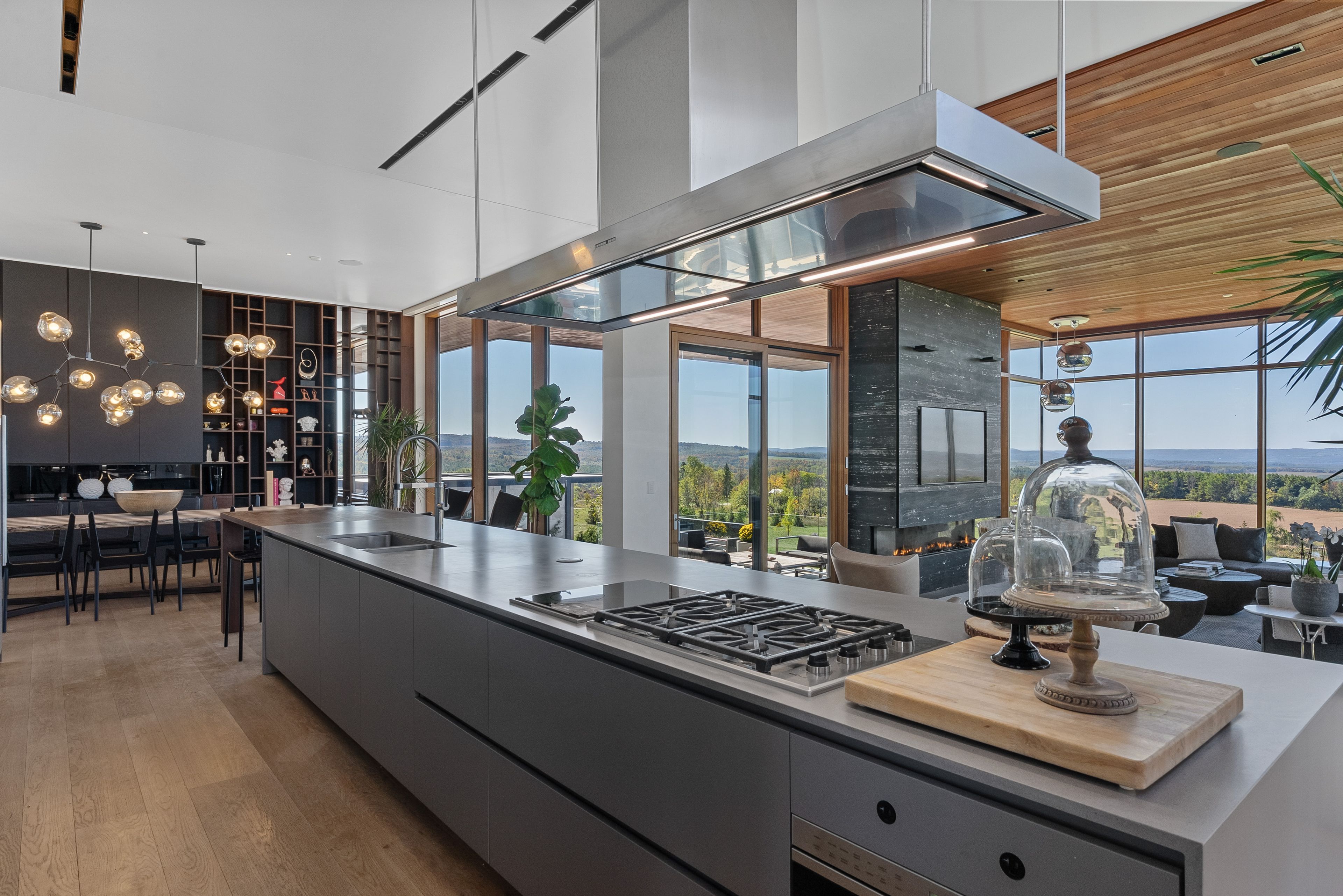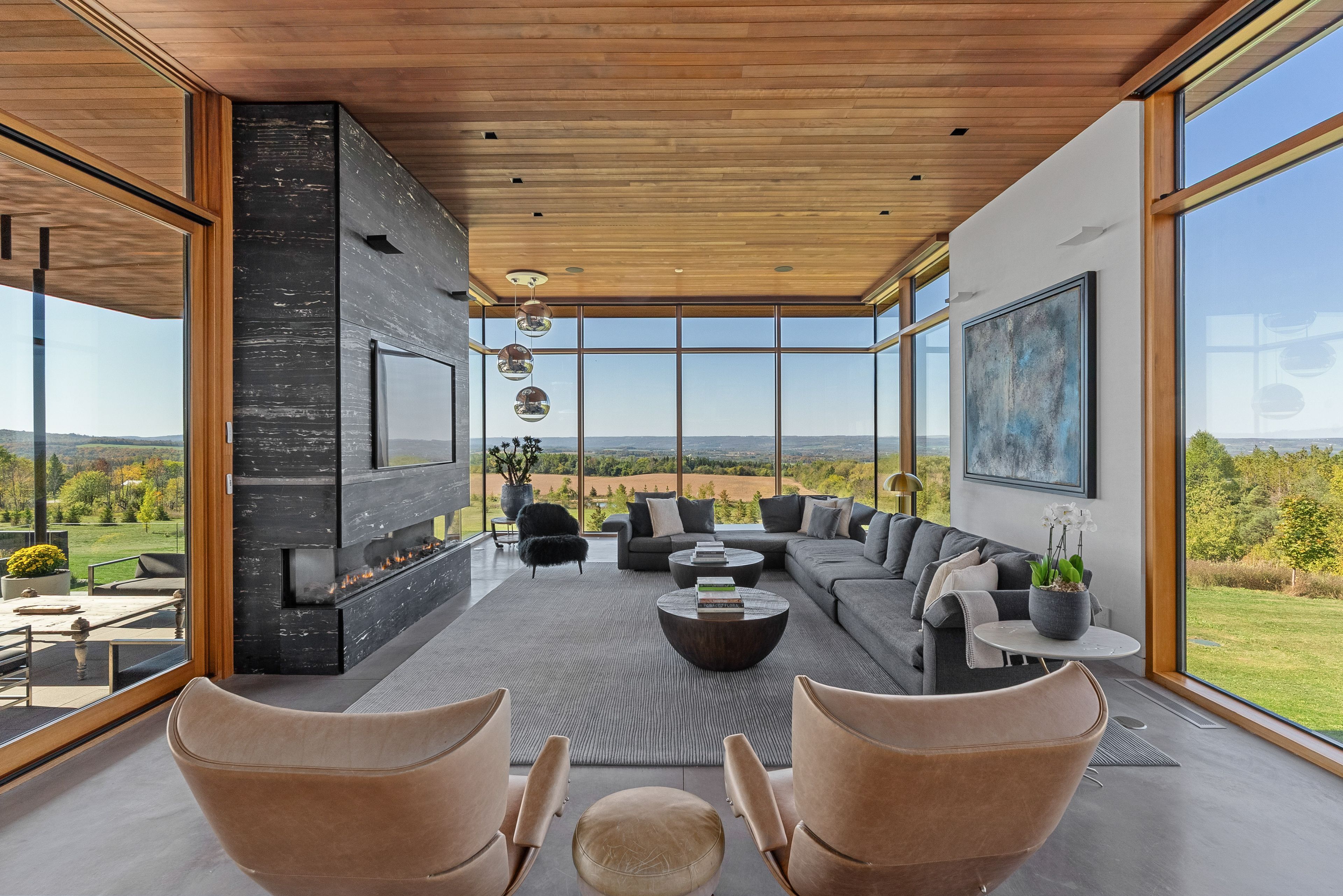 Majestically positioned upon eighty pristine acres within clarksburg's most distinguished countryside enclave, this frank lloyd wright-inspired architectural tour de force represents the pinnacle of luxury residential design. Approached through monitored gates and a winding driveway, this extraordinary five-bedroom, seven-bathroom estate exemplifies uncompromising craftsmanship, where the masterful fusion of corten steel, cedar, and metallic exterior elements creates a striking modern silhouette set against a magnificent natural backdrop, enhanced by dramatic landscape lighting that elevates the estate's grandeur through twilight hours. The palatial interior reveals soaring eighteen-foot ceilings and resplendent marble floors, culminating in an open-concept masterpiece with polished concrete flooring and 12. 5 ft. Floor-to-ceiling windows framing the serene landscape. The varenna poliform kitchen impresses with a 20. 5 ft. Island, sub-zero and wolf appliances, 11 ft. Ceilings, and bespoke walnut cabinetry that flows with architectural harmony throughout. The lavish two-storey primary suite offers polished plaster walls, custom walnut built-ins, a marble ensuite with chronotherapy rain shower, and a private retreat lounge. Additional bedrooms include terraces or balconies, with two guest suites offering luxurious ensuites-one serving as a secondary primary with service bar. Entertainment abounds with a professional theatre, custom gym, and stunning two-storey lounge bar overlooking a 22 ft. Infinity pool. A heated five-car garage and radiant flooring ensure year-round comfort. A separate two-storey guest house includes a full kitchen, loft bedroom, and soaring ceilings. A pristine barn provides premium equestrian facilities. Landscaped grounds feature a fire pit, hot tub, and pergola, all enhanced by elegant lighting. With loree forest nearby and a generac generator, this estate blends architectural brilliance with modern sophistication.