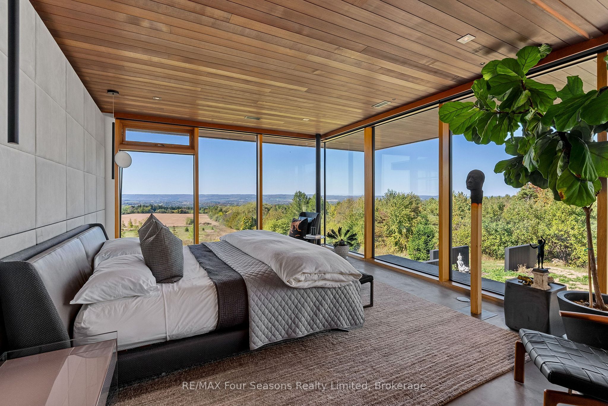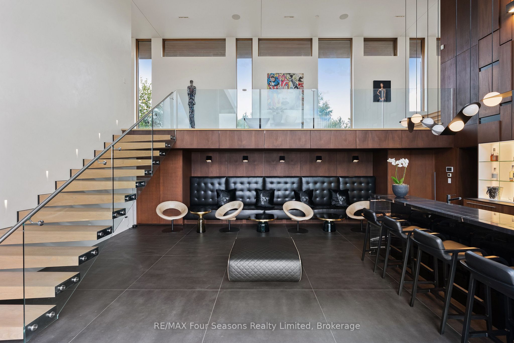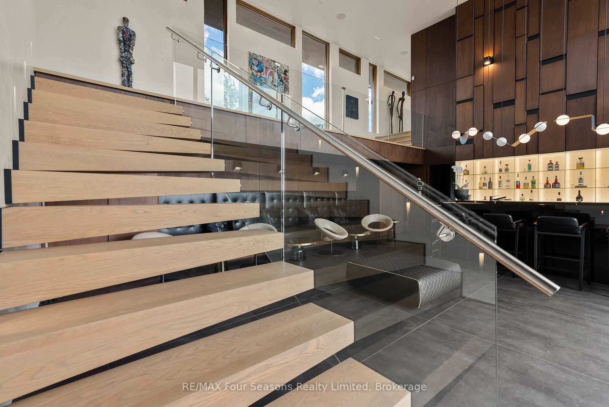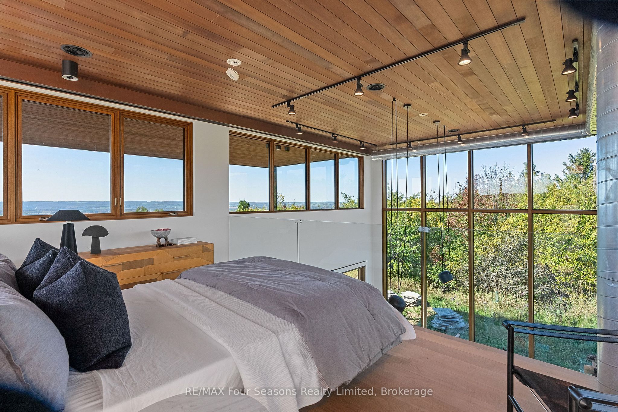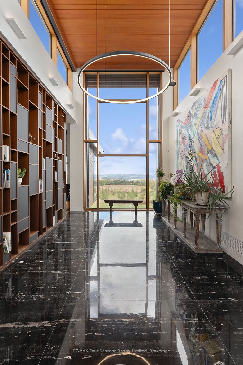 Majestically positioned upon eighty pristine acres within clarksburg's most distinguished countryside enclave, this frank lloyd wright-inspired architectural tour de force represents the pinnacle of luxury residential design. Approached through monitored gates and a winding driveway, this extraordinary five-bedroom, seven-bathroom estate exemplifies uncompromising craftsmanship, where the masterful fusion of corten steel, cedar, and metallic exterior elements creates a striking modern silhouette set against a magnificent natural backdrop, enhanced by dramatic landscape lighting that elevates the estate's grandeur through twilight hours. The palatial interior reveals soaring eighteen-foot ceilings and resplendent marble floors, culminating in an open-concept masterpiece with polished concrete flooring and 12. 5 ft. Floor-to-ceiling windows framing the serene landscape. The varenna poliform kitchen impresses with a 20. 5 ft. Island, sub-zero and wolf appliances, 11 ft. Ceilings, and bespoke walnut cabinetry that flows with architectural harmony throughout. The lavish two-storey primary suite offers polished plaster walls, custom walnut built-ins, a marble ensuite with chronotherapy rain shower, and a private retreat lounge. Additional bedrooms include terraces or balconies, with two guest suites offering luxurious ensuites-one serving as a secondary primary with service bar. Entertainment abounds with a professional theatre, custom gym, and stunning two-storey lounge bar overlooking a 22 ft. Infinity pool. A heated five-car garage and radiant flooring ensure year-round comfort. A separate two-storey guest house includes a full kitchen, loft bedroom, and soaring ceilings. A pristine barn provides premium equestrian facilities. Landscaped grounds feature a fire pit, hot tub, and pergola, all enhanced by elegant lighting. With loree forest nearby and a generac generator, this estate blends architectural brilliance with modern sophistication.
