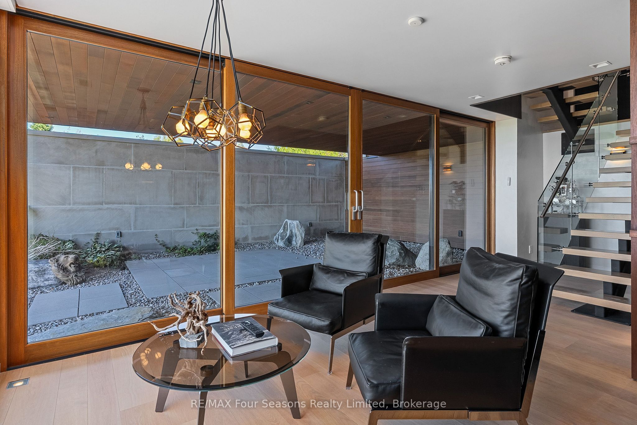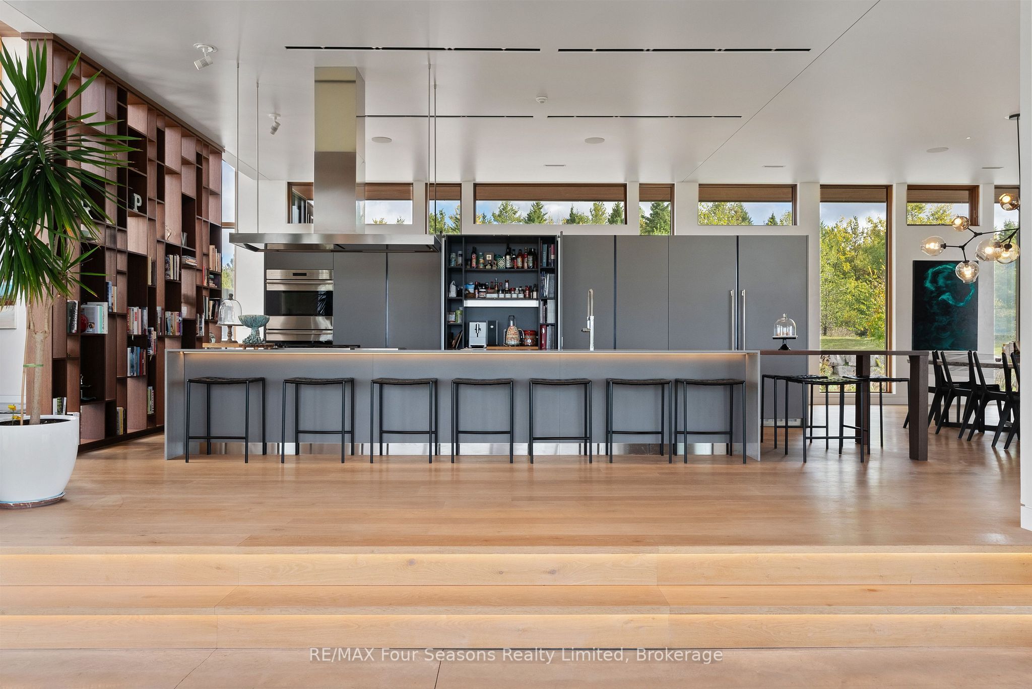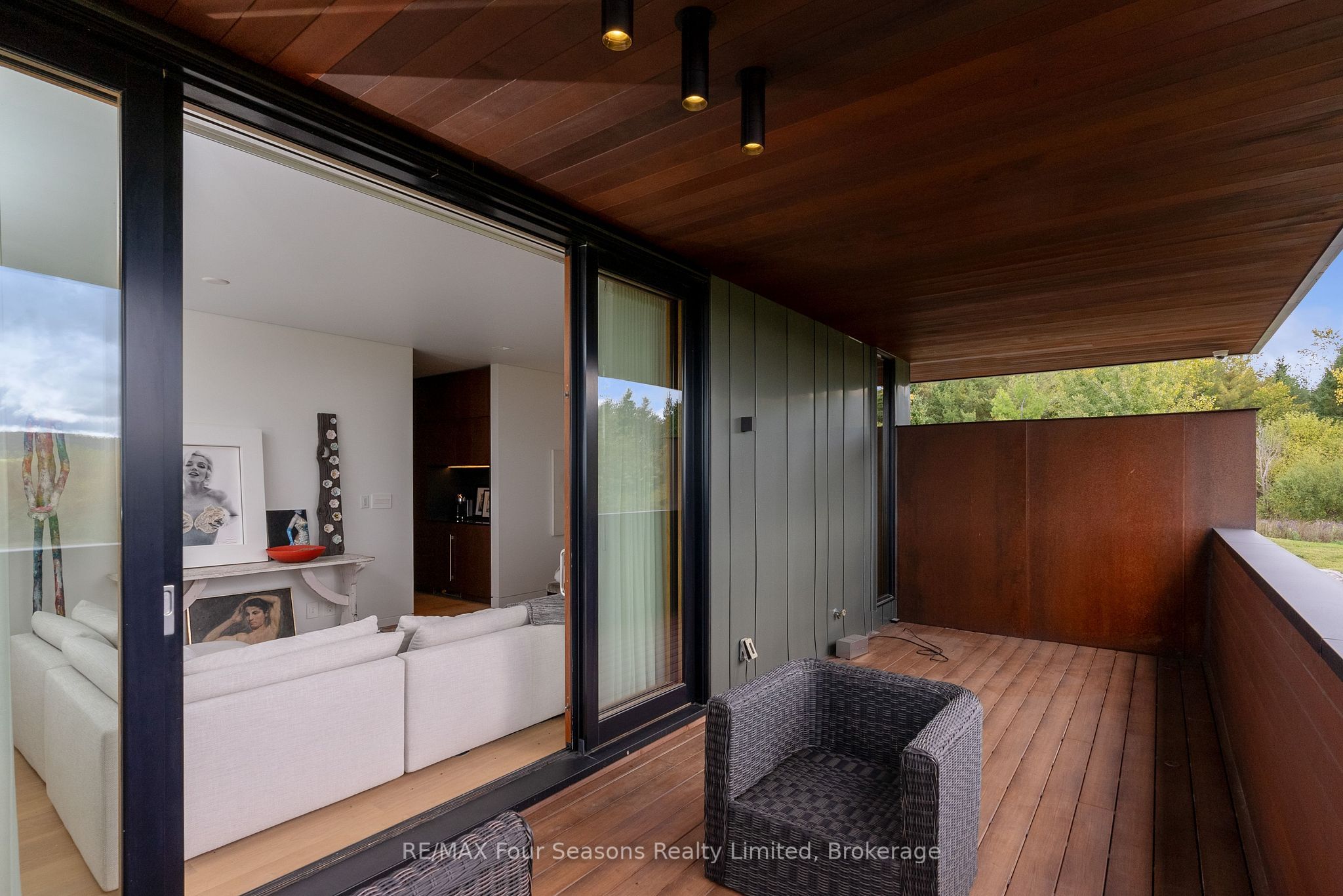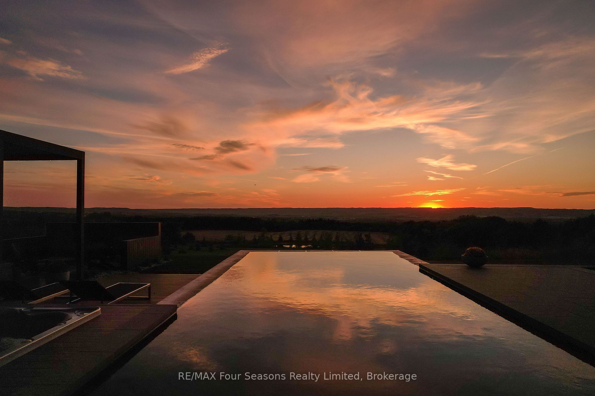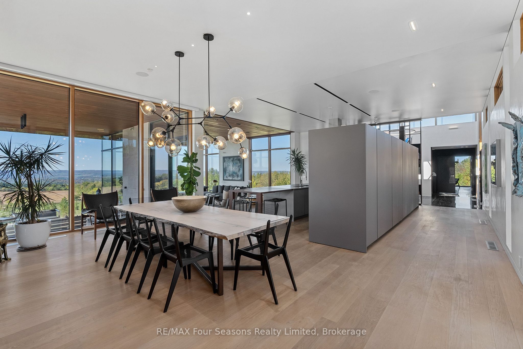 Majestically positioned upon eighty pristine acres within clarksburg's most distinguished countryside enclave, this frank lloyd wright-inspired architectural tour de force represents the pinnacle of luxury residential design. Approached through monitored gates and a winding driveway, this extraordinary five-bedroom, seven-bathroom estate exemplifies uncompromising craftsmanship, where the masterful fusion of corten steel, cedar, and metallic exterior elements creates a striking modern silhouette set against a magnificent natural backdrop, enhanced by dramatic landscape lighting that elevates the estate's grandeur through twilight hours. The palatial interior reveals soaring eighteen-foot ceilings and resplendent marble floors, culminating in an open-concept masterpiece with polished concrete flooring and 12. 5 ft. Floor-to-ceiling windows framing the serene landscape. The varenna poliform kitchen impresses with a 20. 5 ft. Island, sub-zero and wolf appliances, 11 ft. Ceilings, and bespoke walnut cabinetry that flows with architectural harmony throughout. The lavish two-storey primary suite offers polished plaster walls, custom walnut built-ins, a marble ensuite with chronotherapy rain shower, and a private retreat lounge. Additional bedrooms include terraces or balconies, with two guest suites offering luxurious ensuites-one serving as a secondary primary with service bar. Entertainment abounds with a professional theatre, custom gym, and stunning two-storey lounge bar overlooking a 22 ft. Infinity pool. A heated five-car garage and radiant flooring ensure year-round comfort. A separate two-storey guest house includes a full kitchen, loft bedroom, and soaring ceilings. A pristine barn provides premium equestrian facilities. Landscaped grounds feature a fire pit, hot tub, and pergola, all enhanced by elegant lighting. With loree forest nearby and a generac generator, this estate blends architectural brilliance with modern sophistication.