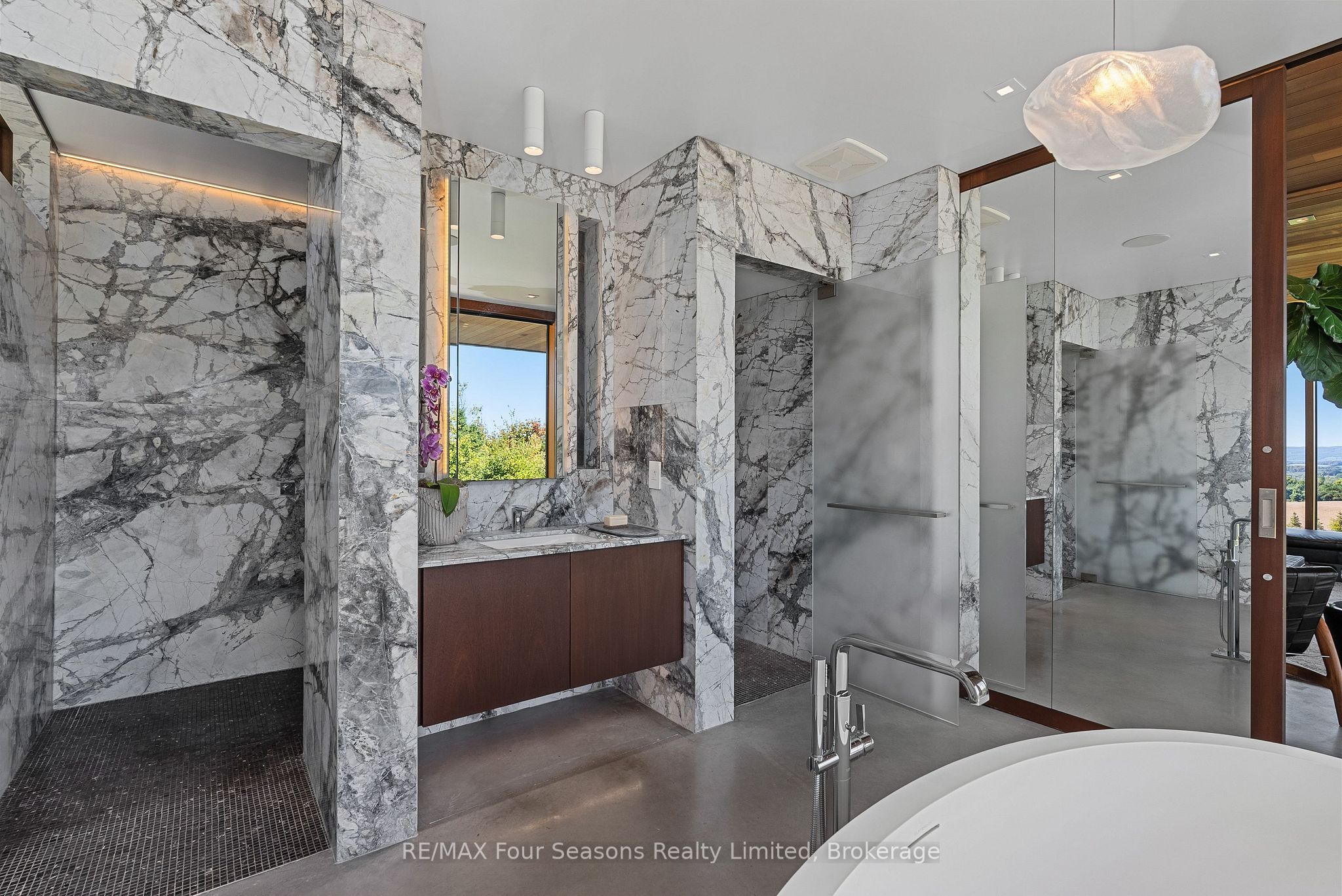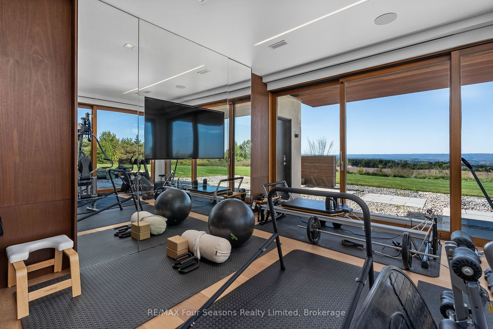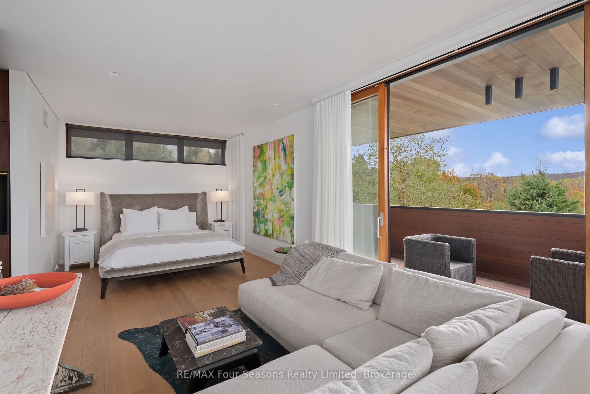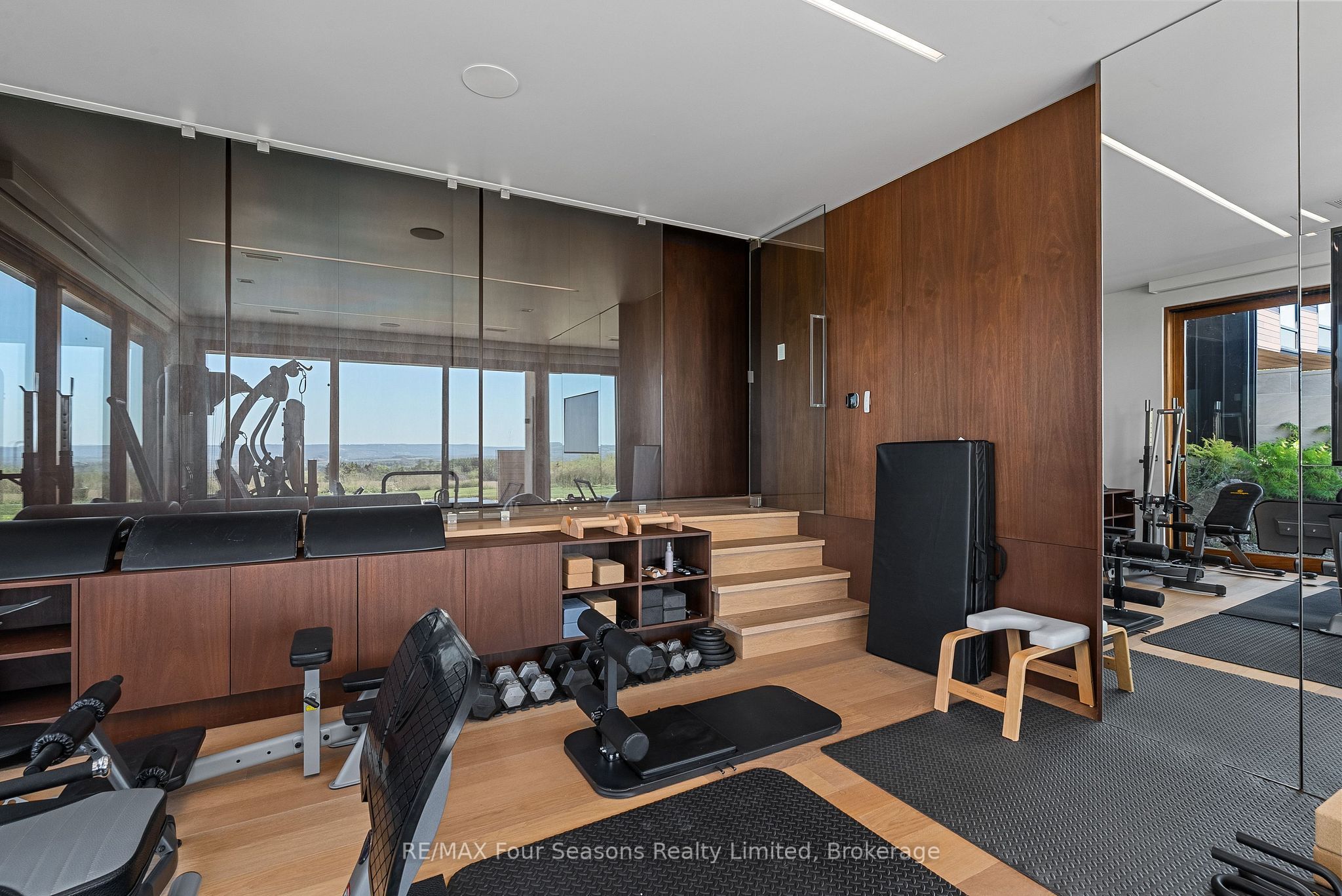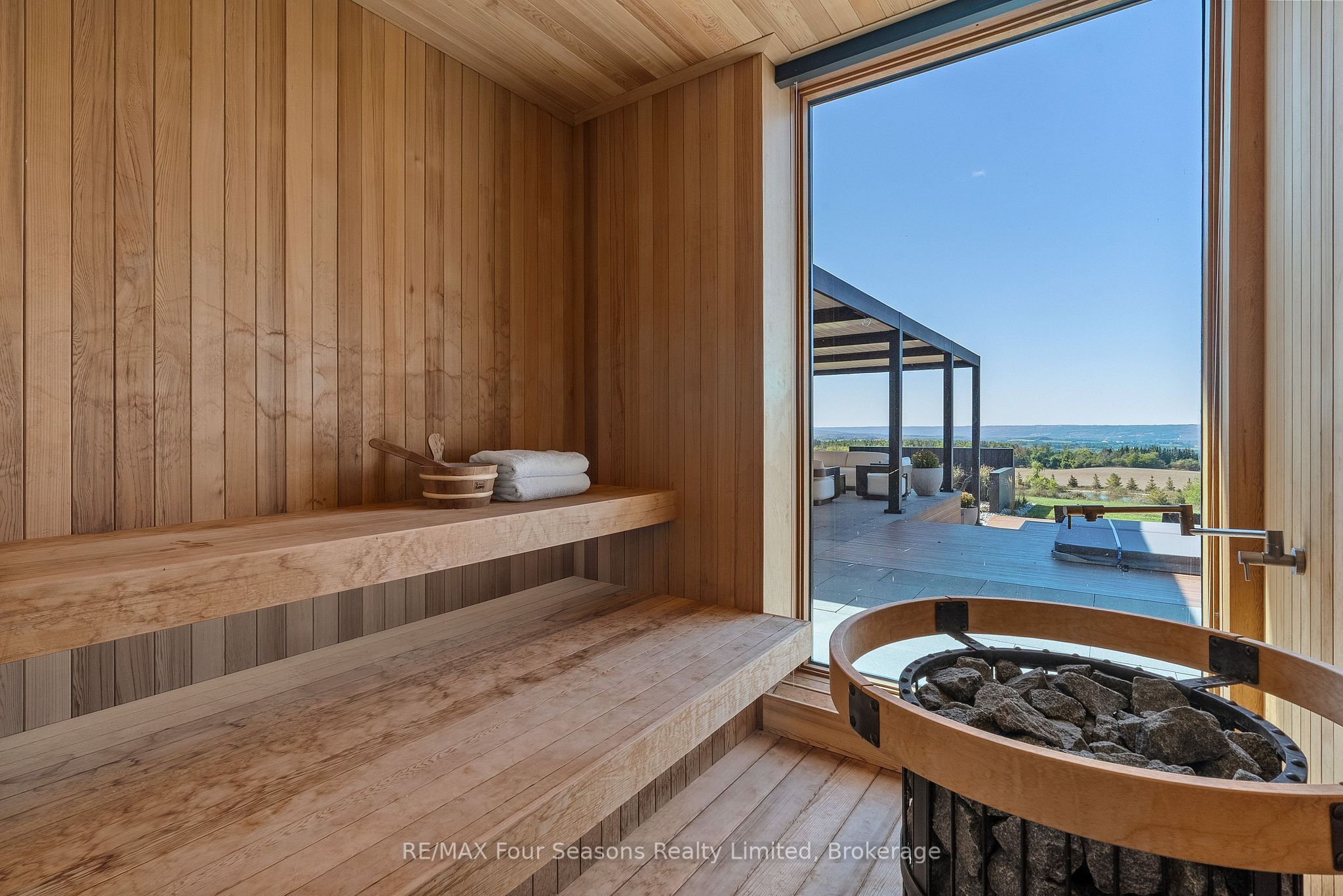 Majestically positioned upon eighty pristine acres within clarksburg's most distinguished countryside enclave, this frank lloyd wright-inspired architectural tour de force represents the pinnacle of luxury residential design. Approached through monitored gates and a winding driveway, this extraordinary five-bedroom, seven-bathroom estate exemplifies uncompromising craftsmanship, where the masterful fusion of corten steel, cedar, and metallic exterior elements creates a striking modern silhouette set against a magnificent natural backdrop, enhanced by dramatic landscape lighting that elevates the estate's grandeur through twilight hours. The palatial interior reveals soaring eighteen-foot ceilings and resplendent marble floors, culminating in an open-concept masterpiece with polished concrete flooring and 12. 5 ft. Floor-to-ceiling windows framing the serene landscape. The varenna poliform kitchen impresses with a 20. 5 ft. Island, sub-zero and wolf appliances, 11 ft. Ceilings, and bespoke walnut cabinetry that flows with architectural harmony throughout. The lavish two-storey primary suite offers polished plaster walls, custom walnut built-ins, a marble ensuite with chronotherapy rain shower, and a private retreat lounge. Additional bedrooms include terraces or balconies, with two guest suites offering luxurious ensuites-one serving as a secondary primary with service bar. Entertainment abounds with a professional theatre, custom gym, and stunning two-storey lounge bar overlooking a 22 ft. Infinity pool. A heated five-car garage and radiant flooring ensure year-round comfort. A separate two-storey guest house includes a full kitchen, loft bedroom, and soaring ceilings. A pristine barn provides premium equestrian facilities. Landscaped grounds feature a fire pit, hot tub, and pergola, all enhanced by elegant lighting. With loree forest nearby and a generac generator, this estate blends architectural brilliance with modern sophistication.