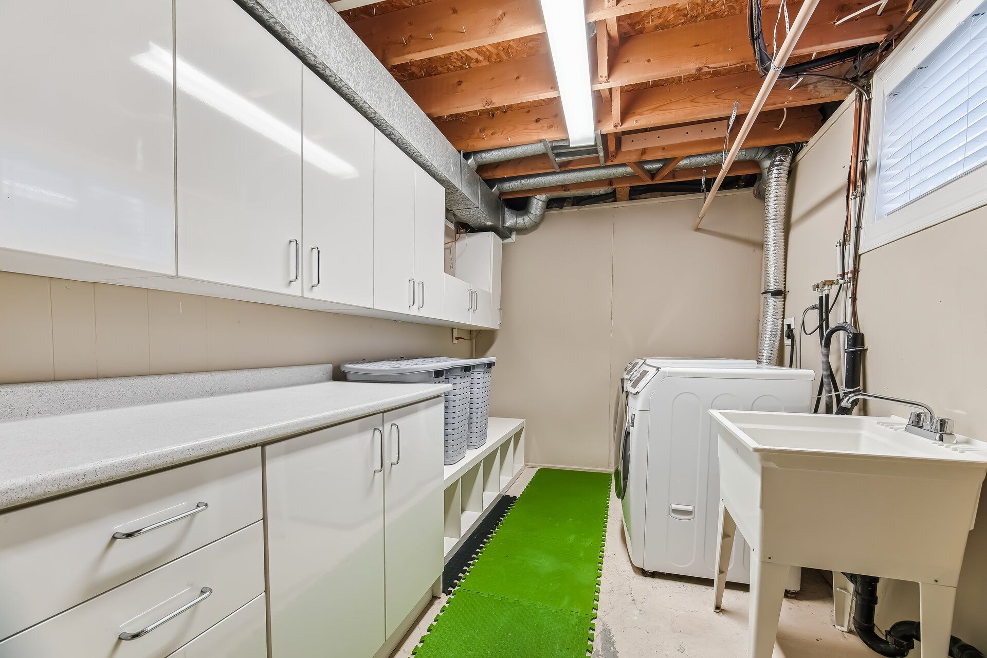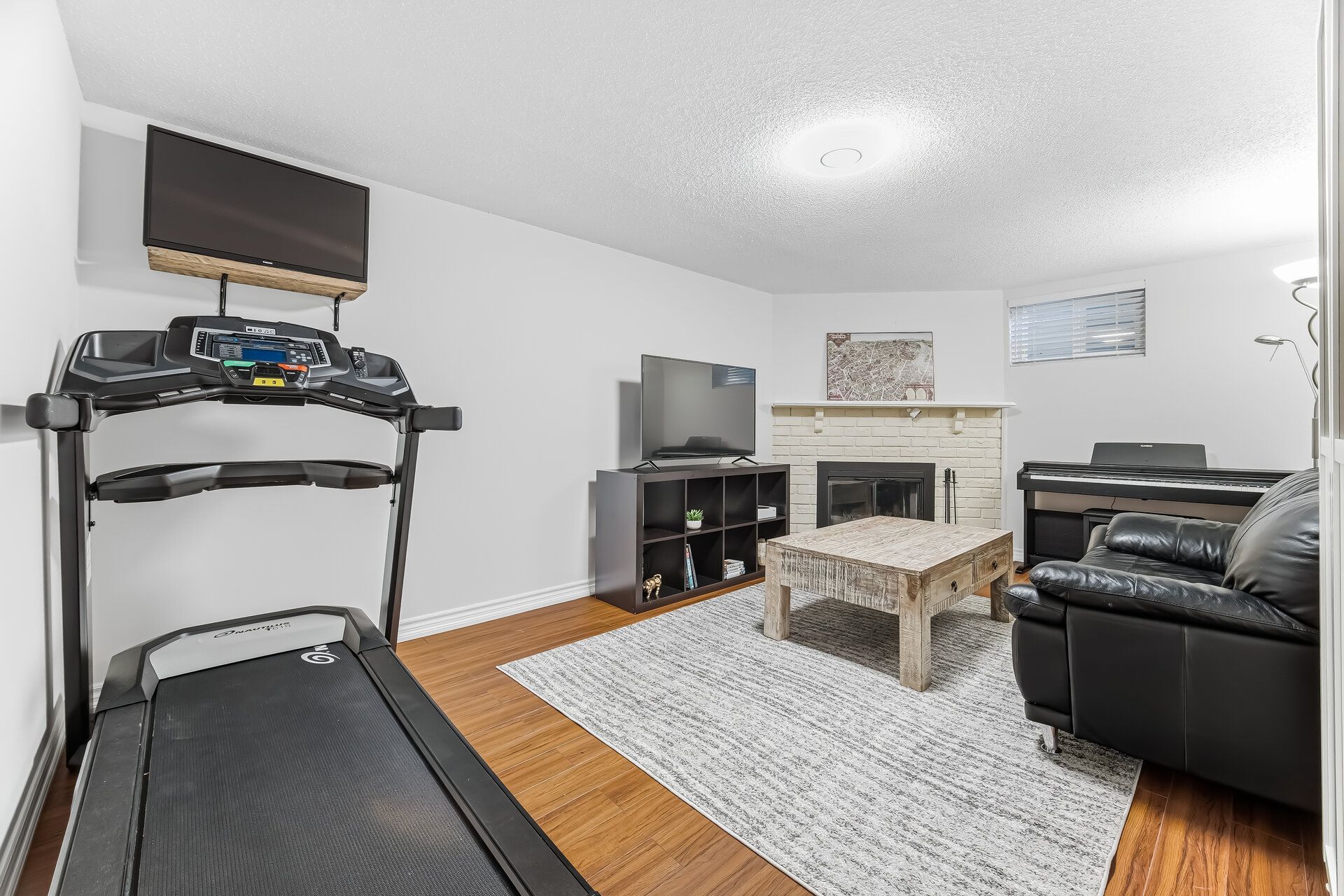 • Cozy basement with a wood chimney for winter comfort.