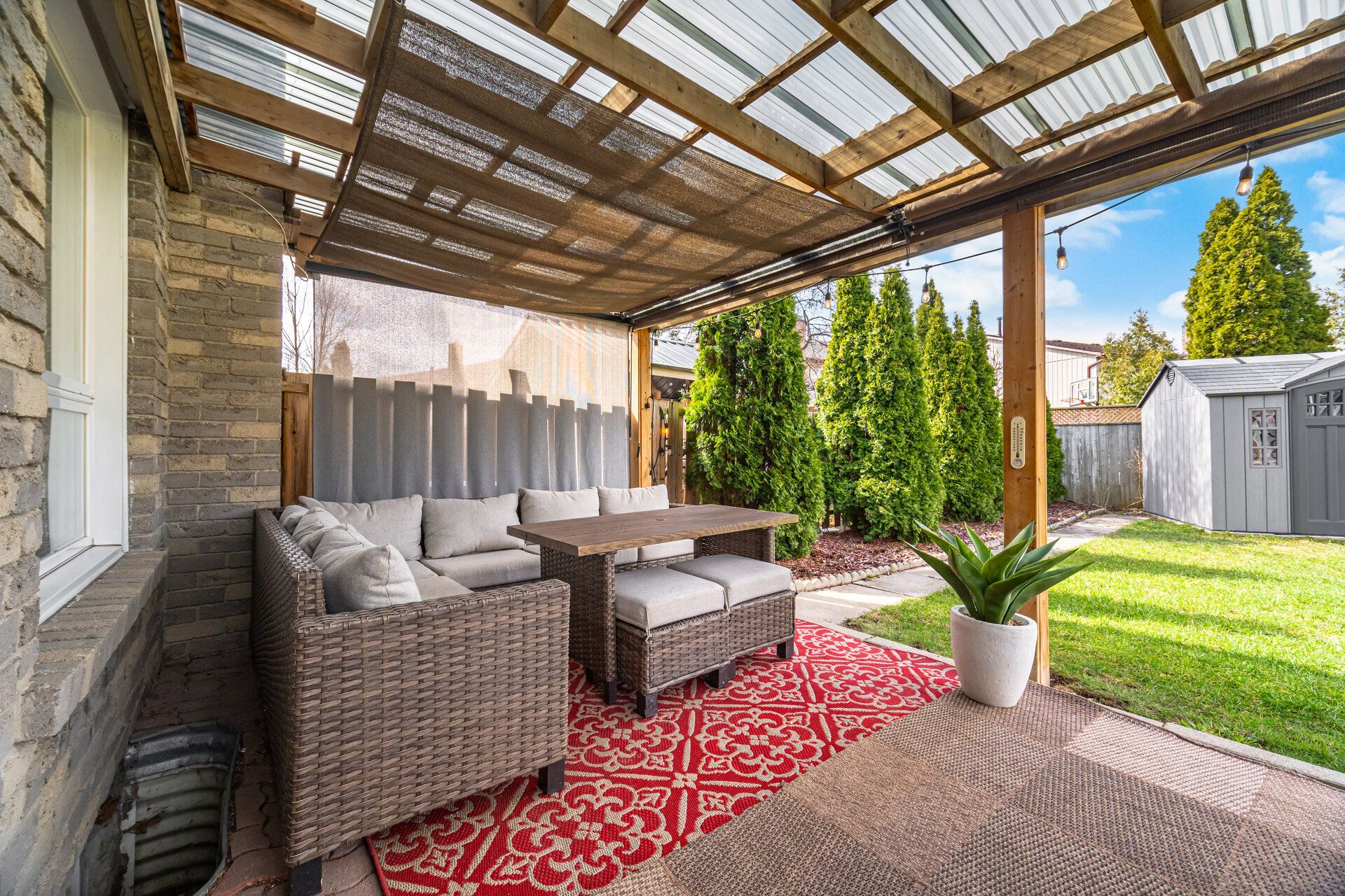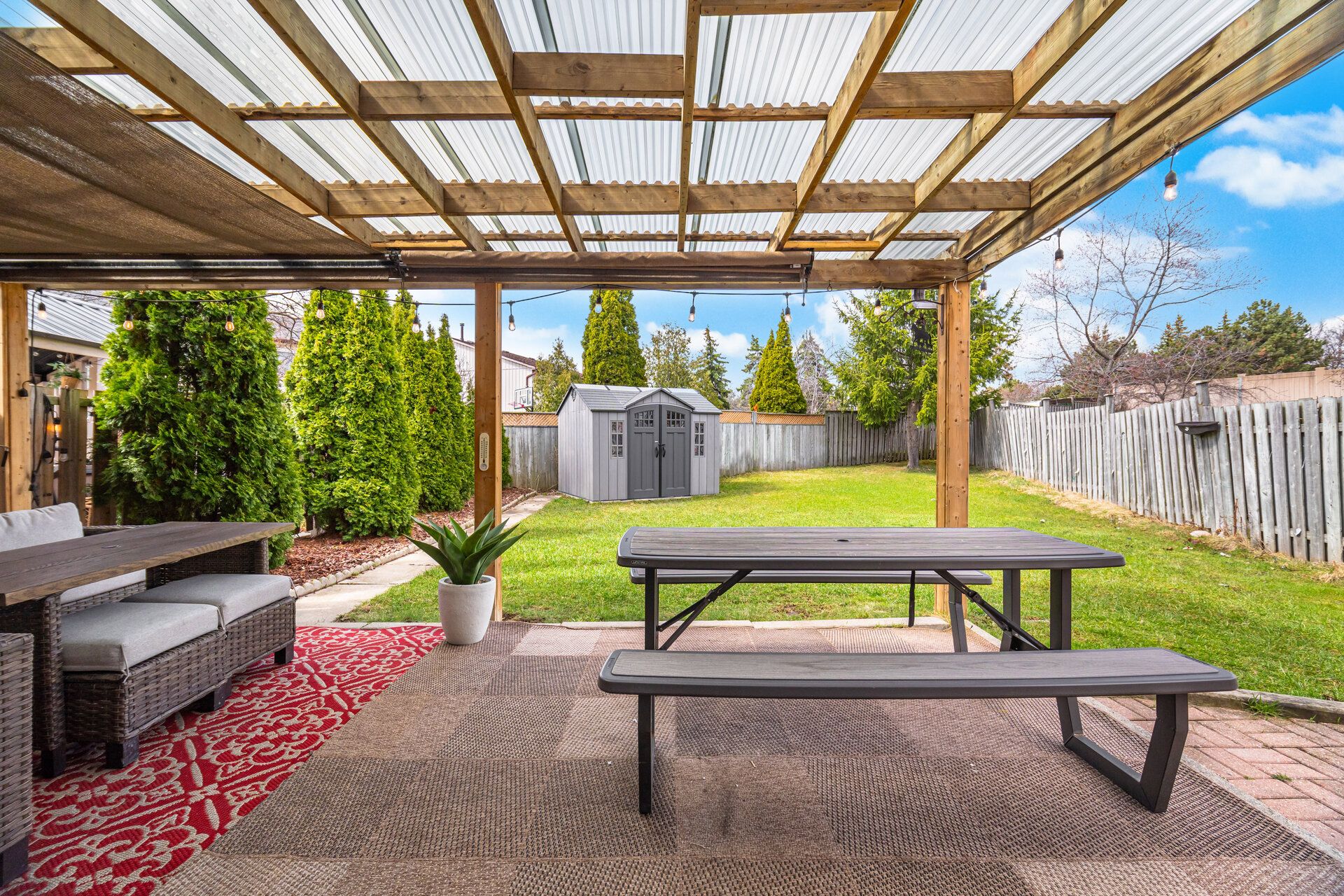 • Custom covered pergola and dedicated BBQ area for outdoor gatherings.