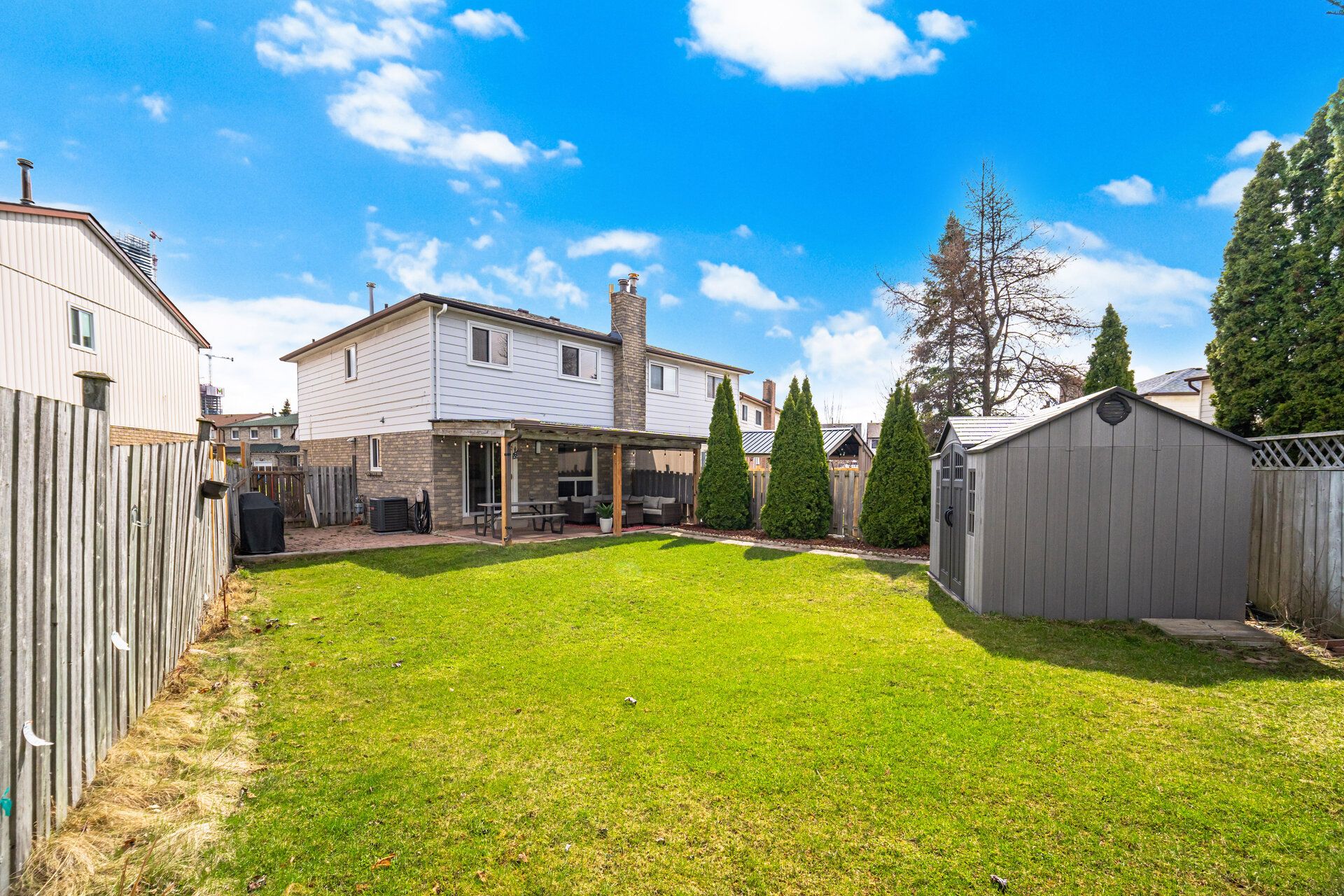 Rare gem on a premium pie-shaped lot: 729 carrying place! Welcome to your private sanctuary in the heart of mississauga. Tucked away on a quiet, low-traffic street, this meticulously maintained home offers the perfect blend of modern sophistication and a backyard retreat that is truly a rare find for the neighborhood. The great outdoors - step into your own personal park. The expansive, tree-lined pie-shaped lot offers a level of privacy and greenery seldom seen in the city. Whether you're hosting summer soirées under the custom covered pergola, searing steaks in the dedicated bbq area, or enjoying the serenity of the lush lawn, this backyard is built for memories. A brand-new shed (2024) ensures your oasis stays clutter-free. Modern elegance & peace of mind - no detail has been overlooked. This home has been thoughtfully updated from the inside out, offering major capital improvements for total peace of mind: brand new windows (2025): freshly installed for maximum energy efficiency and light. Gourmet kitchen (2019): fully renovated and designed for the home chef. Designer washrooms (2020): completely transformed with contemporary finishes. Mechanical excellence: new furnace (2020), a/c (2021), roof (2019), and a brand-new water tank (2026). Living & entertaining - the interior glows with natural light, featuring a functional layout that includes a one-car garage and a freshly paved driveway (2024) with parking for three. The basement serves as the ultimate cozy retreat, anchored by a working wood chimney-perfect for crisp ontario winters. Smart & functional featuressmart home ready: controlled by an apple smart thermostat. Maximum storage: large laundry room with extra storage plus a central vacuum system. Bonus inclusions: equipped with two fridges, perfect for large families or those who love to prep. Location, luxury, and a lot like no other. 729 carrying place isn't just a house; it's the lifestyle upgrade you've been waiting for.