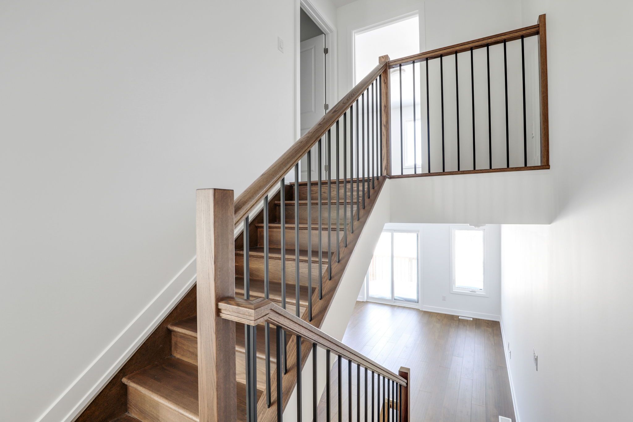 The wellington model by park view homes offers modern living in a thoughtfully designed townhome. The home is in the final stages of construction with anticipated move-in early 2026. The open-concept main floor features a bright living and dining area with large windows that bring in plenty of natural light. The chef-ready kitchen is finished with quartz countertops, a stylish backsplash, stainless steel appliances, a center island, and contemporary cabinetry that opens to a back deck. The second level includes two spacious bedrooms and a full bath, with a few additional steps leading to a private primary suite complete with a walk-in closet and upgraded ensuite featuring a custom tiled shower. Hardwood stairs add warmth and durability, while upper-level laundry provides everyday convenience. A finished basement family room offers additional versatile living space. Many beautiful upgrades have been added throughout this home. Backed by a tarion warranty.