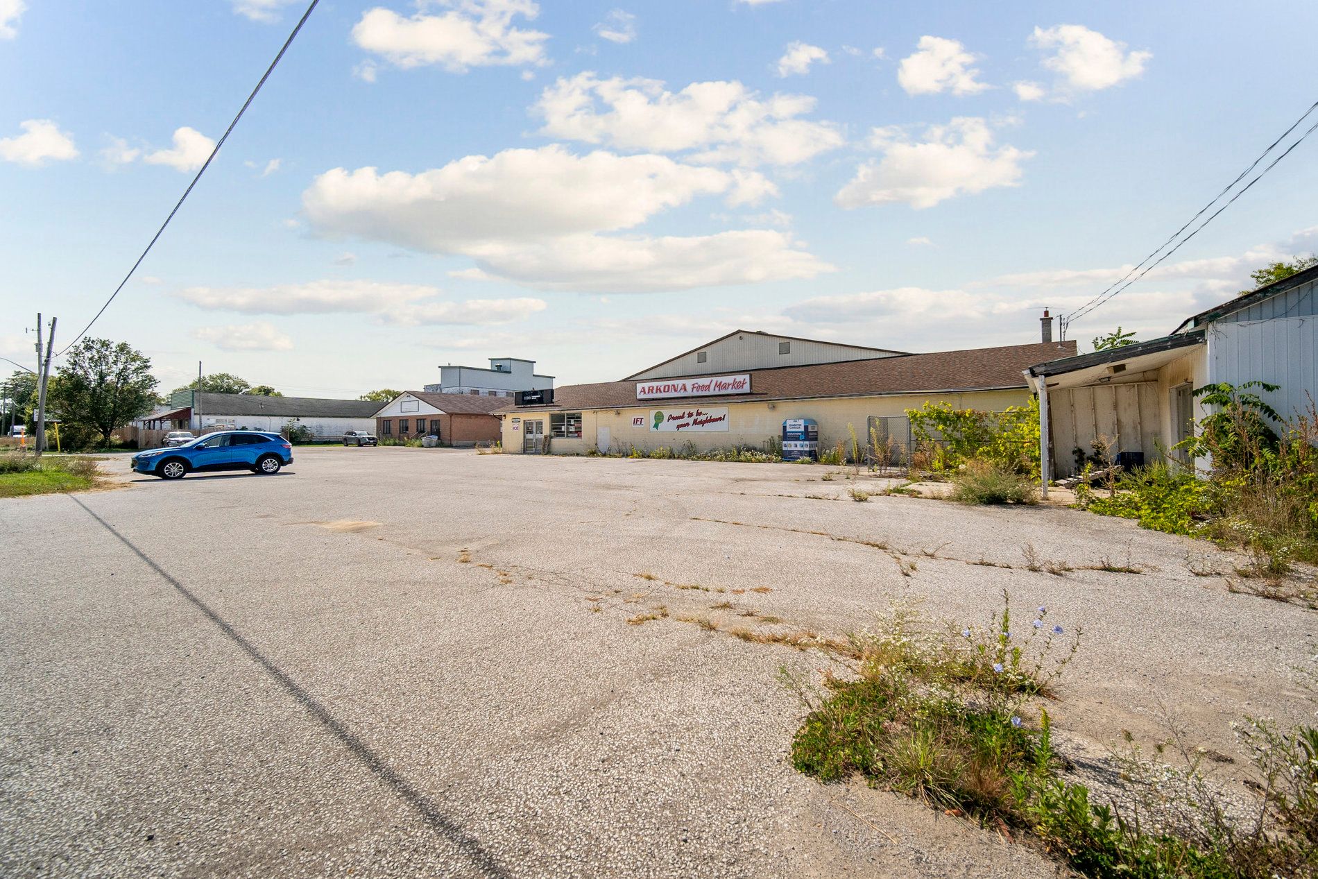 For lease - 7291 arkona road versatile retail/commercial building offering 12,517 sq ft on a 1. 07-acre lot. Excellent visibility, ample parking and flexible layout. The property is versatile for multiple commercial uses under c2 zoning. Building includes display areas, cold storage, restaurant kitchen, offices, washrooms, and rear parking. Strong location with multiple services, high visibility and flexible potential for retail, office or mixed commercial use.
