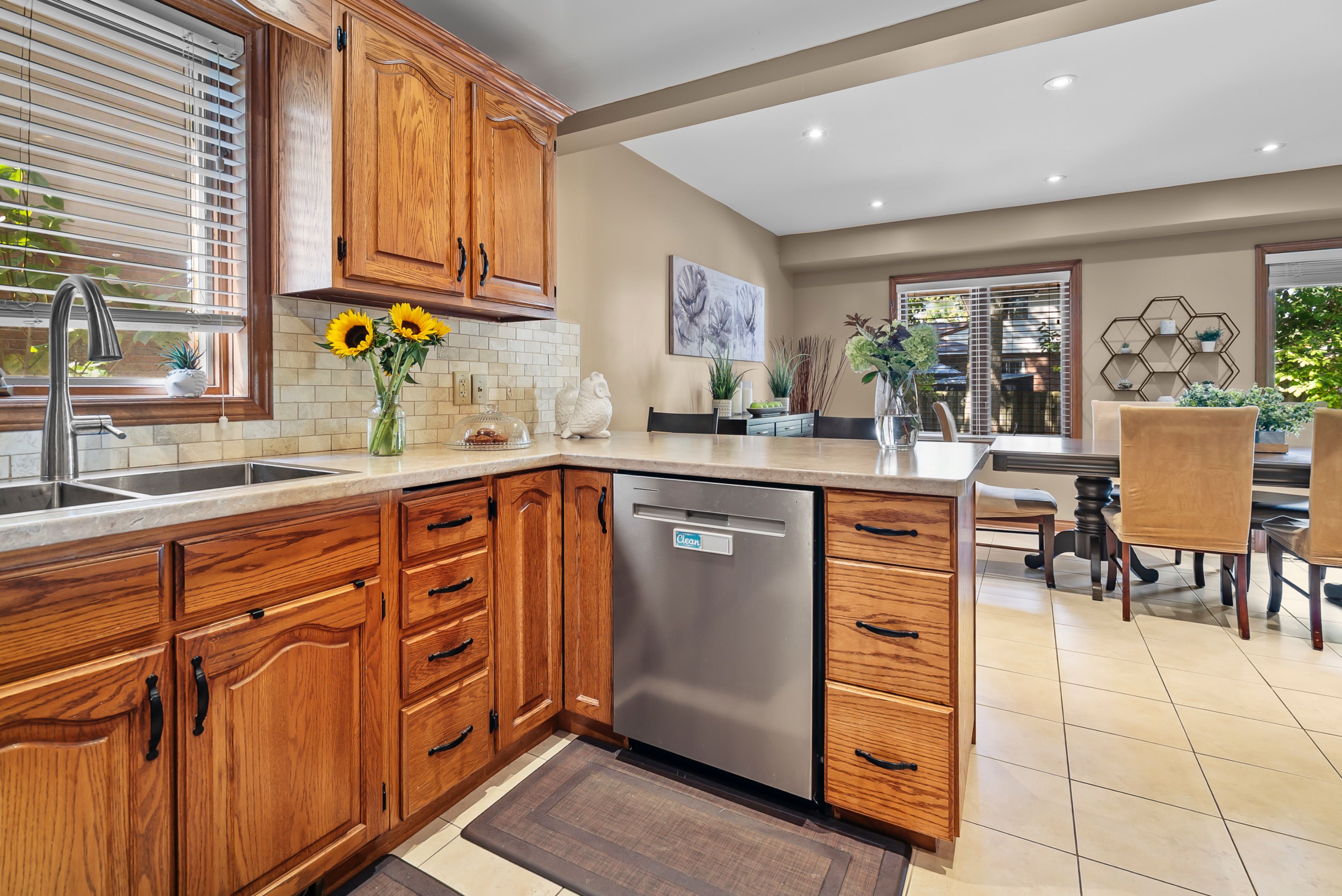 Spacious and well-maintained 4+1 bedroom home located in niagara falls' desirable north end. This versatile layout is perfect for growing families, featuring both a cozy family room with gas fireplace and a bright living room on the main floor, plus a convenient 3-piece bath and main floor laundry. The oak kitchen offers a breakfast bar and flows into a generous dining area ideal for entertaining. Patio doors lead to a brand-new deck overlooking a fully fenced backyard with a storage shed. Upstairs, you'll find four large bedrooms, in suite complete with walk-in closet and private 3-piece ensuite. A 4-piece main bath completes the second floor. The finished basement includes a spacious rec room, an additional bedroom, and a storage area with a rough-in for a wet bar or kitchenette, perfect for in-law potential or extended living space. Beautiful hardwood flooring runs throughout most of the home, adding warmth and elegance. Additional features include an attached double garage and ample storage throughout. Located close to parks, schools, shopping, and transit in a quiet family-friendly neighbourhood, this home checks all the boxes!