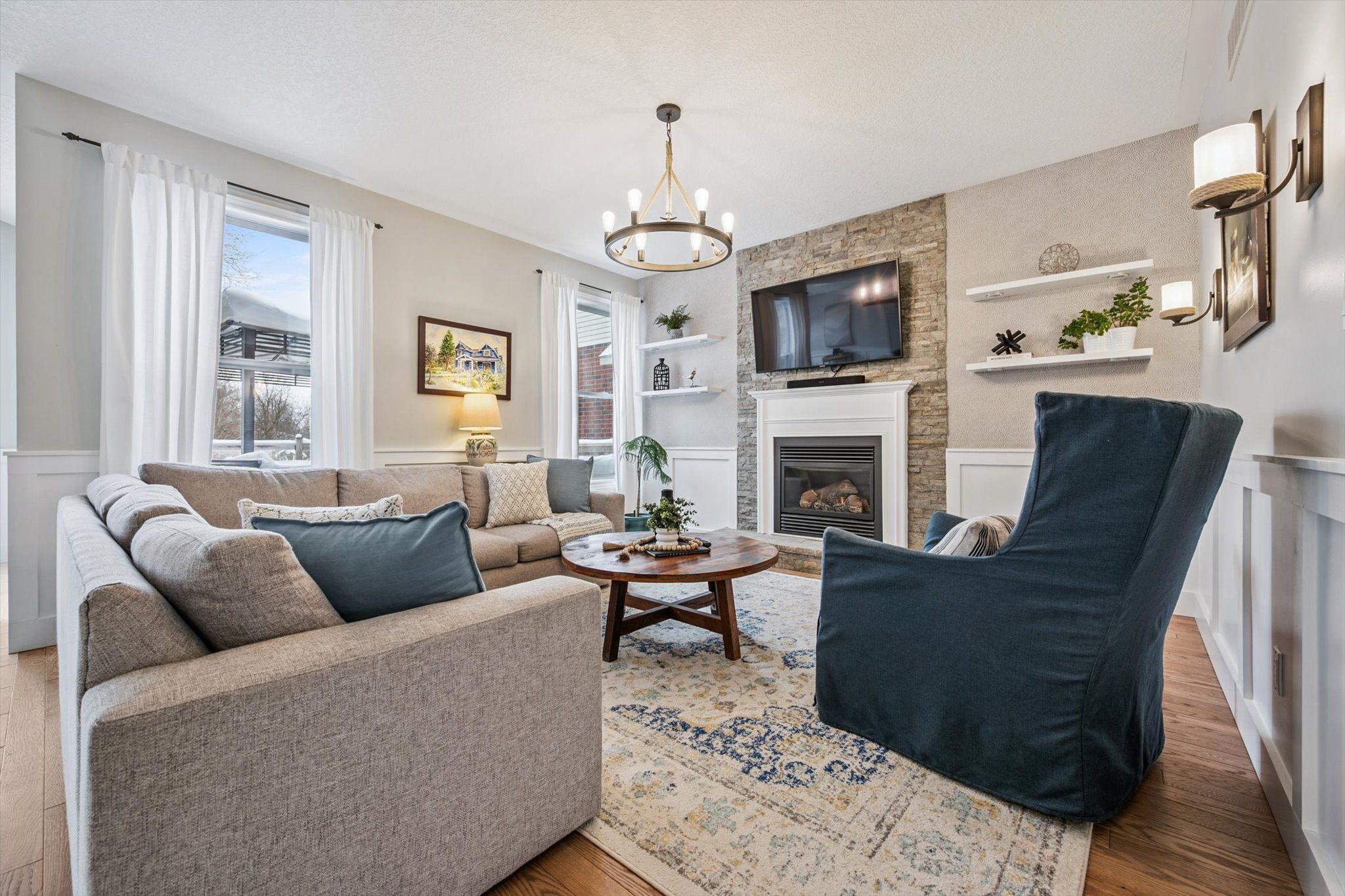 Welcome to 73 amsterdam crescent, a beautifully maintained home nestled in a sought-after guelph neighbourhood backing onto peaceful green space. This spacious 3-bedroom, 2. 5-bathroom home offers a thoughtful layout ideal for modern living. The main floor features a large private office, a functional mudroom, and a bright open-concept living and kitchen area highlighted by vaulted ceilings and a skylight, filling the space with natural light-perfect for both everyday living and entertaining. The kitchen is equipped with quartz countertops, stainless steel appliances, and overlooks the serene backyard green space. A beautiful gas fireplace anchors the living area, adding warmth and character. Upstairs, you'll find convenient second-floor laundry and generously sized bedrooms. Newer hardwood flooring throughout enhances the home's timeless appeal. The basement features new epoxy floors, offering a blank canvas where the new owner has the opportunity to create a space that works best for their lifestyle. Complete with an extra-large driveway and excellent curb appeal, this move-in-ready home offers comfort, space, and a prime location all in one exceptional package.