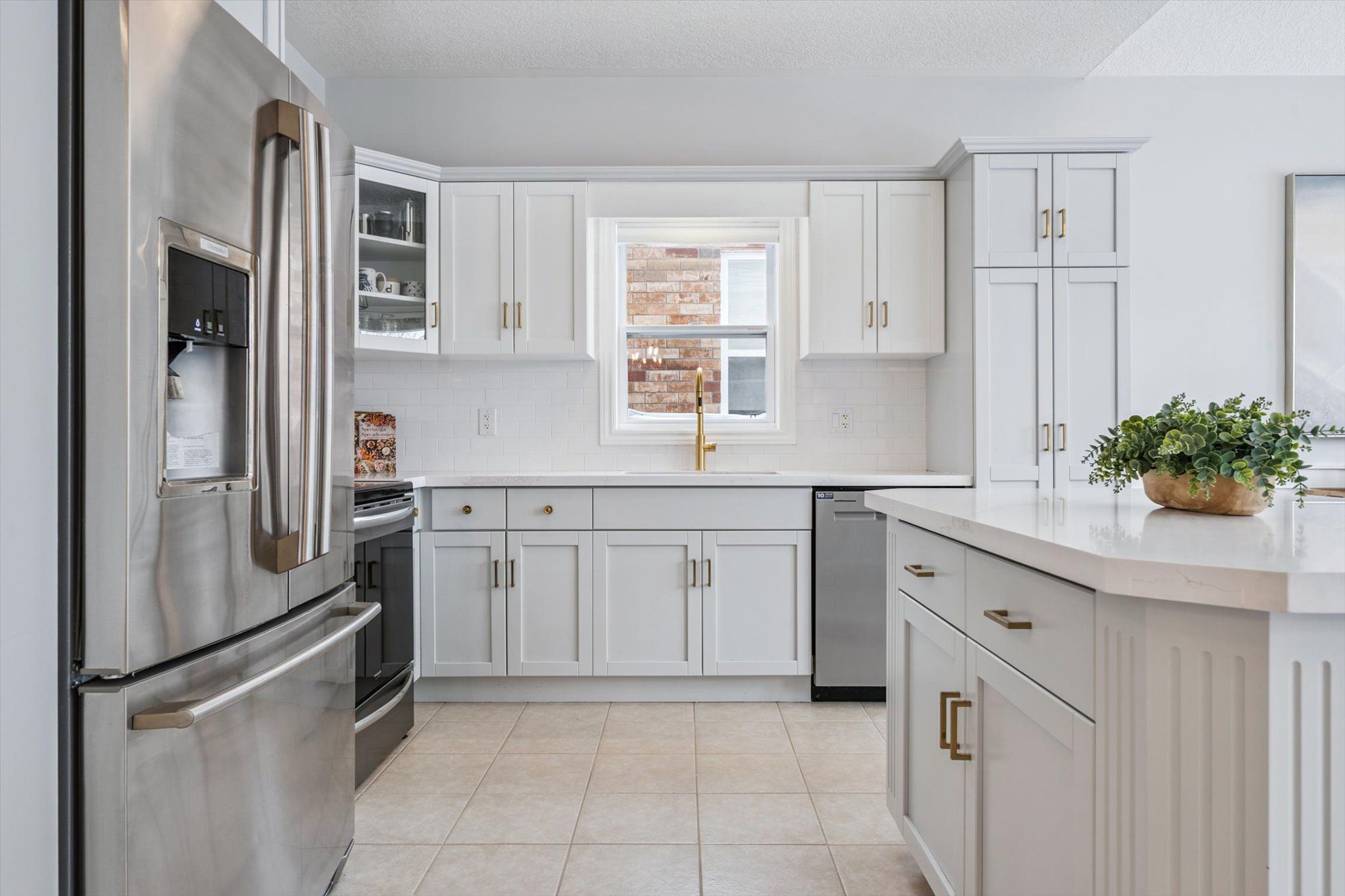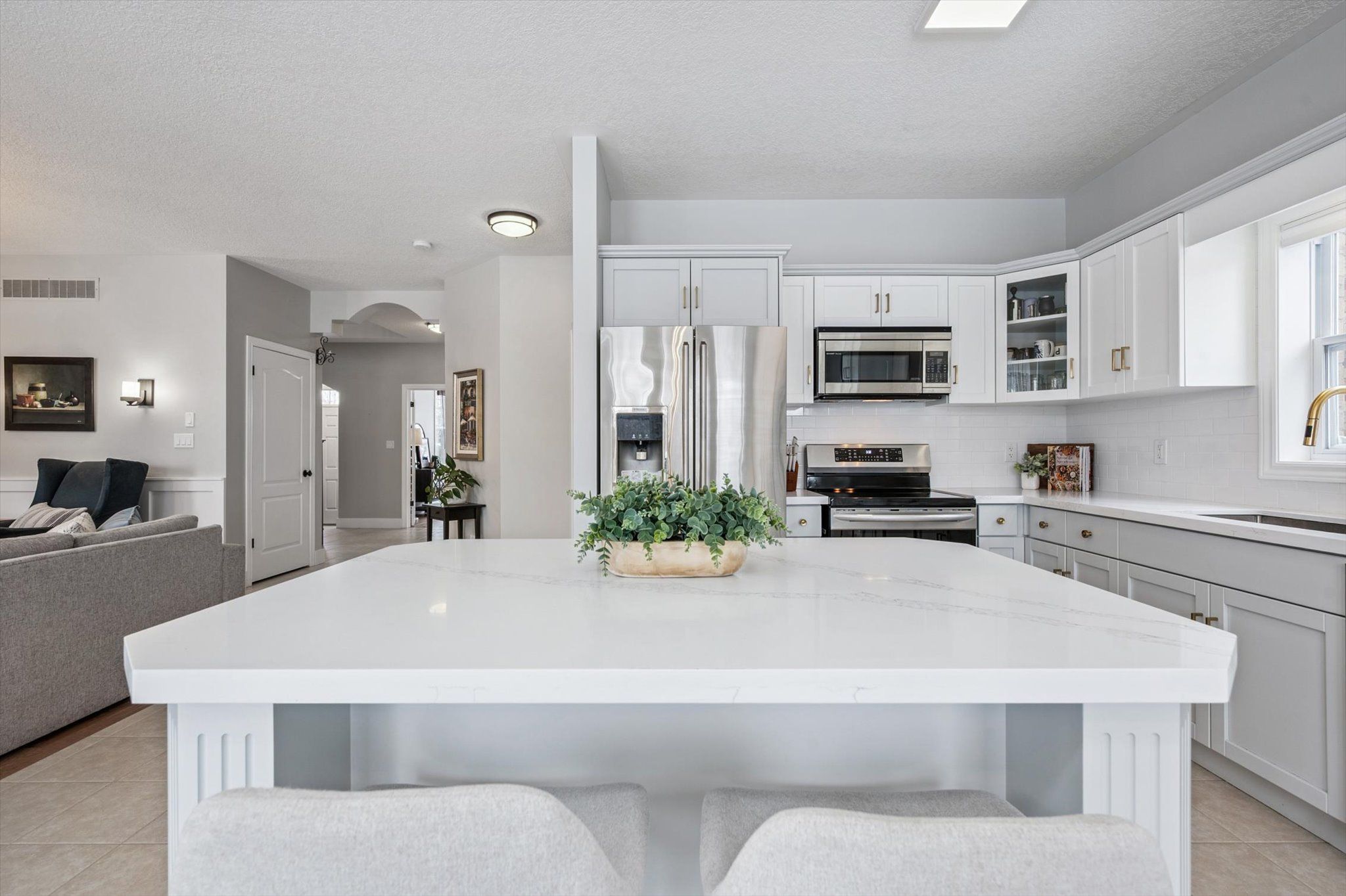 • Kitchen features quartz countertops and stainless steel appliances.