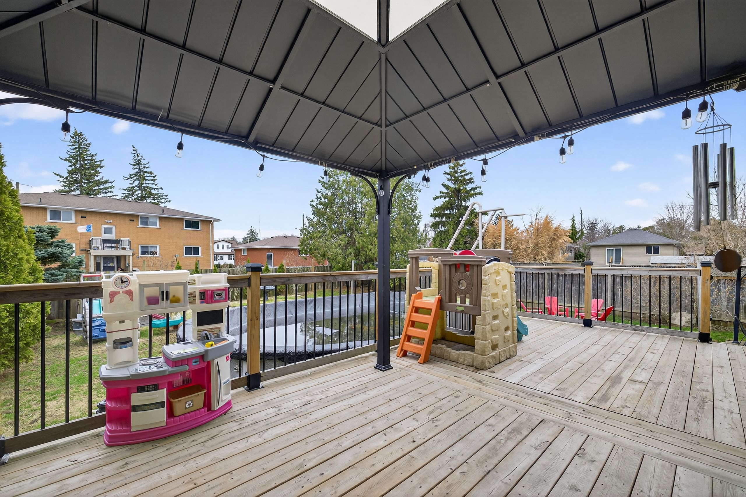 • Fully fenced backyard with an above-ground pool for summer enjoyment.