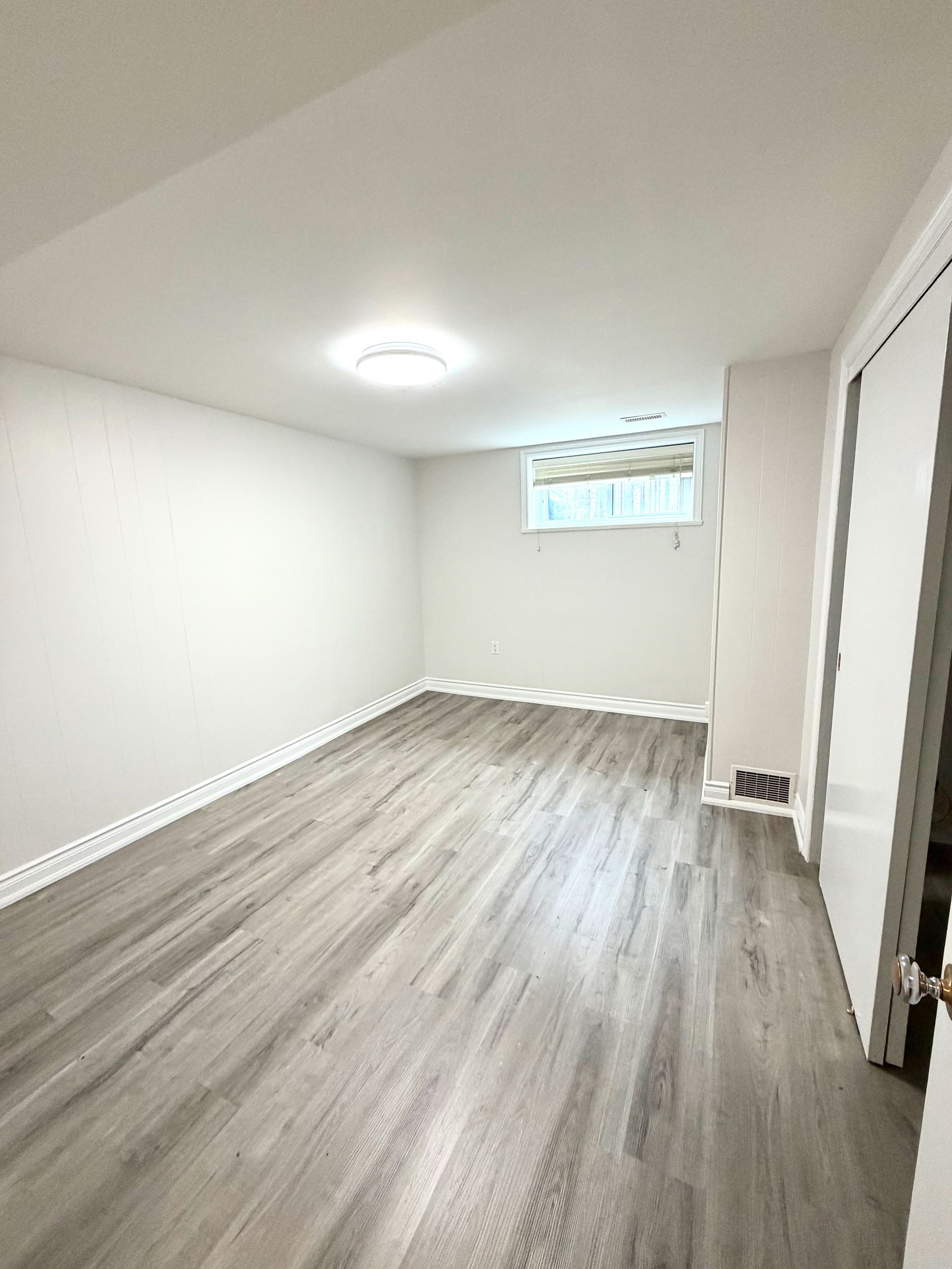 Beautifully renovated basement apartment available for lease! This self-contained basement suite features a spacious open-concept living area, modern kitchen, and private 3-piece bathroom. Enjoy the convenience of private. Abundant natural light from large windows complements the sleek laminate floors throughout. Making it an ideal place to call your own. Located in a quiet and friendly neighborhood, this apartment provides the privacy and convenience space with a separate entrance and close proximity to transit, shopping, and parks. No smoking, tenant to pay 50% of all utilities.