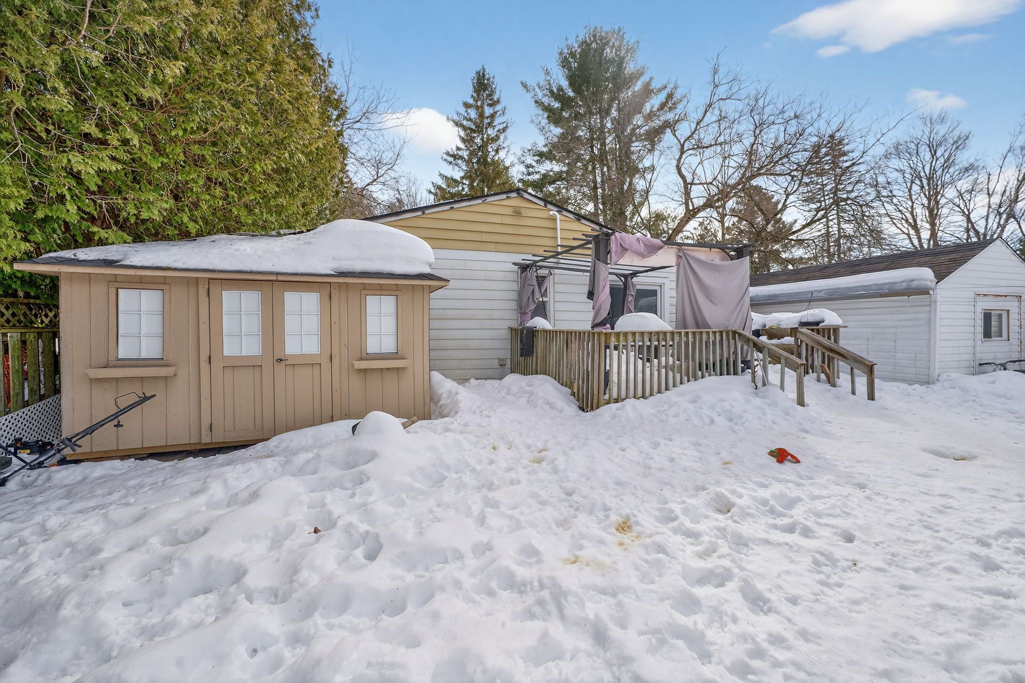 • Detached garage provides extra storage and convenience.