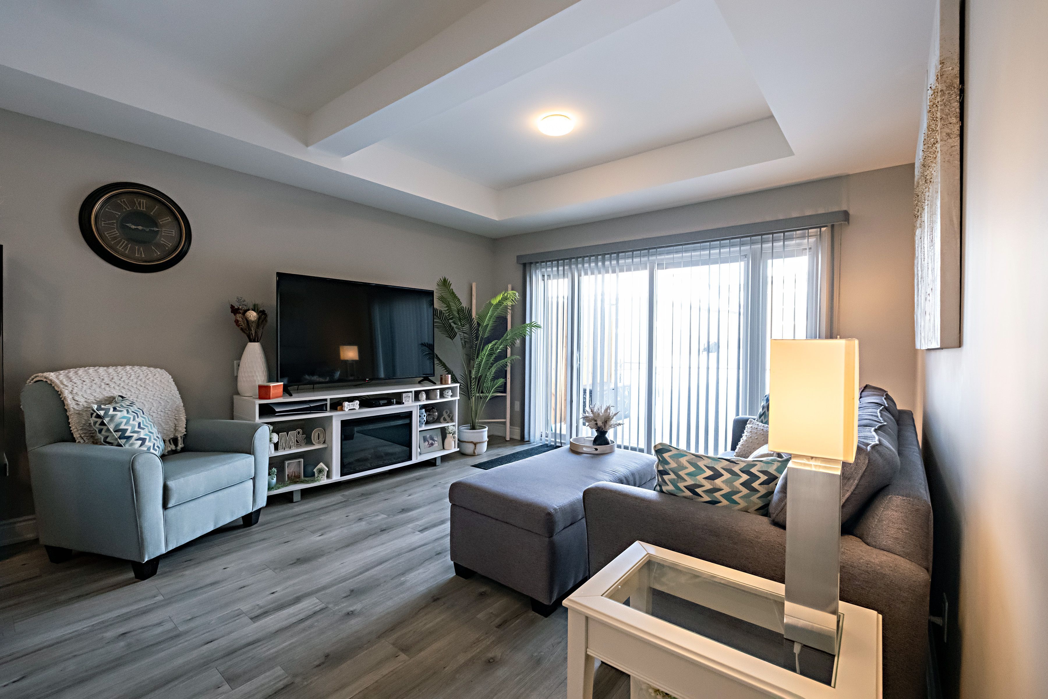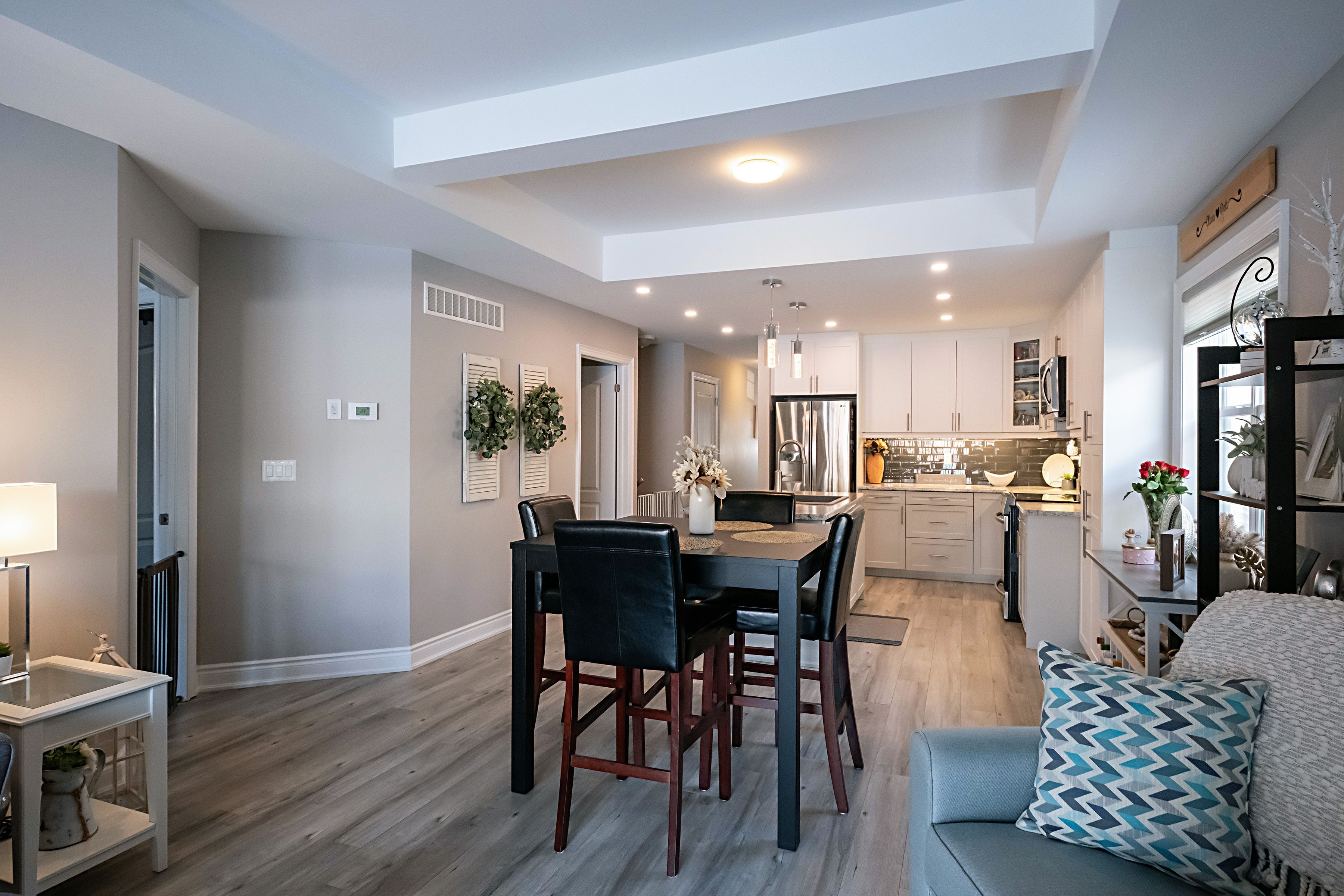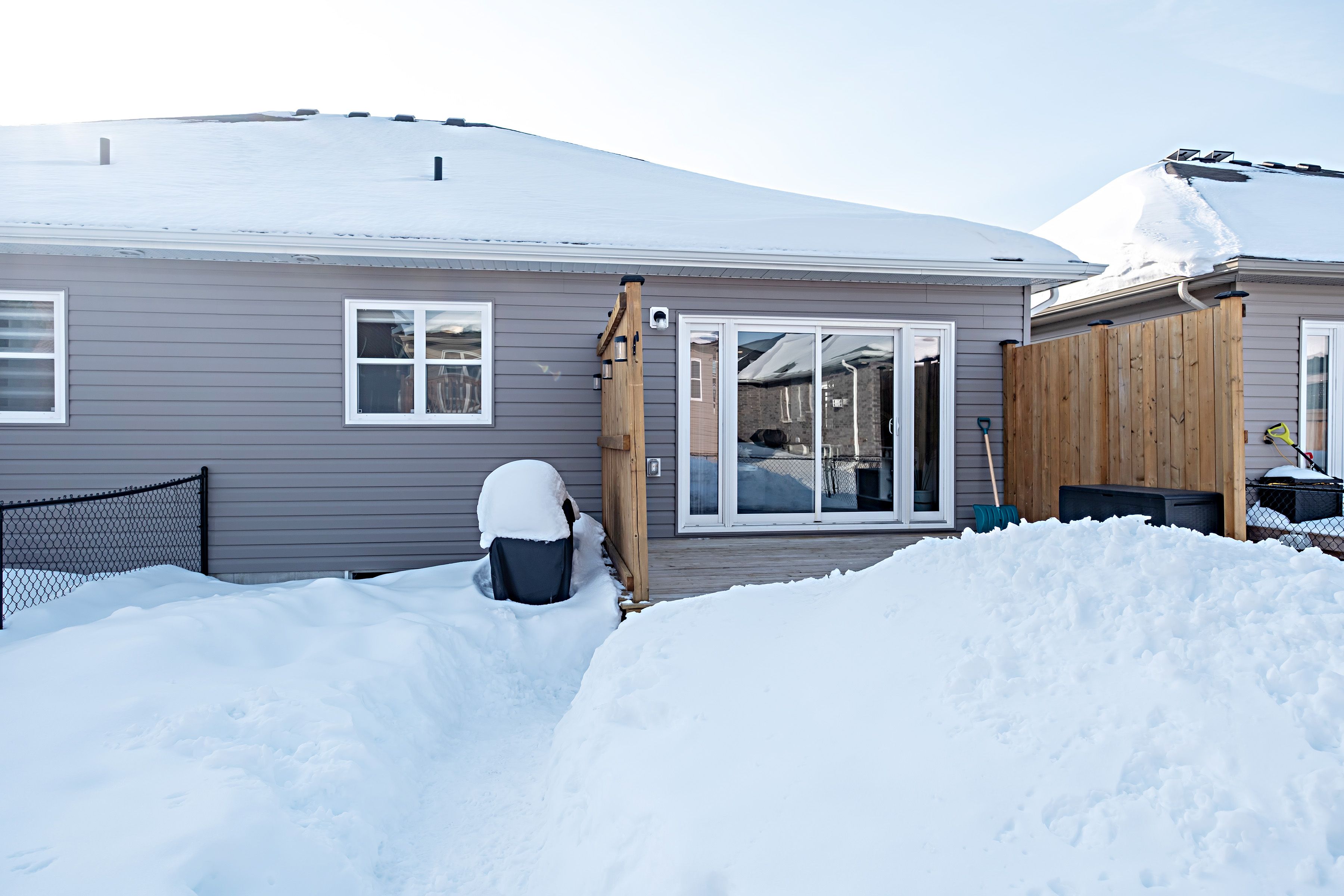 Welcome to this beautifully designed semi-detached brick home offering modern comfort and thoughtful layout throughout. Step inside from the covered front porch into a welcoming foyer with a convenient 4 piece bath just off the entrance - perfect for guests. The home features 2 spacious bedrooms, including a private primary retreat complete with a walk-in closet and its own 4 piece ensuite. The heart of the home showcases a bright open-concept layout with an inviting living, dining, and kitchen area designed for both everyday living and entertaining. The kitchen offers ample cabinet space, two-tone cabinets, deep pot drawers, and a functional centre island with sink - ideal for meal prep and gathering with family or friends. Enjoy beautiful natural sunlight throughout the main living area, highlighted by an elegant tray ceiling that adds architectural interest and charm. From the living room, step directly onto the rear deck, extending your living space outdoors. Outside, you'll find a fully fenced yard, perfect for relaxing, gardening, or pets. This home combines style, comfort, and practicality - ready for you to move in and enjoy.