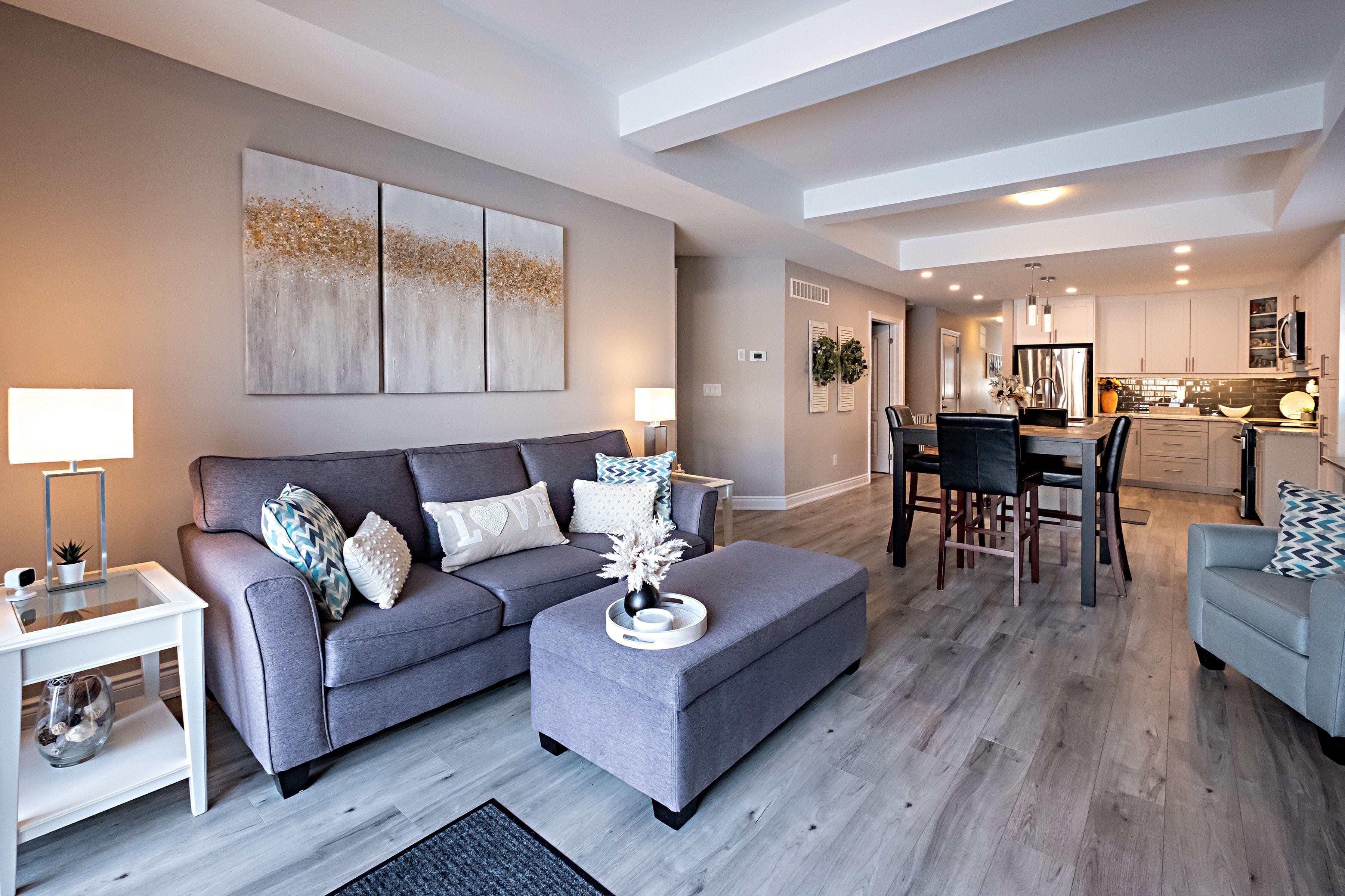 • Bright open-concept living, dining, and kitchen area for gatherings.