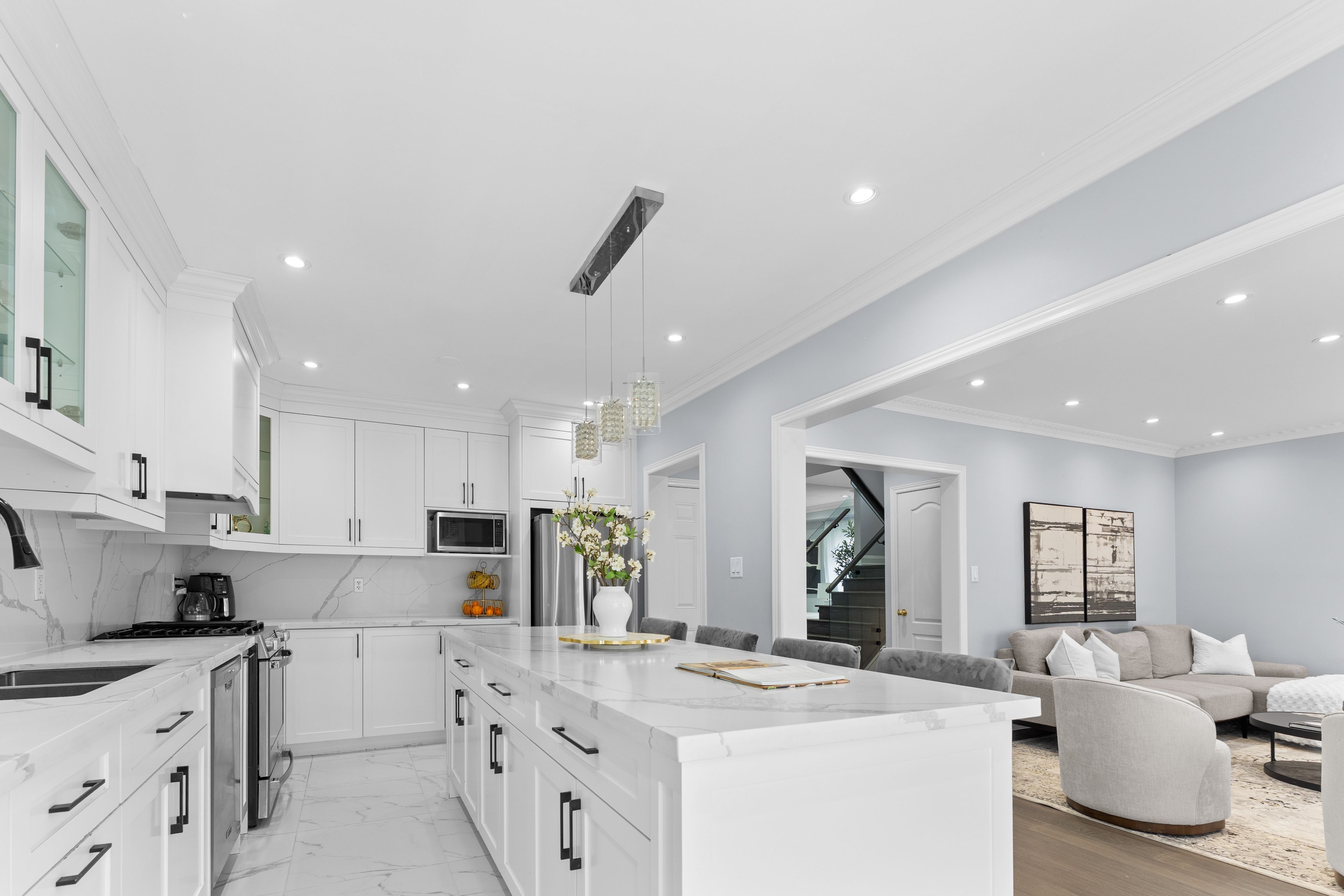 Extensively renovated in 2021 with over $110,000 in upgrades. Features include new hardwood flooring throughout, modern glass railings, fully renovated bathrooms, and a custom fireplace with quartz surround and feature wall. The kitchen has been completely updated, and pot lights have been installed throughout the home, including the garage. Additional upgrades include a garage epoxy finish and conversion from electric to gas stove.