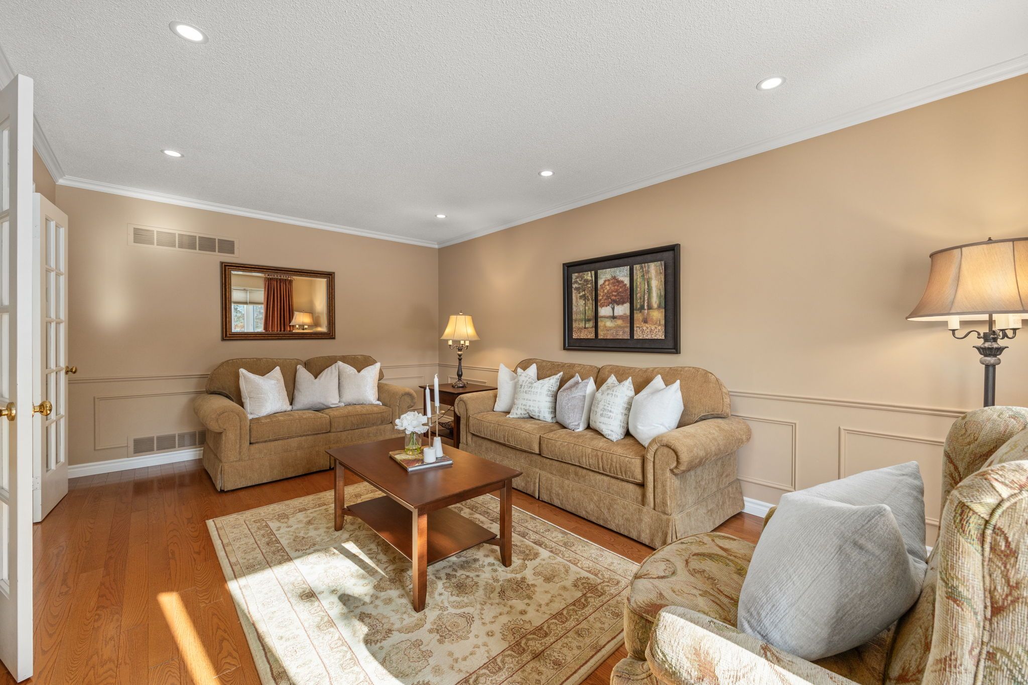Welcome to this lovely family home in mill pond, one of richmond hill's most desirable neighbourhoods, situated on a premium corner lot. Located on a quiet, kid-friendly street, this is the perfect place to raise a family. The home offers approximately 3,500 sq. Ft. Of bright and spacious living space. The two-storey floor plan features four large bedrooms and three bathrooms, all meticulously maintained and showing true pride of ownership. The functional layout is ideal for both everyday living and quality family time. Hardwood floors enhance the family, living, and dining rooms. All bedrooms include large double closets, providing ample storage. The finished basement adds excellent bonus space, featuring a large rec/family room, an office that can easily serve as a bedroom, and generous storage throughout. A spacious mechanical room includes a built-in workbench, ideal for hobbies and organization. Outside, enjoy a large private fenced backyard with mature trees and a spacious deck, perfect for summer entertaining. The property also offers a four-car driveway with no sidewalk and a spacious double-car garage for added convenience. Enjoy access to top-rated schools including pleasantville public school, alexander mackenzie secondary school with its renowned ib and arts programs, and st. Theresa of lisieux catholic high school. Nearby amenities include restaurants, markets, hillcrest mall, the richmond hill centre for the performing arts, the library, and easy access to highways 400, 407, and 7. Public transit is convenient with yrt service and go train stations in richmond hill and maple