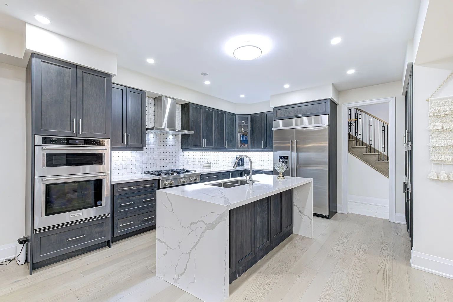 • Gourmet kitchen featuring stainless steel appliances and quartz countertops.