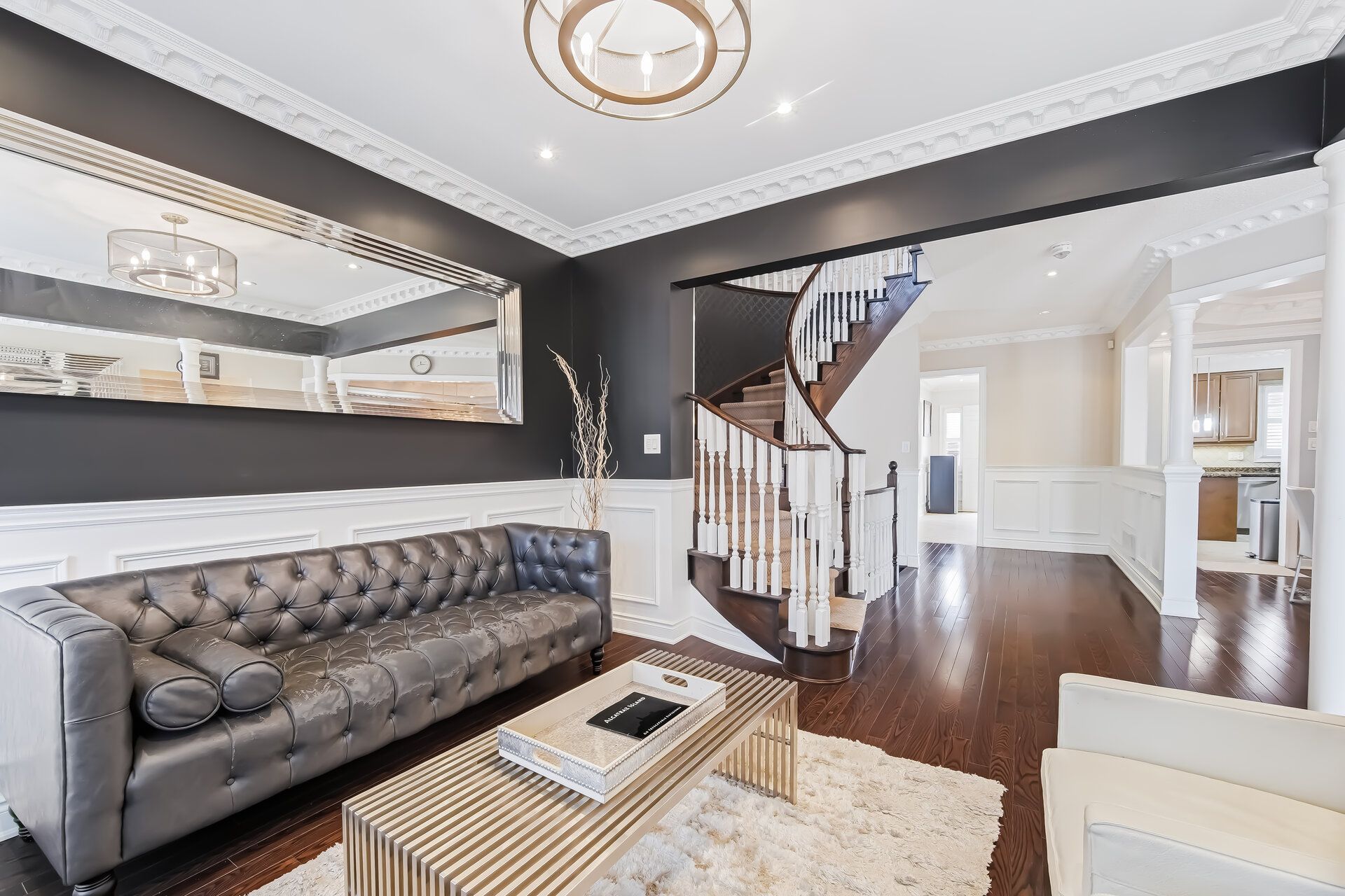 • High-end kitchen with granite surfaces and Canadian-made range hood for cooking enthusiasts.