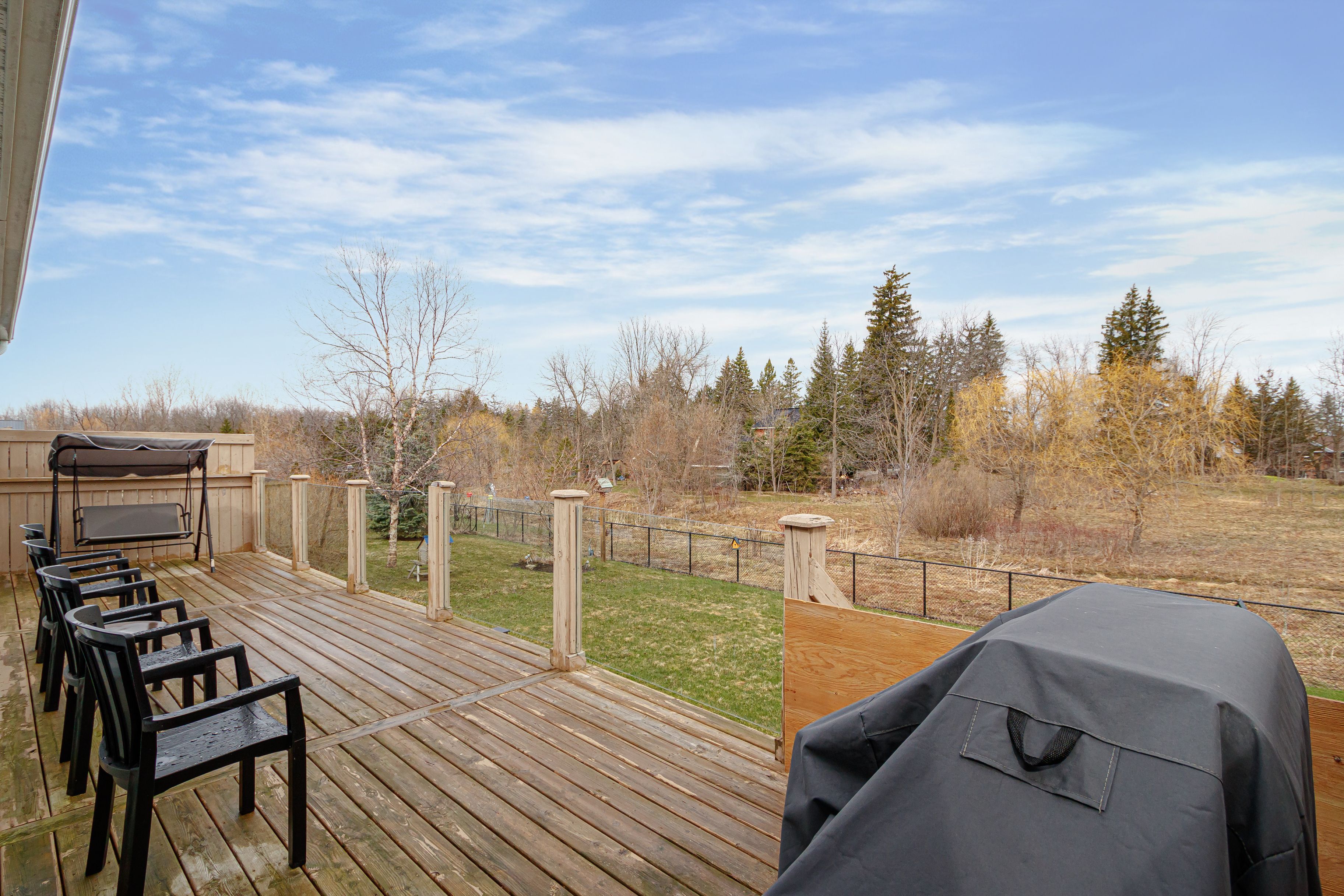 Welcome to this spacious and immaculate custom bungalow in a prime location backing onto greenbelt! Offering an open-concept floor plan that perfectly blends comfort and style. The heart of the home is a bright island kitchen featuring crisp white cabinetry, abundant pot lights, and plenty of counter space. This home boasts 2+2 bedrooms and 2. 5 baths, with gleaming hardwood floors throughout the main level. The inviting living room centres around a cozy gas fireplace. Walk-out to a large private deck with sleek glass railing perfect for relaxing or entertaining outdoors. The main floor primary suite offers a walk-in closet and an en-suite bathroom for your retreat at the end of the day. You'll also find a convenient main floor laundry room with inside access from the garage. There is a partially finished loft space above the garage which provides the perfect spot for storage, a playroom, studio, or creative escape. The fully finished lower level is designed for both functionality and fun, with a massive family room, two additional bedrooms, a full bathroom, and a versatile gym or home office. French doors open to a lower walk-out, bringing in natural light and providing easy access to the backyard. Nestled in an upscale and friendly neighbourhood, this home is close to top-rated schools, scenic parks and trails, skiing, beaches, and golf courses.
